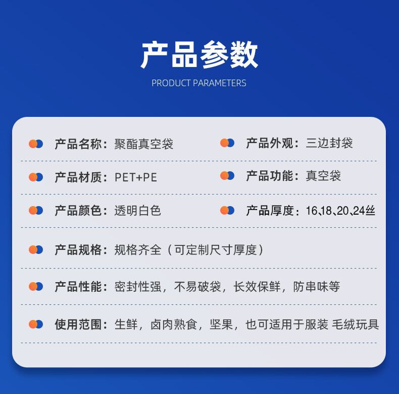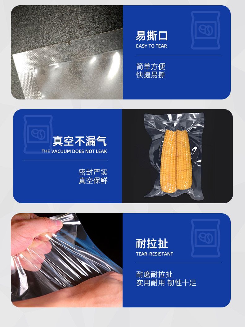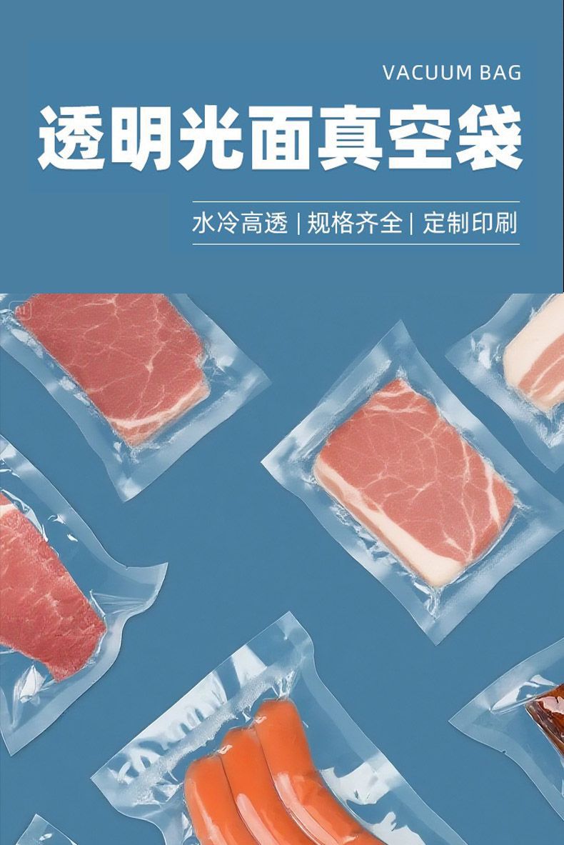 Bolsa de compresión al vacío de alimentos, bolsa sellada de poliéster, bolsa de envasado al vacío altamente transparente, bolsa de conservación comercial, bolsa de vacío brillante