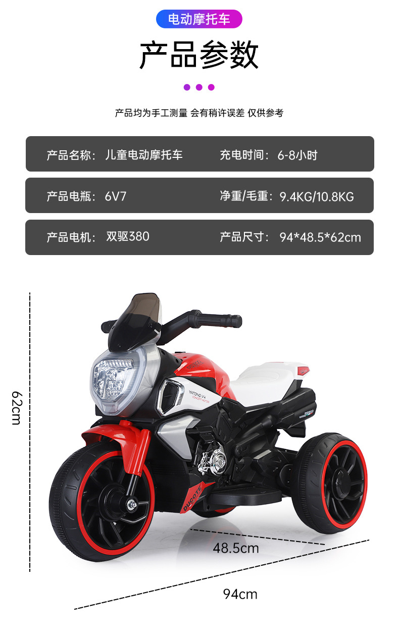 2-6 años de edad de los niños de la motocicleta eléctrica de Doble accionamiento batería recargable triciclo bebé coche de juguete