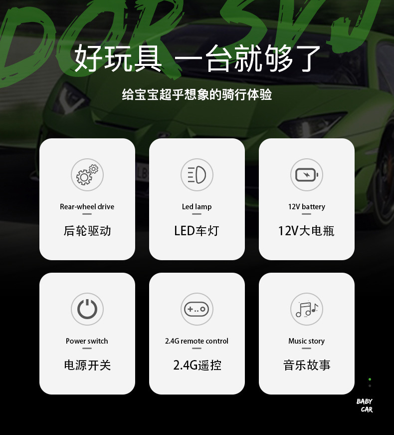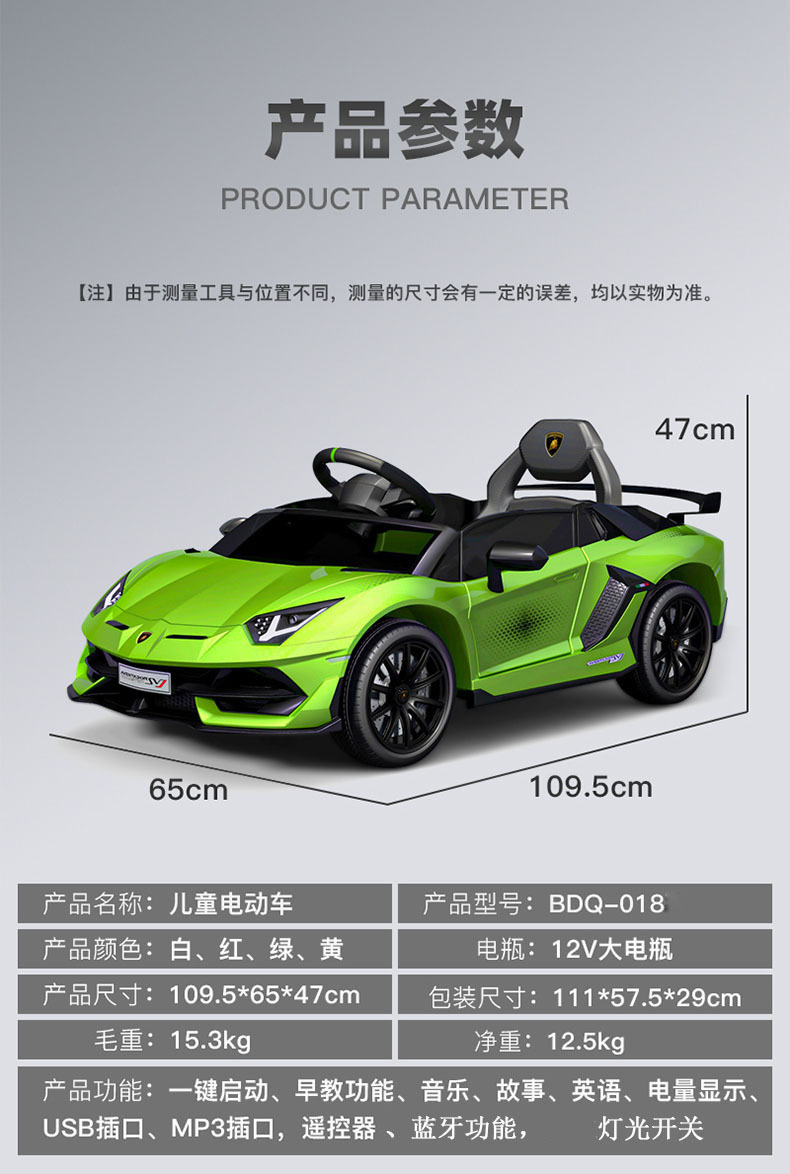 | Color | Blanco + 12v4 batería + doble unidad + Bluetooth educación temprana + asiento de cuero,Rojo + 12v4 batería + doble unidad + Bluetooth educación temprana + asiento de cuero,Batería amarilla + 12v4 + unidad dual + Educación Temprana Bluetooth + asiento de cuero,Batería verde + 12v4 + unidad dual + Educación Temprana Bluetooth + asiento de cuero |