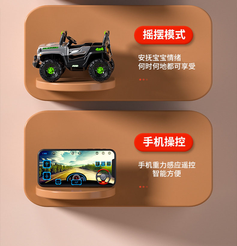| Color | Configuración baja rojo + unidad única 6v4.5a batería + control remoto Bluetooth música,Gris bajo + sola impulsión 6V4.5A batería + música teledirigida de Bluetooth,Rojo estándar + doble unidad 6V7A batería + control remoto Bluetooth música,Gris estándar + batería doble de la impulsión 6V7A + música teledirigida de Bluetooth,Equipado con rojo + doble unidad 12V4.5A batería + función completa,Gris medio + doble unidad 12V4.5A batería + función completa,Alta configuración Rojo + tracción a las cuatro ruedas 12V4.5A batería + función completa,Alto gris + tracción a las cuatro ruedas 12V4.5A batería + función completa,Top con pintura roja + asiento de cuero + tracción a las cuatro ruedas 12V7A batería + función completa,Parte superior con pintura gris + asiento de cuero + tracción a las cuatro ruedas 12V7A batería + función completa |