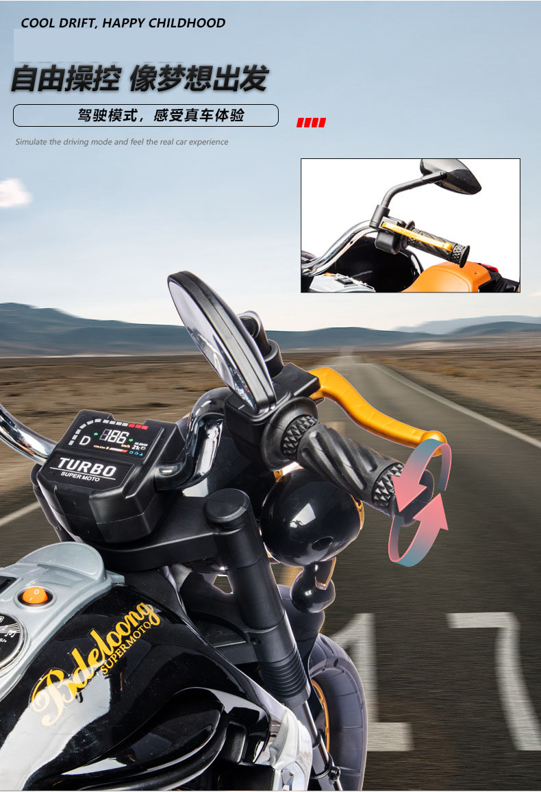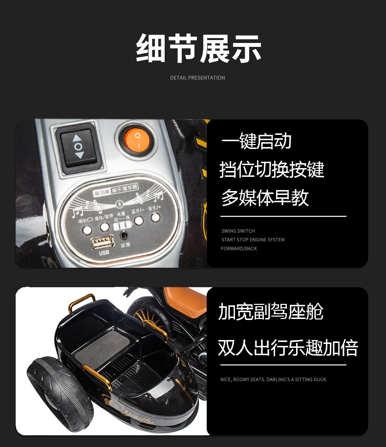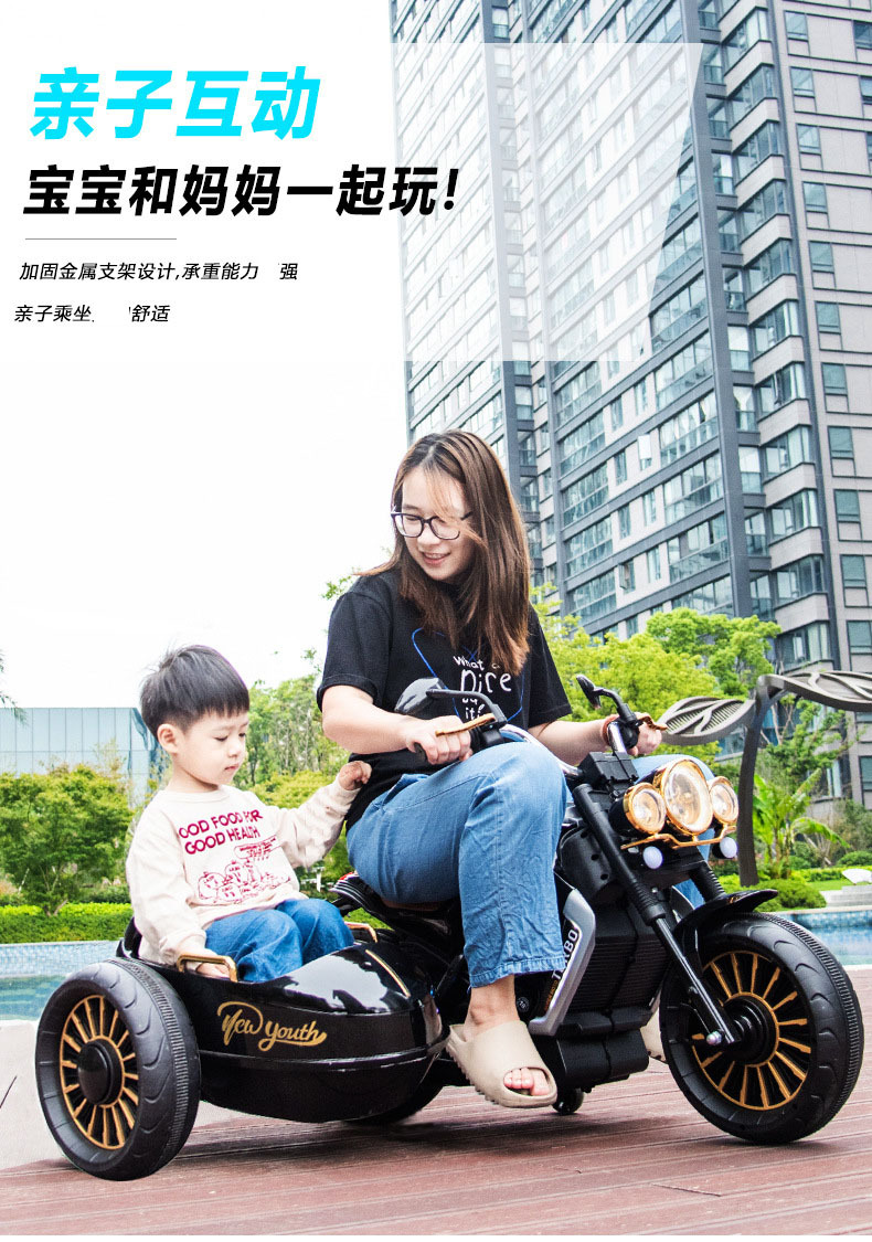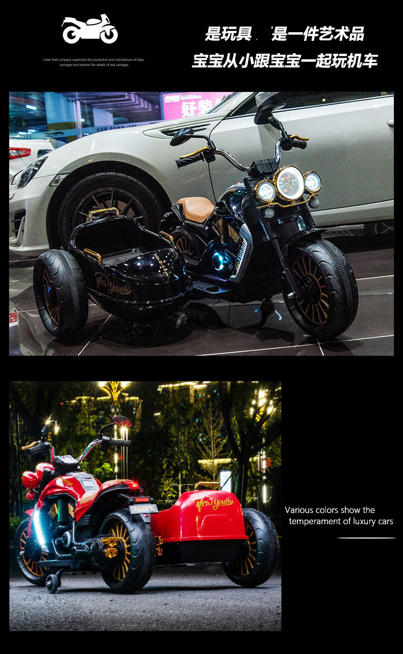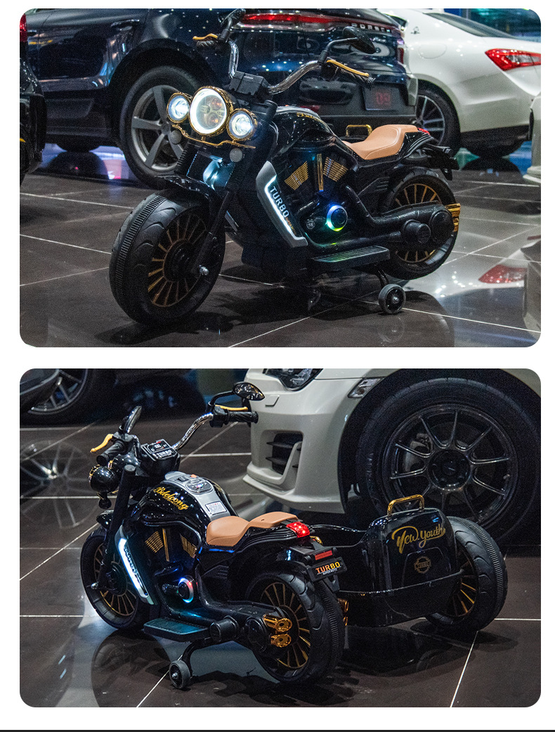 Retro de doble asiento para niños motocicleta eléctrica bebé auto-conducción coche de juguete cochecito eléctrico portátil para niños al por mayor