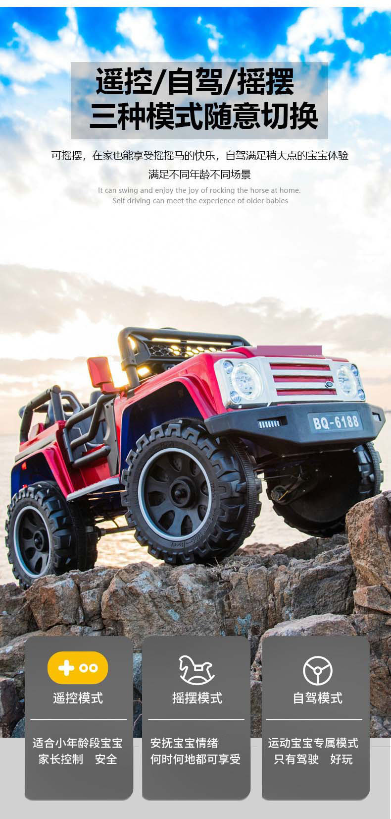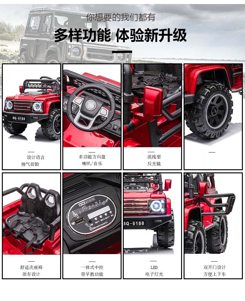 | Color | Blanco + tracción a las cuatro ruedas Potencia + control remoto,Rojo + tracción a las cuatro ruedas Potencia + control remoto,Azul + tracción en las cuatro ruedas Potencia + control remoto,Blanco + tracción a las cuatro ruedas eléctrica + Control Remoto + asiento de cuero,Rojo + tracción a las cuatro ruedas eléctrica + Control Remoto + asiento de cuero,Azul + tracción a las cuatro ruedas eléctrica + Control Remoto + asiento de cuero,Pintura vino rojo + tracción a las cuatro ruedas energía eléctrica + Control Remoto + asiento de cuero,Pintura negra + tracción a las cuatro ruedas eléctrica + Control Remoto + asiento de cuero |
