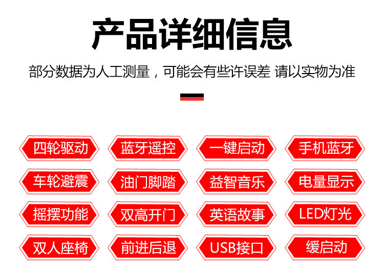 | Colores | Asiento rígido Big Red-Dual Drive 12V4.5,Asiento rígido amarillo-doble tracción 12V4.5,Asiento rígido blanco-doble tracción 12V4.5,Asiento rígido verde-doble tracción 12V4.5,Asiento rígido pintado burdeos-doble tracción 12V4.5,Pintar negro-doble tracción 12V4.5 asiento duro,Gran cuero rojo con tracción en las cuatro ruedas 12V7 eléctrico grande,Piel verde con tracción en las cuatro ruedas 12V7 eléctrico grande,Piel blanca con tracción en las cuatro ruedas 12V7 eléctrico grande,Piel amarilla con tracción en las cuatro ruedas 12V7 eléctrico grande,Piel de tracción en las cuatro ruedas rojo vino pintado 12V7 eléctrico,Piel negra con tracción en las cuatro ruedas pintada 12V7 eléctrico grande |