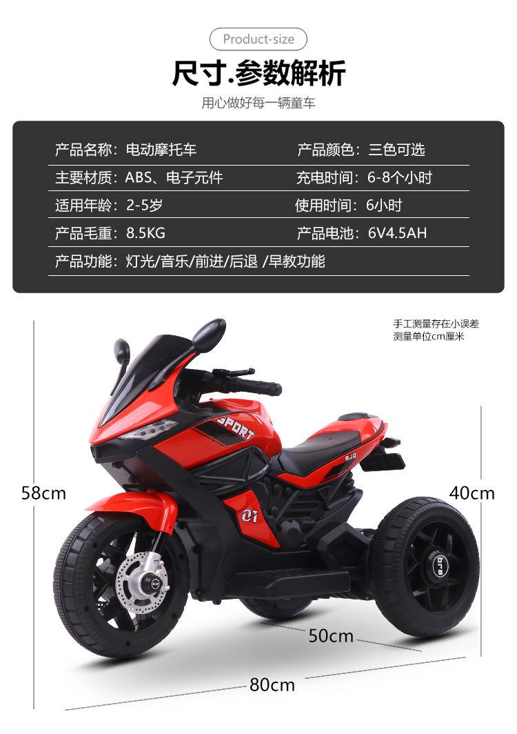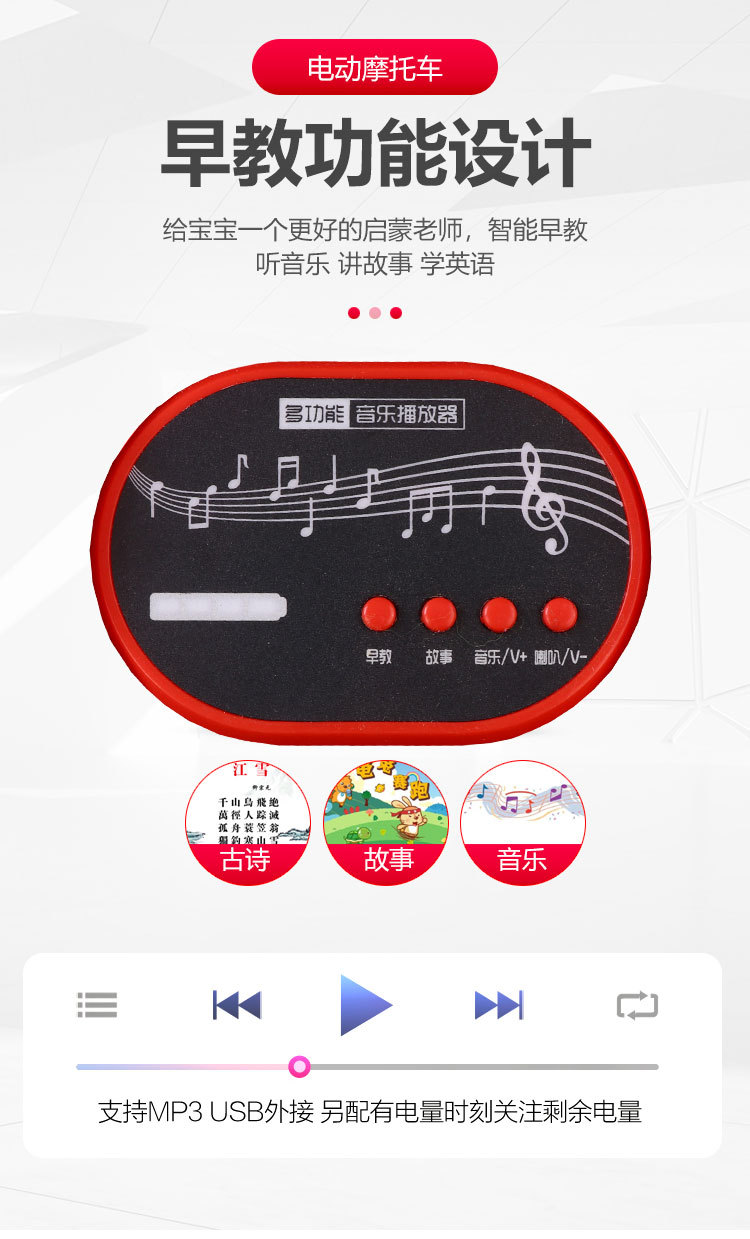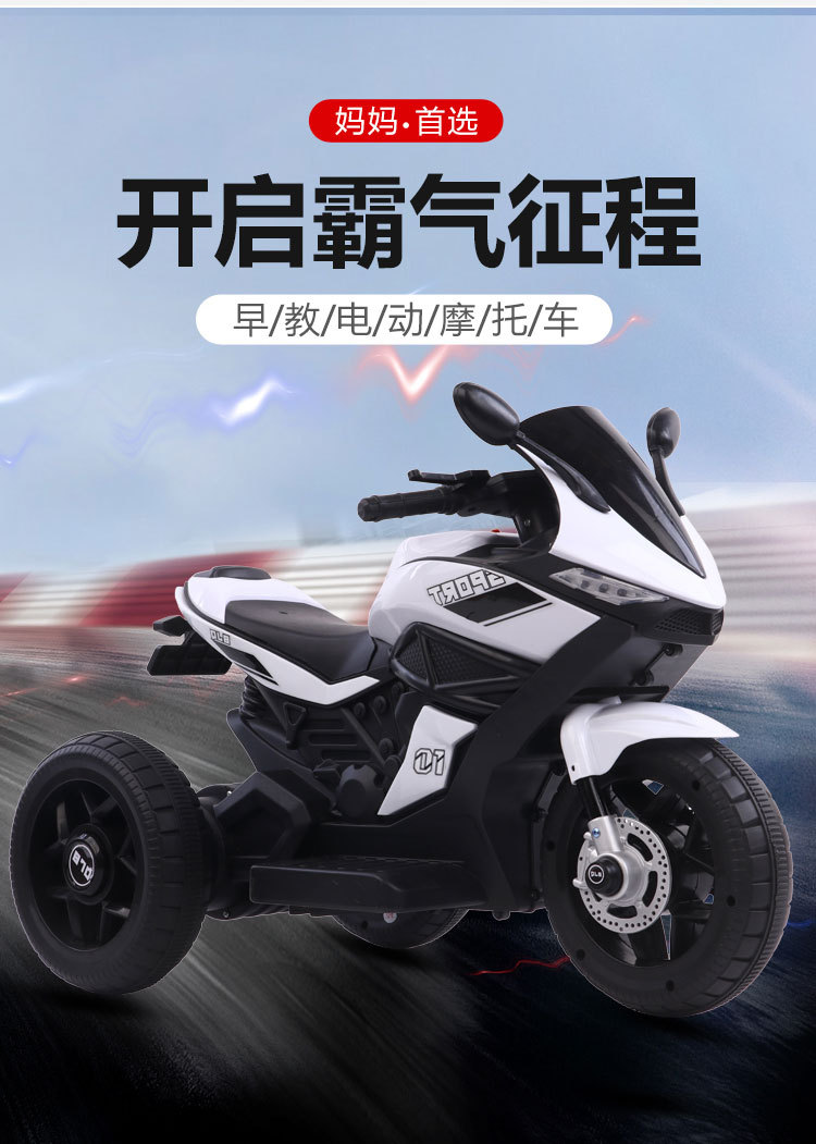 Motocicleta eléctrica de los niños solo bebé puede sentarse triciclo música al por mayor cinturón educación temprana apoyo versión inglés