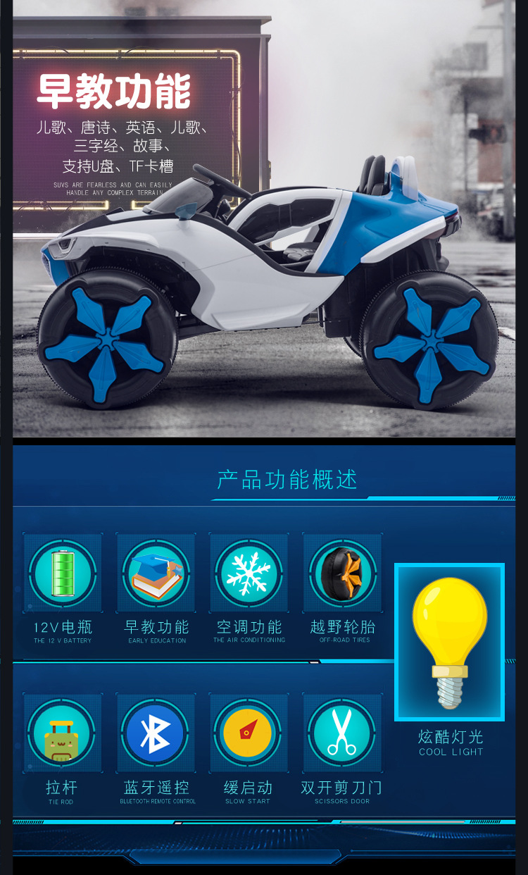 Coche todoterreno eléctrico portátil para niños puede sentarse fresco educación temprana