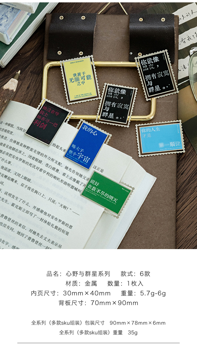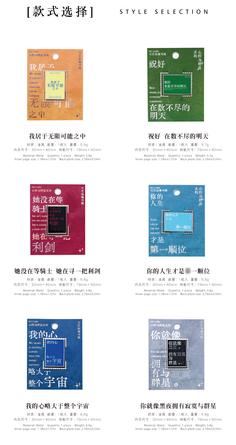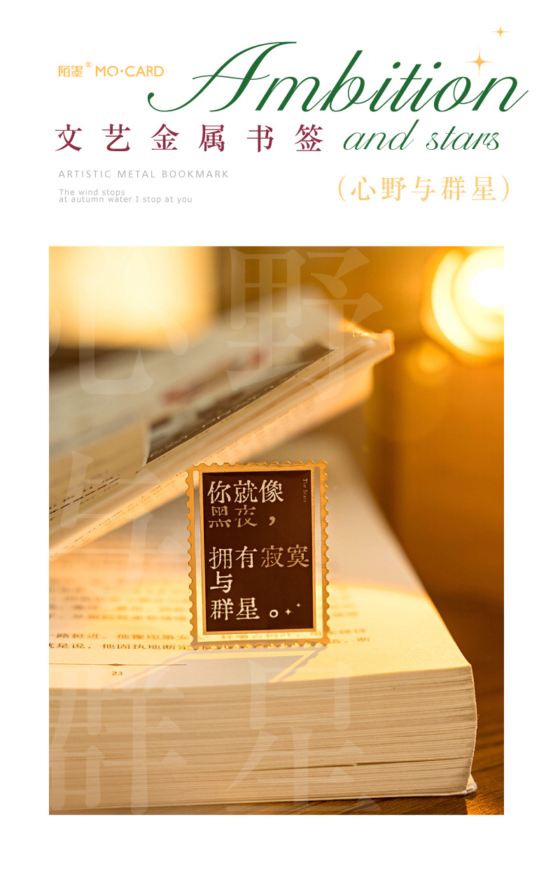 Mo Mo Metal Bookmark Heart and Stars Series Literario y simple Texto Libro de lectura de regalo para estudiantes Clip