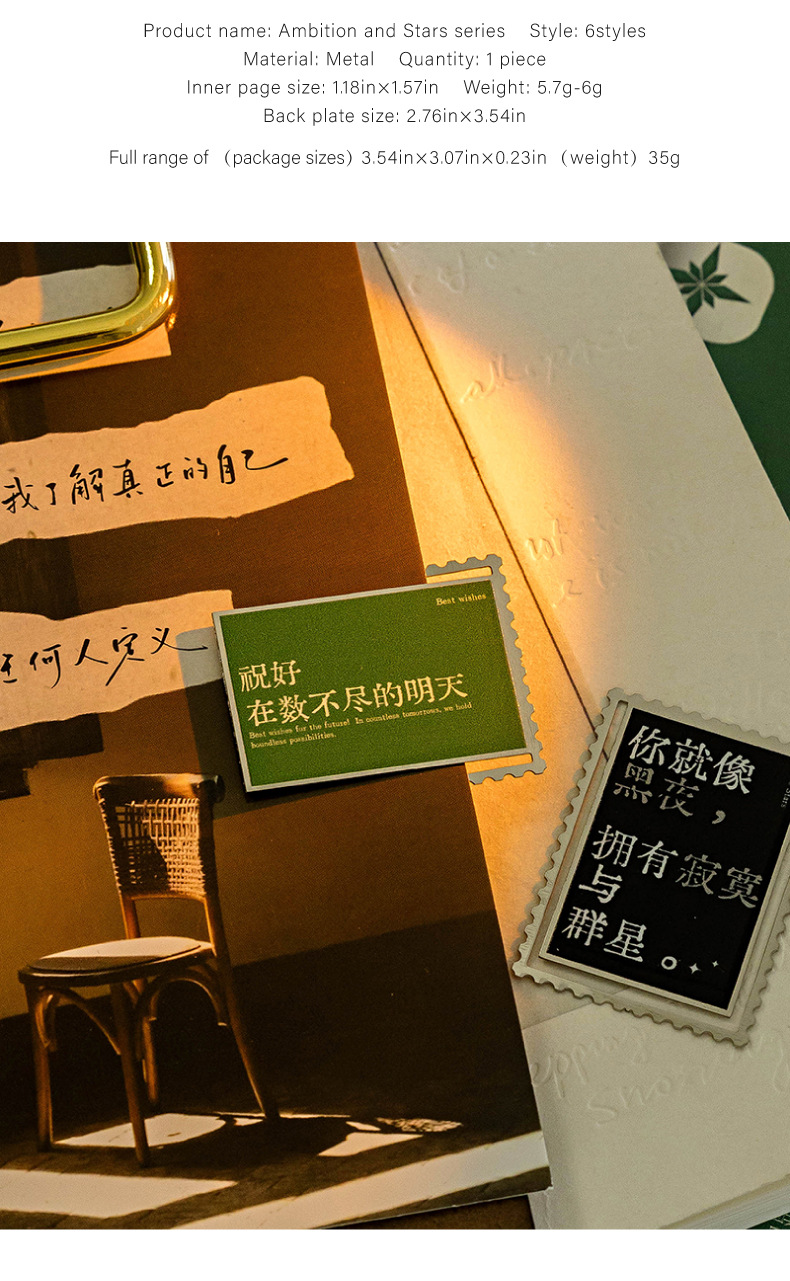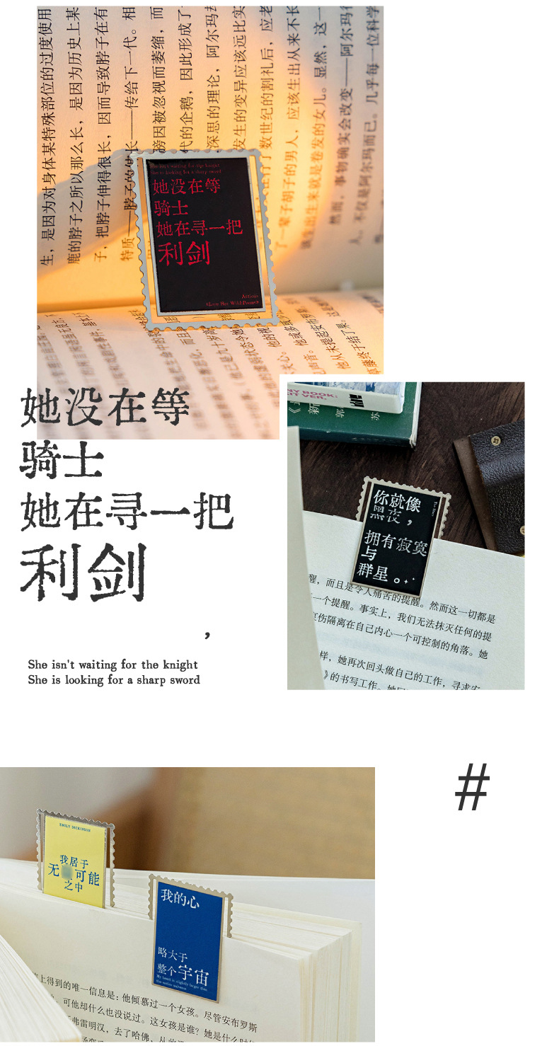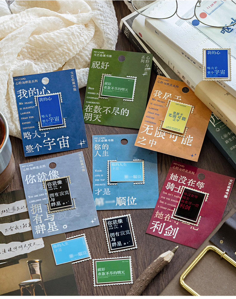 Mo Mo Metal Bookmark Heart and Stars Series Literario y simple Texto Libro de lectura de regalo para estudiantes Clip