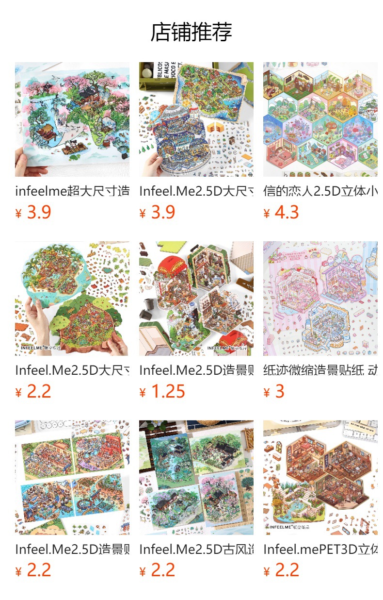 | Color | Conoce Harbin (capítulo de la ciudad 10.0), conoce Dunhuang (capítulo de la ciudad 9.0), nunca duerme Chang 'an (capítulo de la ciudad 8.0), persigue Xi Qingdao (capítulo de la ciudad 7.0), ciudad montañosa Chongqing (capítulo de la ciudad 6.0), lanyue Changsha (capítulo de la ciudad 5.0), océano almohada Xiamen (capítulo de la ciudad 4.0), como la pintura Kioto (capítulo de la ciudad 3.0), gira de Shanghai (capítulo de la ciudad 2.0), sueña gusu (capítulo de la ciudad 1.0), apartamento (mundo divertido), bosque (mundo divertido), librería (capítulo de fantasía), supermercado (mundo de fantasía), restaurante de olla caliente versión 2.0 (tercer piso del mundo de fantasía), Villa grande 0 (tercer piso del mundo de la fantasía), cuenta atrás para el negocio (libro de pegatinas para la creación de paisajes felices), Cuando la vida está en marcha (libro de pegatinas para la creación de paisajes felices), escena en miniatura (libro de colección de escenas en miniatura de jiuli) |