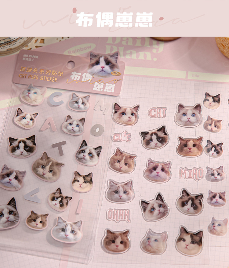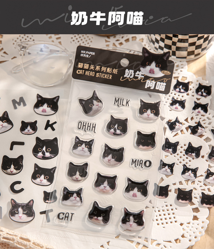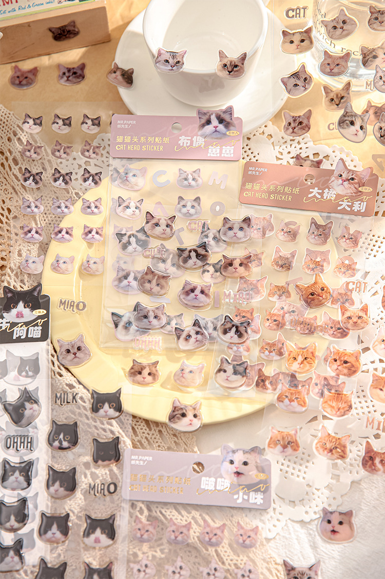 Mr. Papel pegatinas planas serie Cat Head dibujos animados lindo Hakimi Goka Diario material pegatinas 4