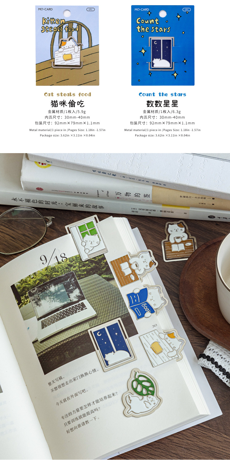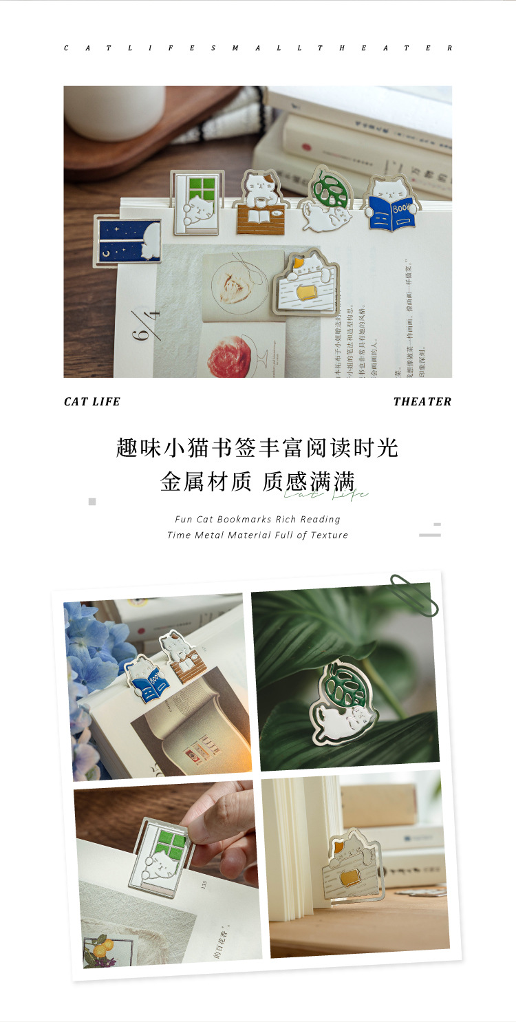 Mo Mo Metal Bookmark Cat Life Little Theatre Series Cute Cartoon Student Gift Reading Book Pages