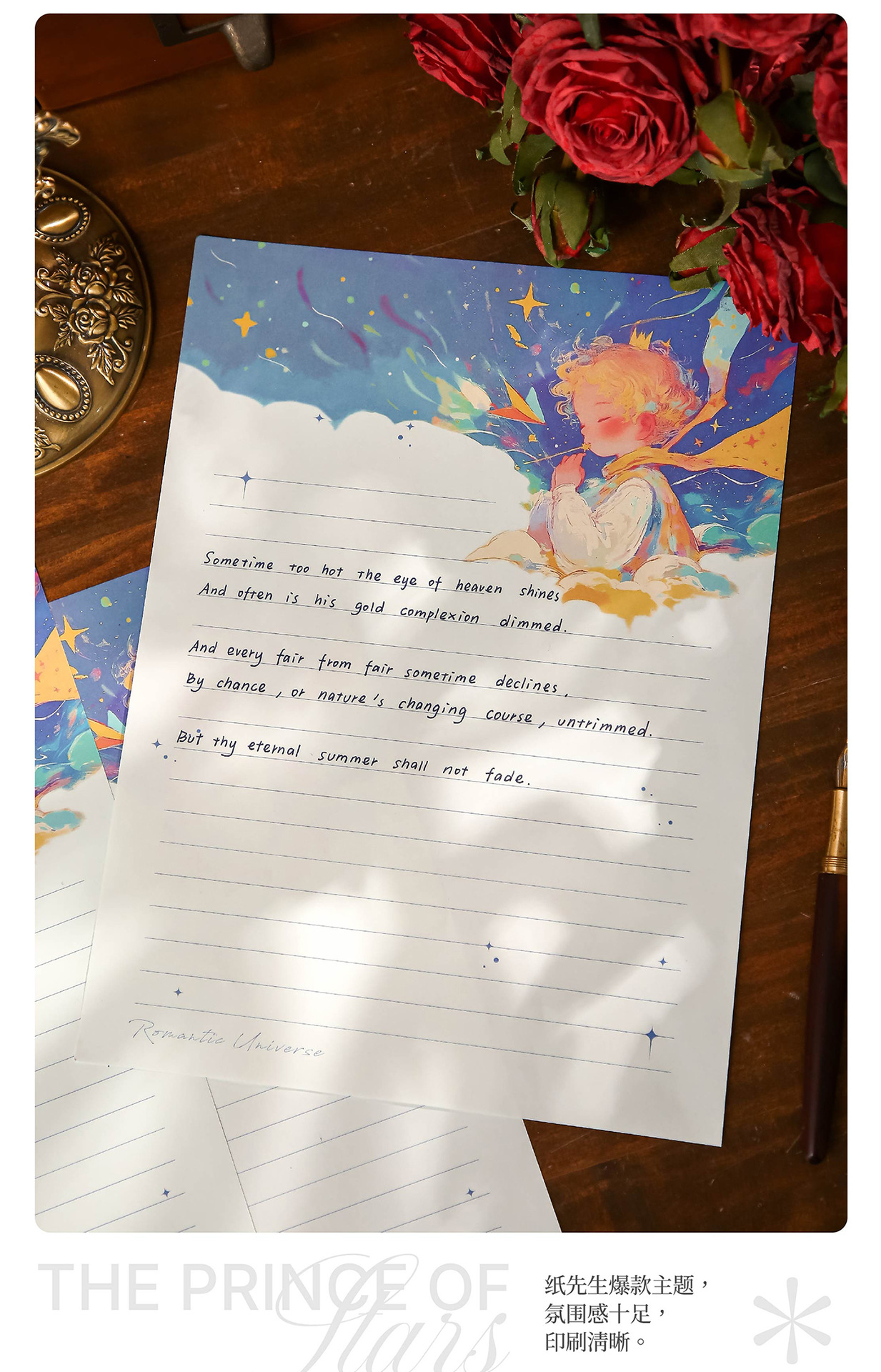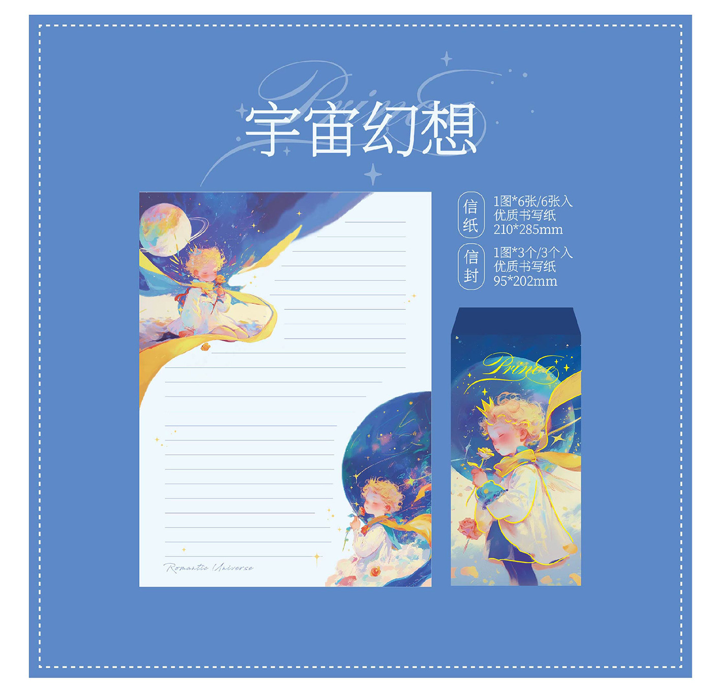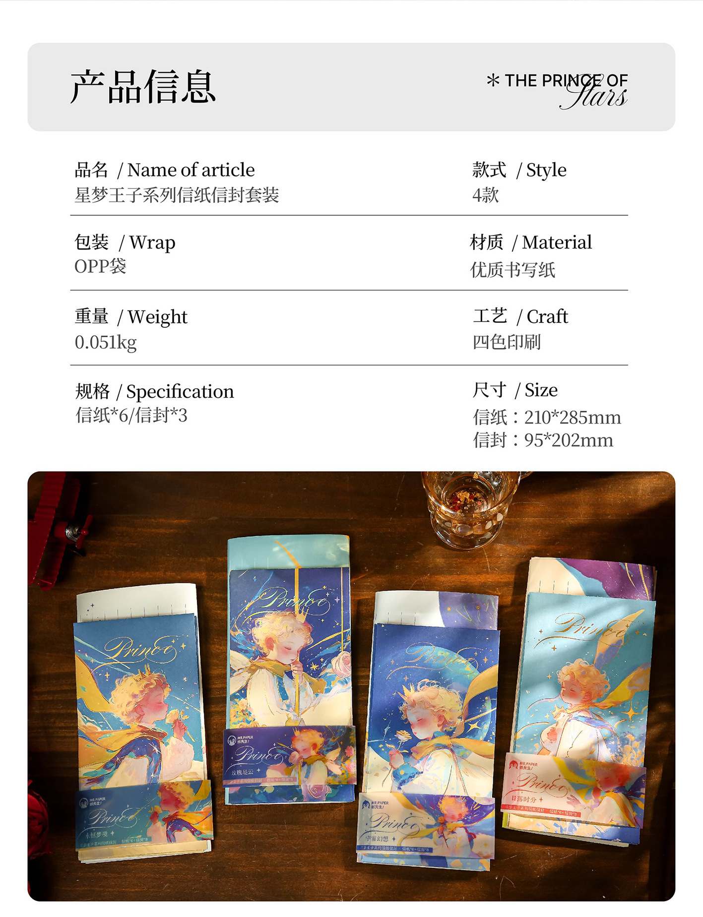 Juego de sobres de papel de carta de primera vida Star Dream Prince Series Juego de sobres de papel de carta de papel de alta calidad creativo bronceado