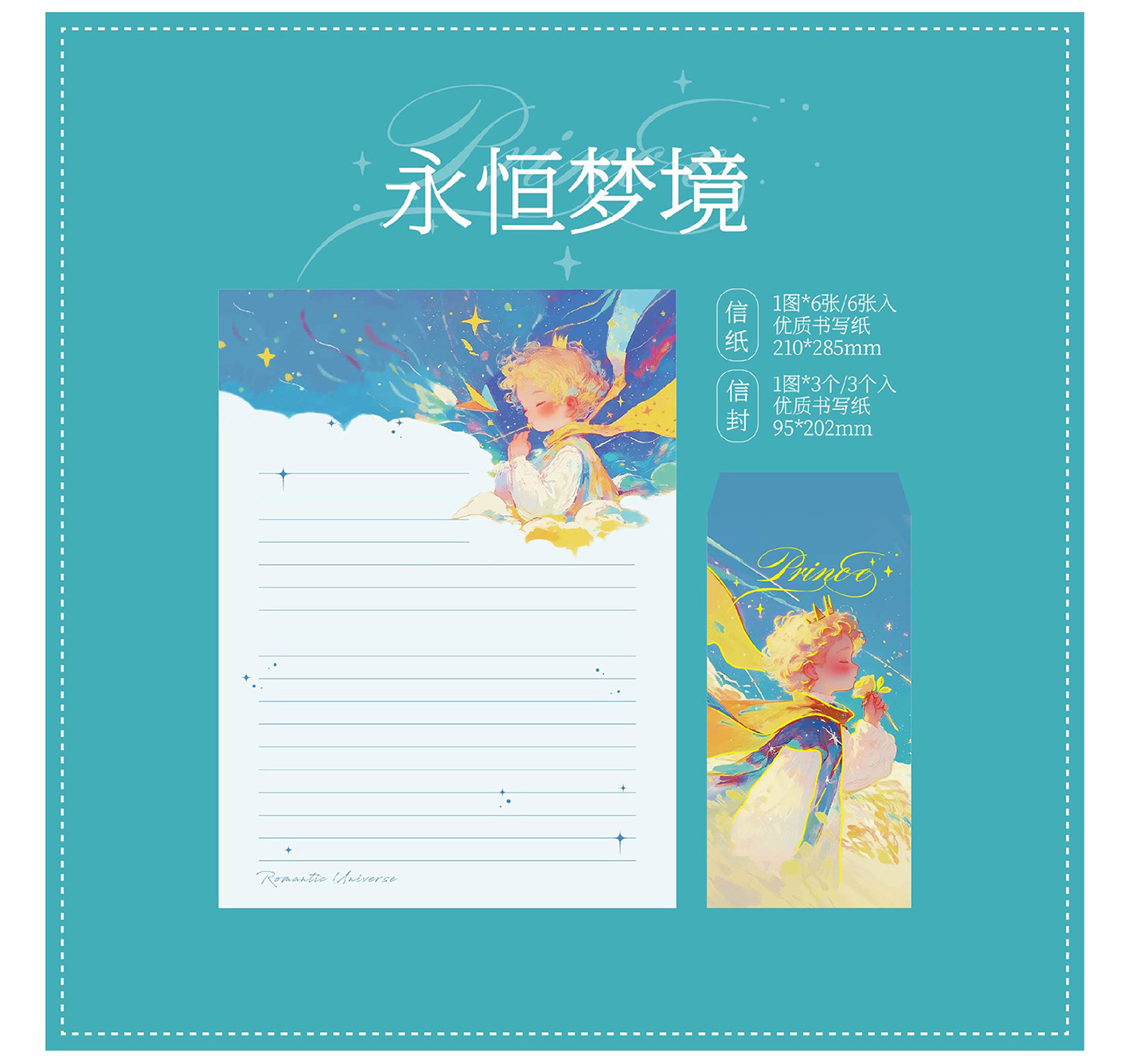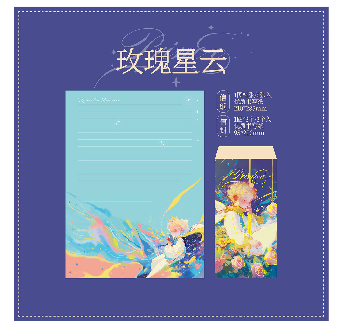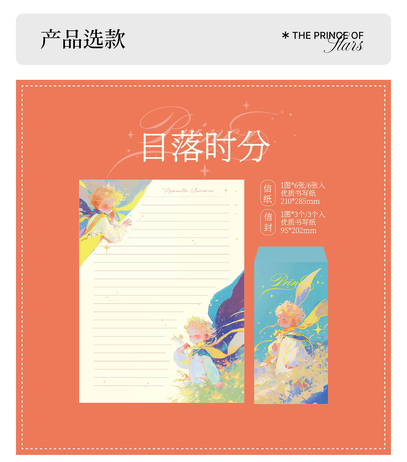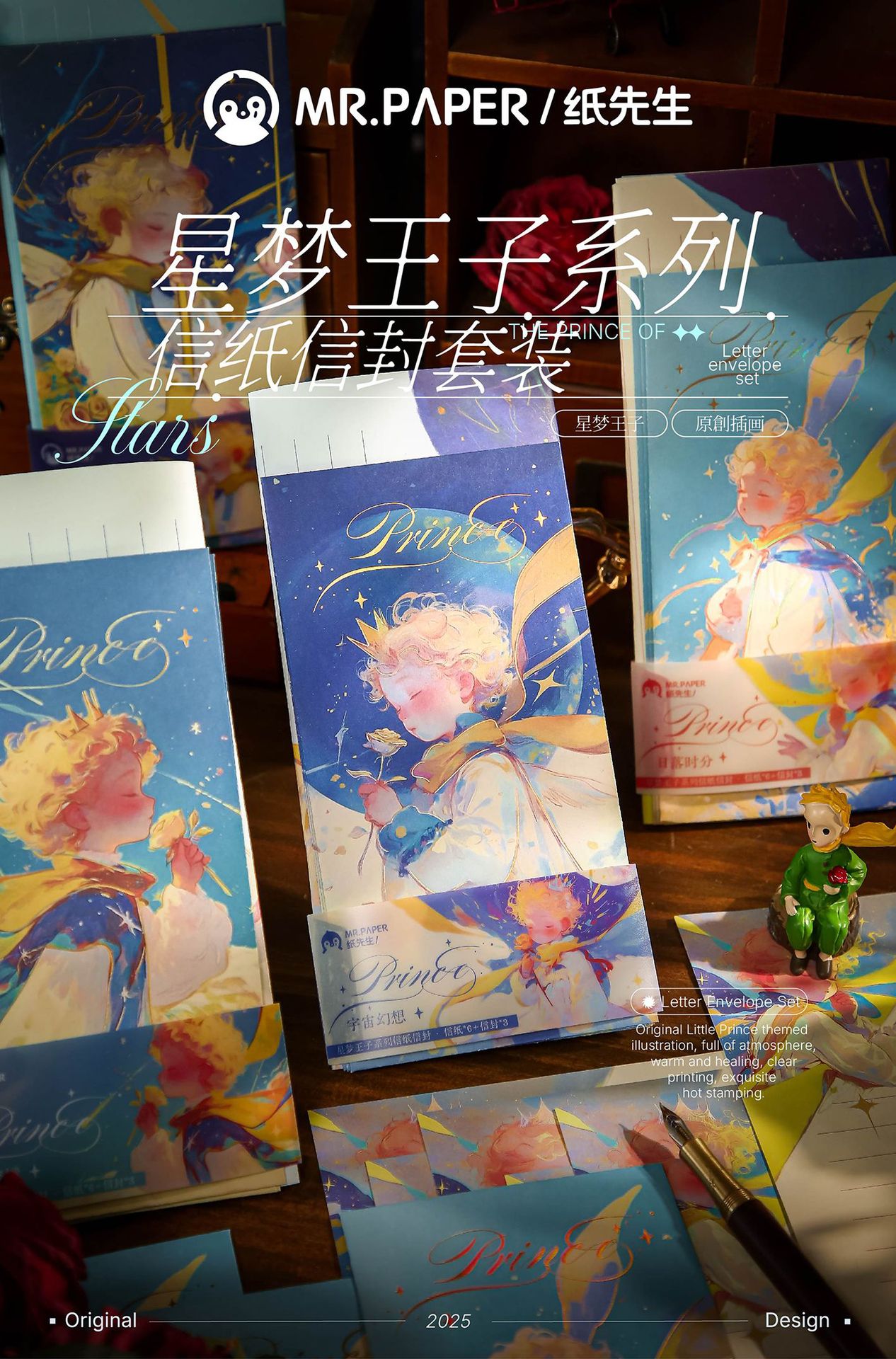 Juego de sobres de papel de carta de primera vida Star Dream Prince Series Juego de sobres de papel de carta de papel de alta calidad creativo bronceado