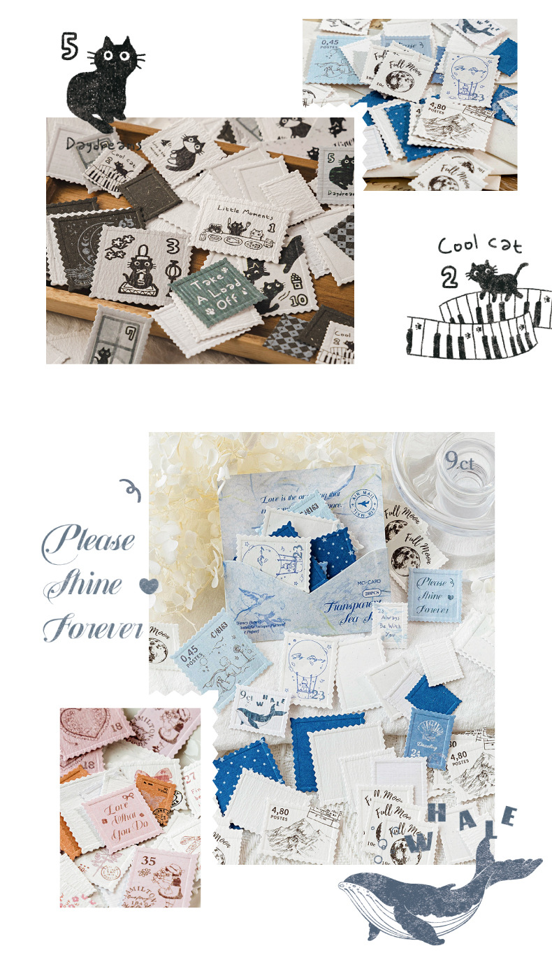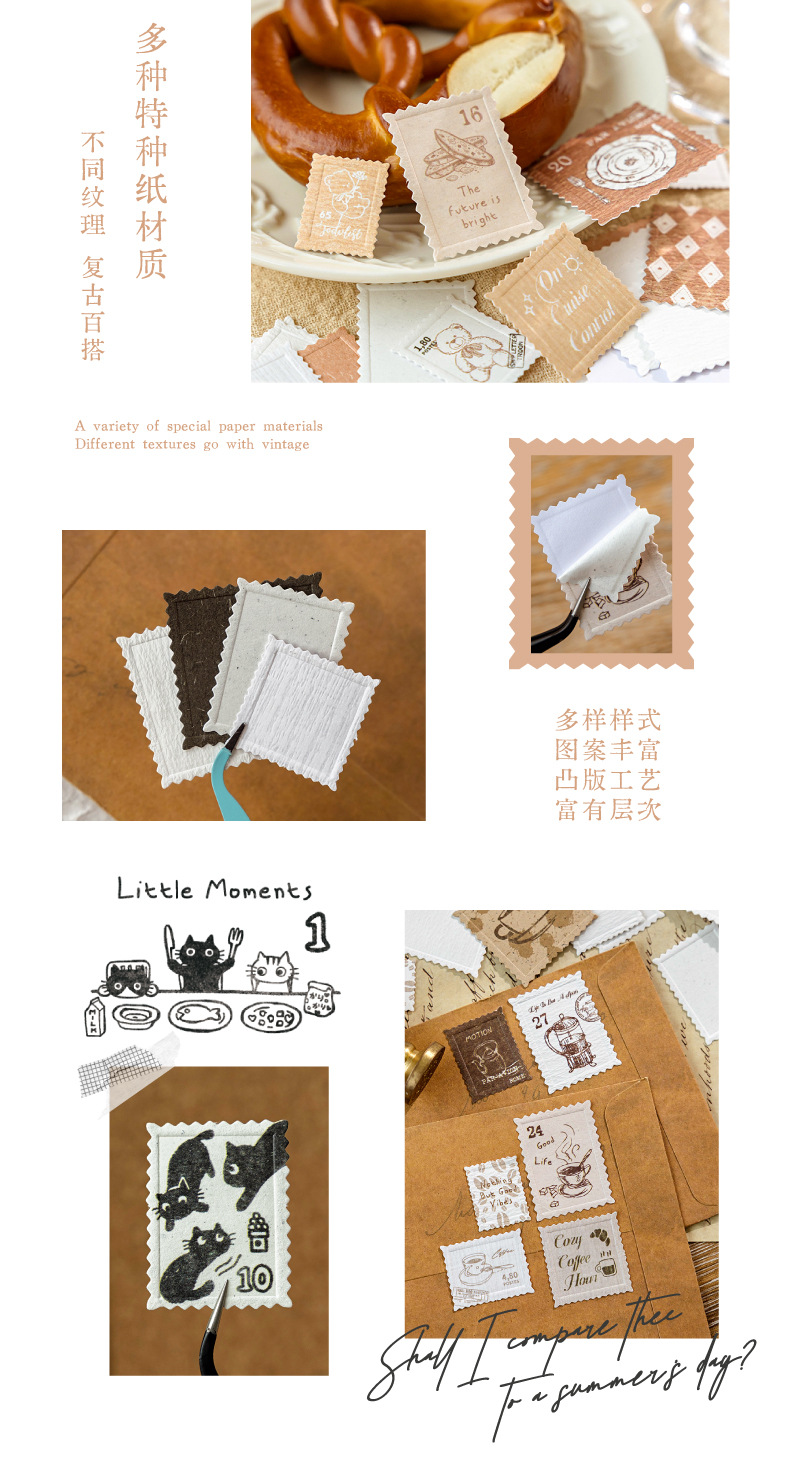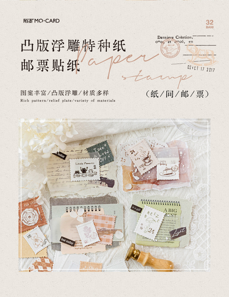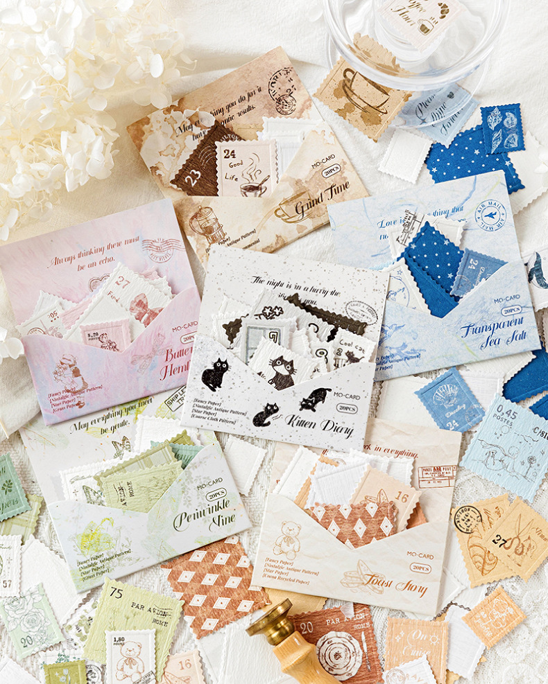Mo Yan Mo Mo Paquete de pegatinas retrógradas sello de papel sello de relieve material de decoración de cuentas de mano paquete de pegatinas paisajísticas