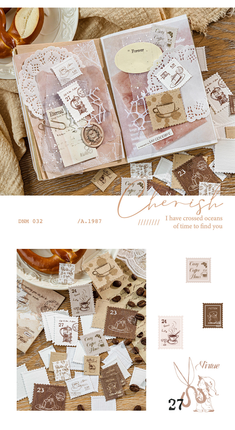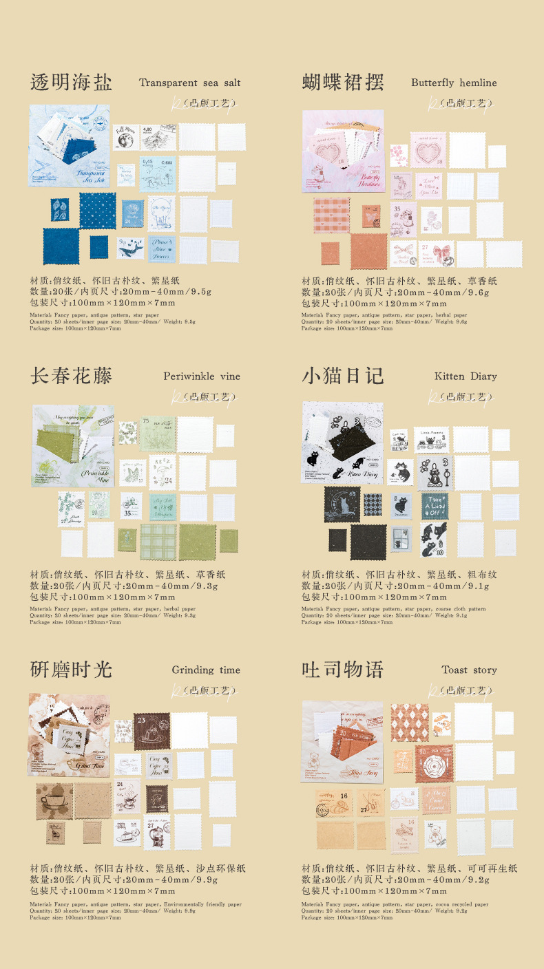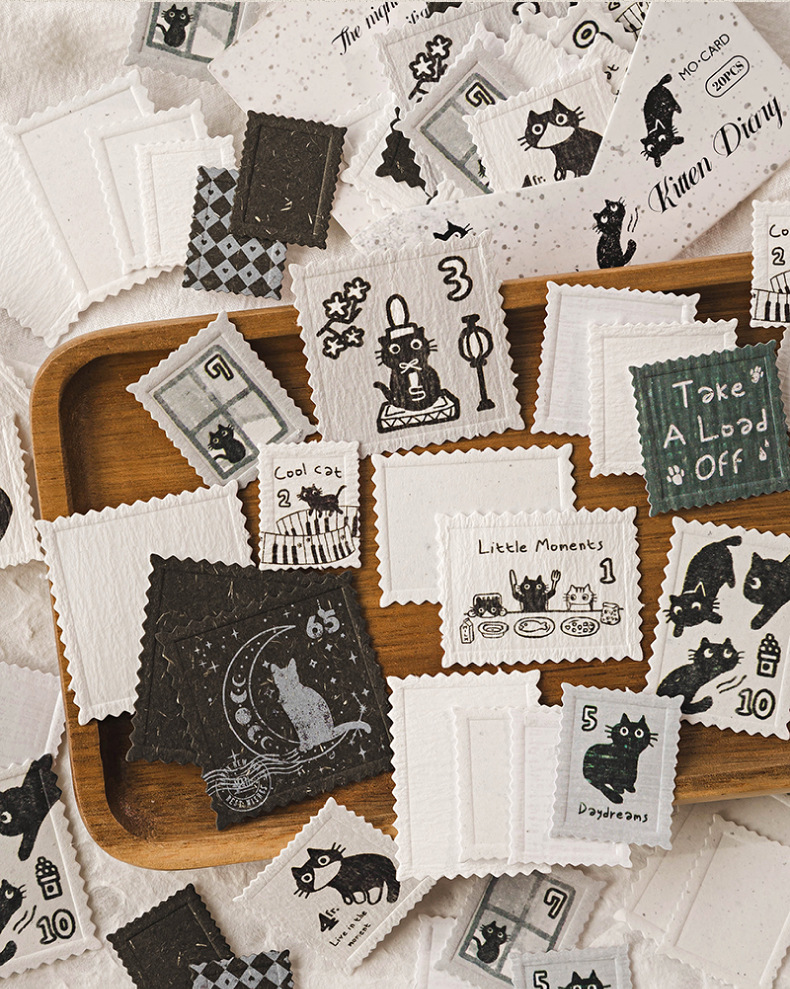 Mo Yan Mo Mo Paquete de pegatinas retrógradas sello de papel sello de relieve material de decoración de cuentas de mano paquete de pegatinas paisajísticas