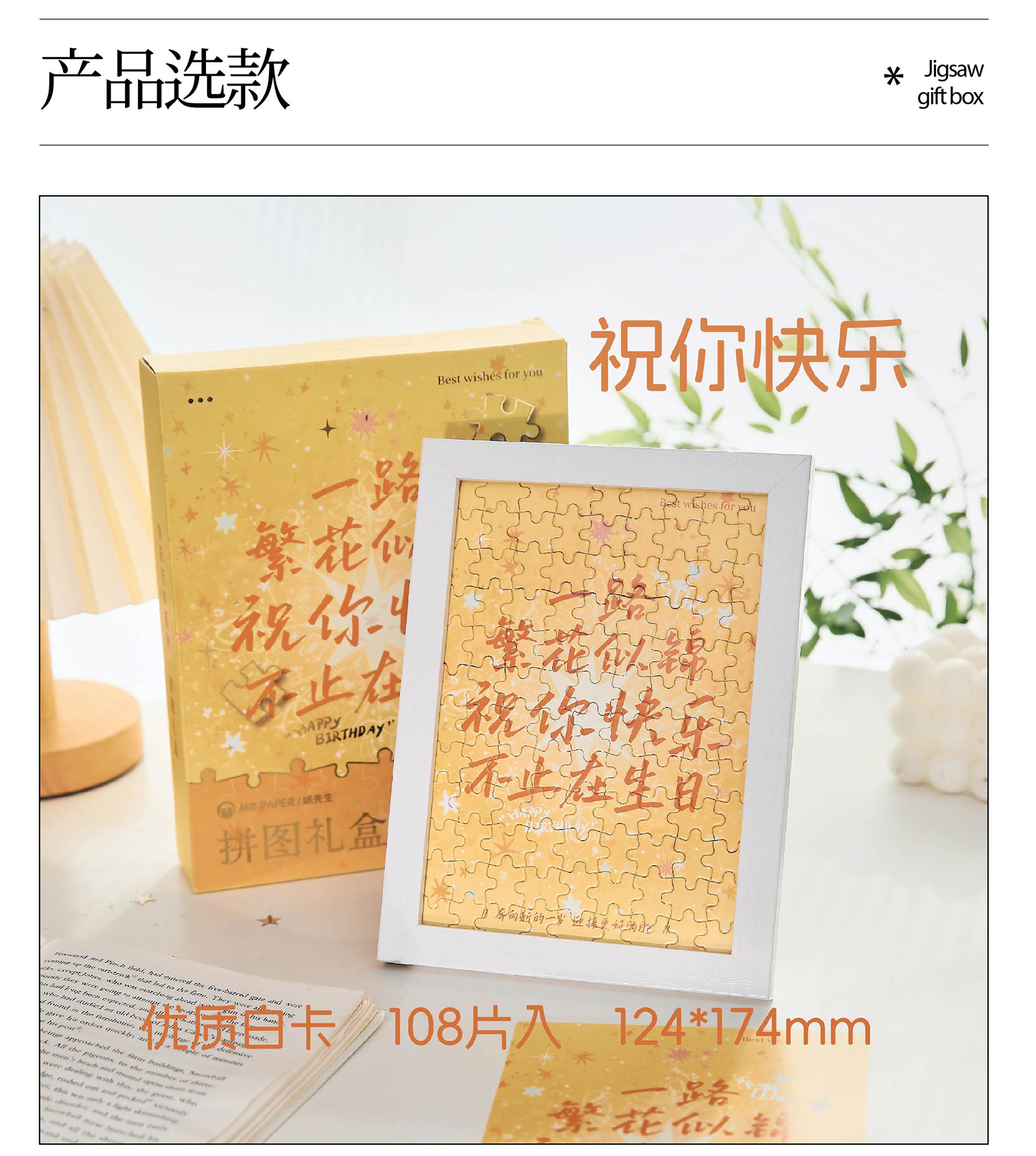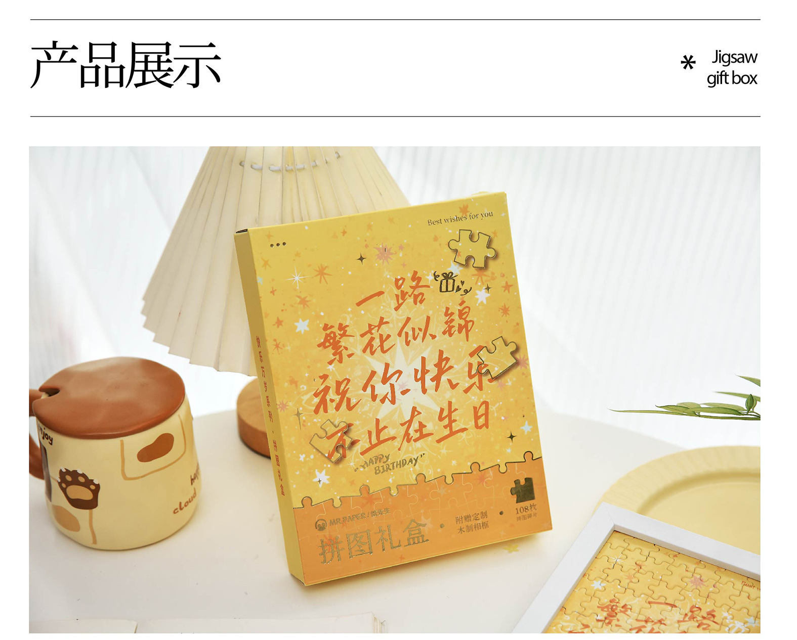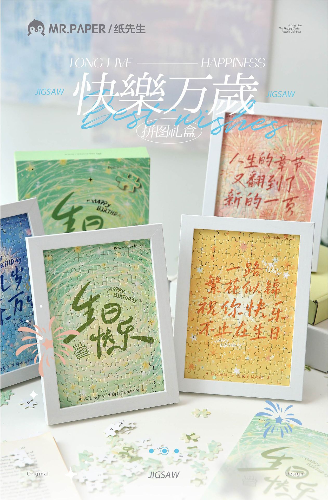 Mr. Paper Jigsaw Gift Box Happy Long Live Creative Text Bendición Rompecabezas Regalo de cumpleaños para estudiantes Adornos de escritorio
