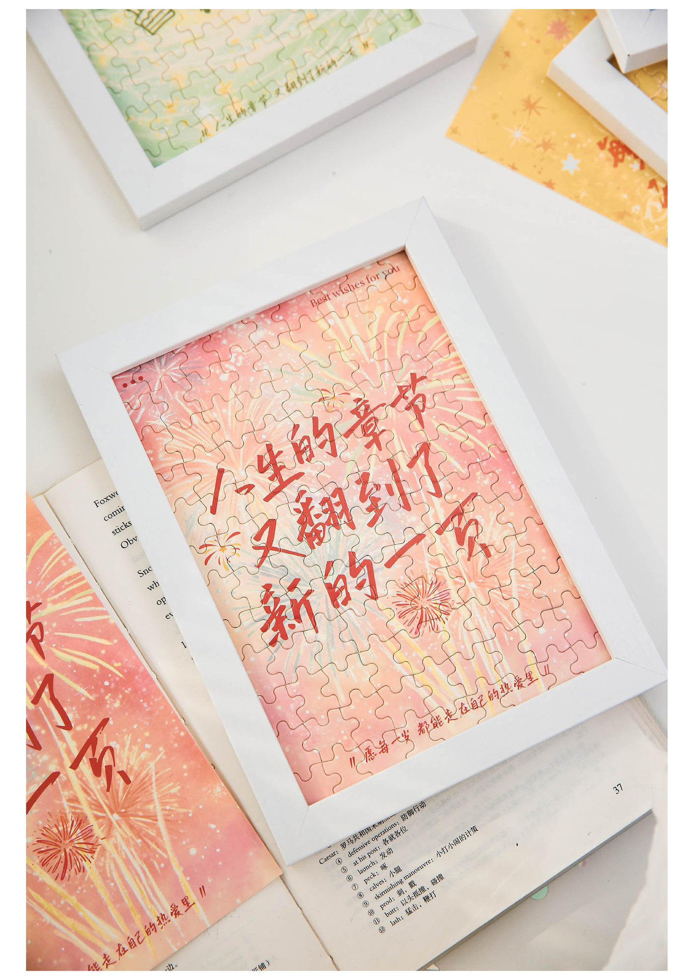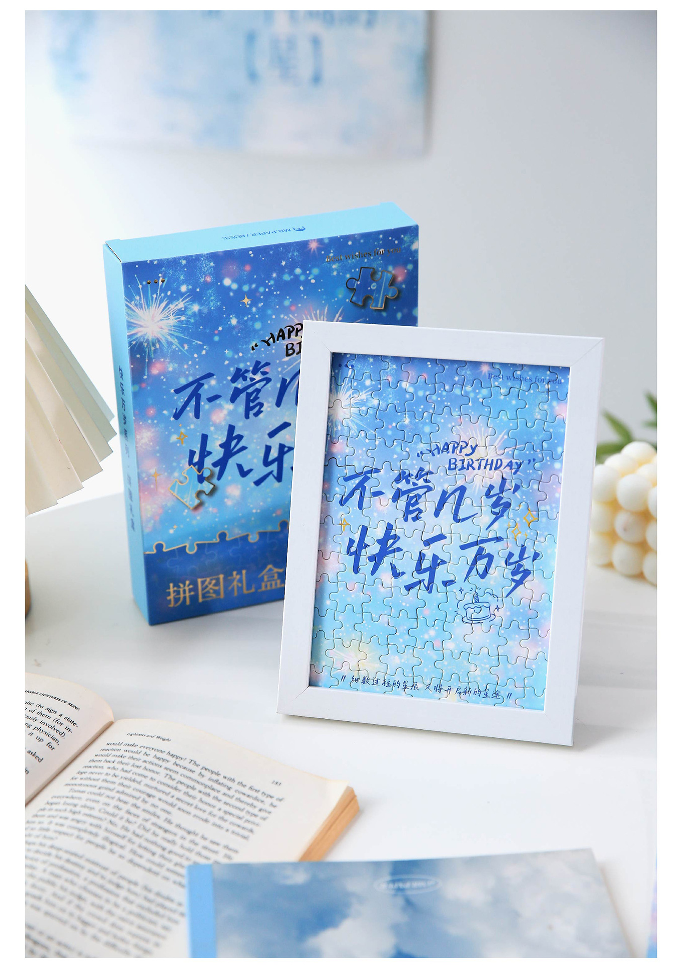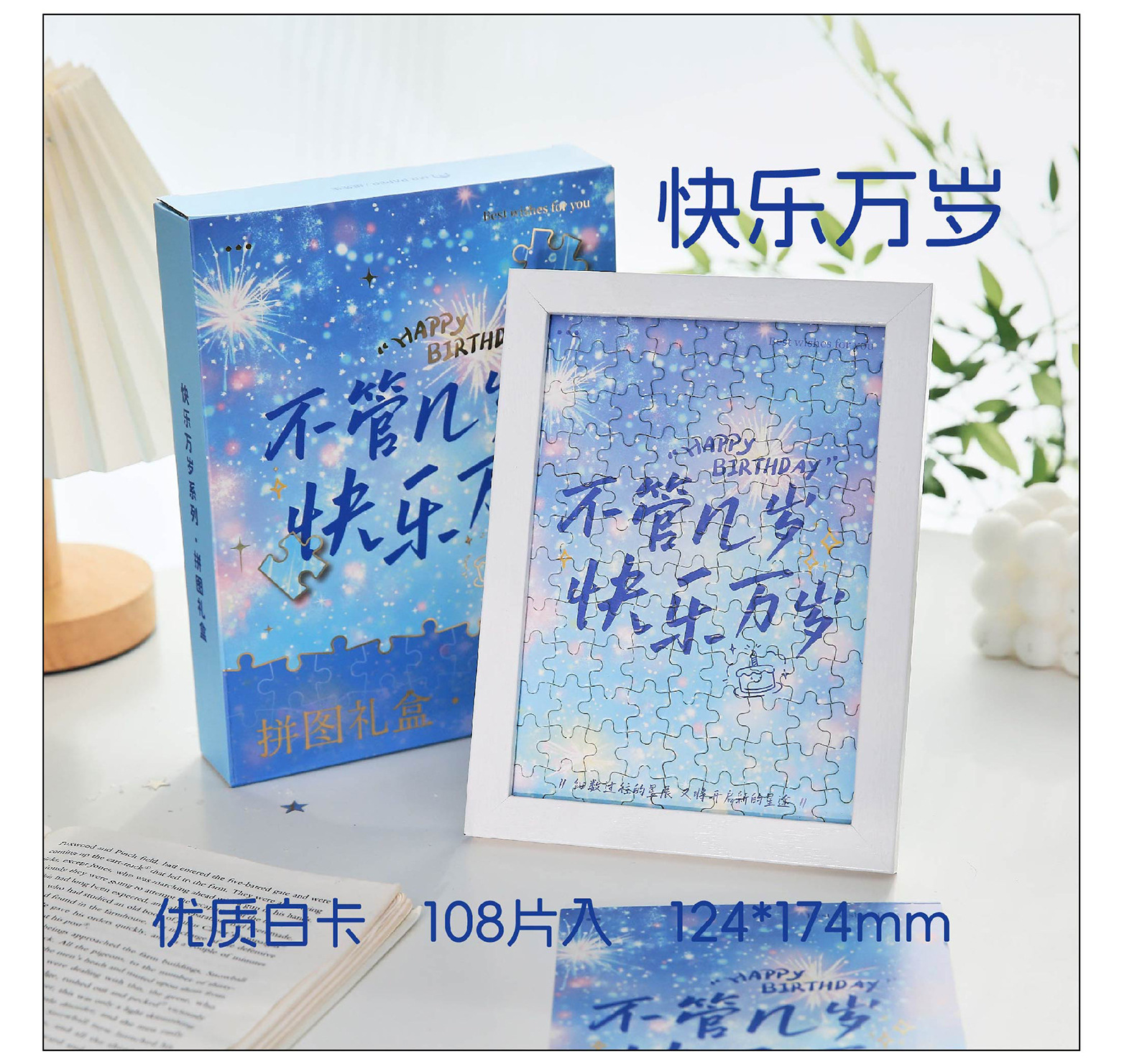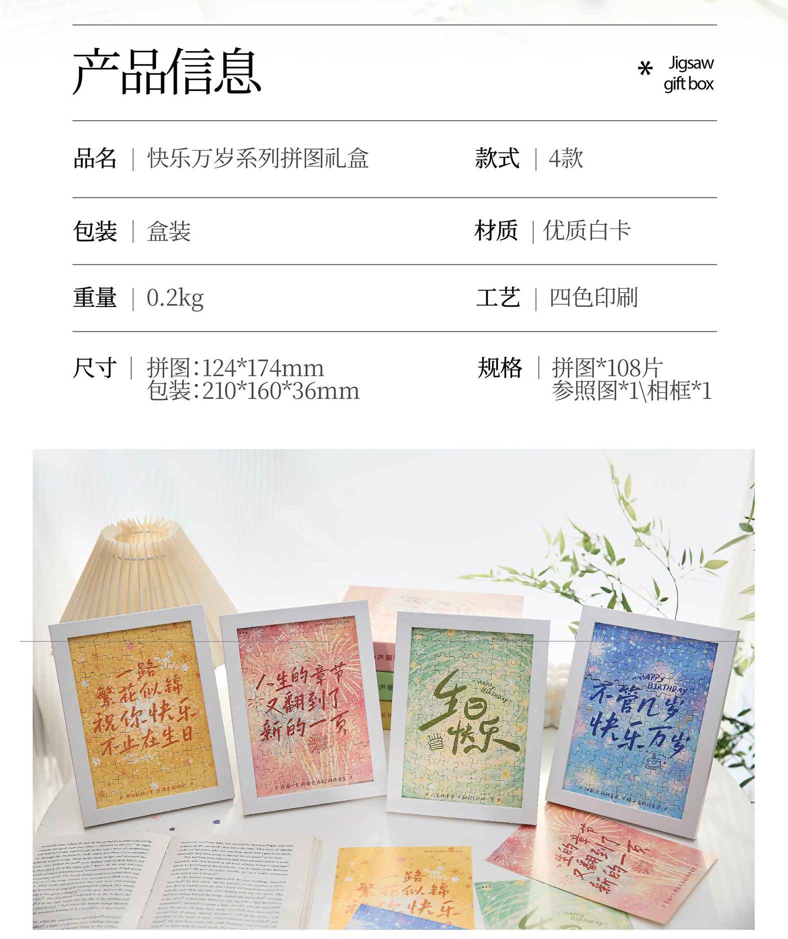 Mr. Paper Jigsaw Gift Box Happy Long Live Creative Text Bendición Rompecabezas Regalo de cumpleaños para estudiantes Adornos de escritorio