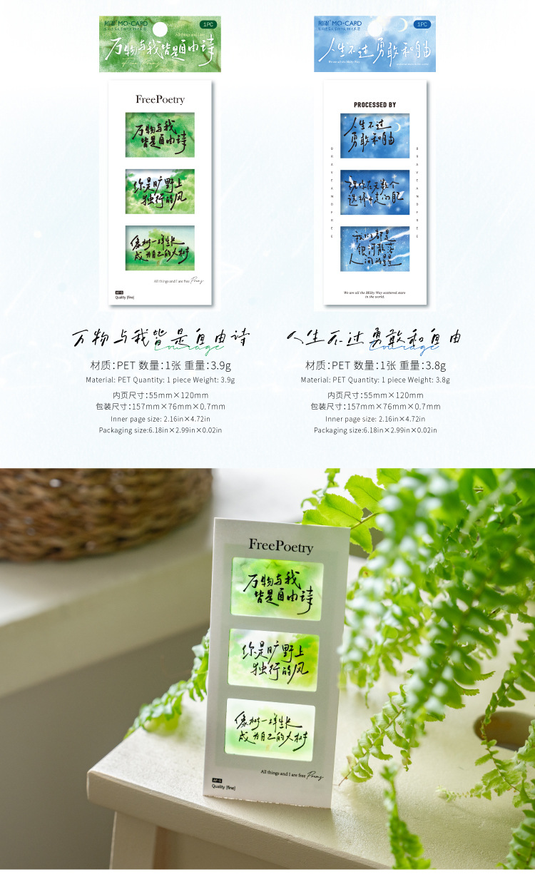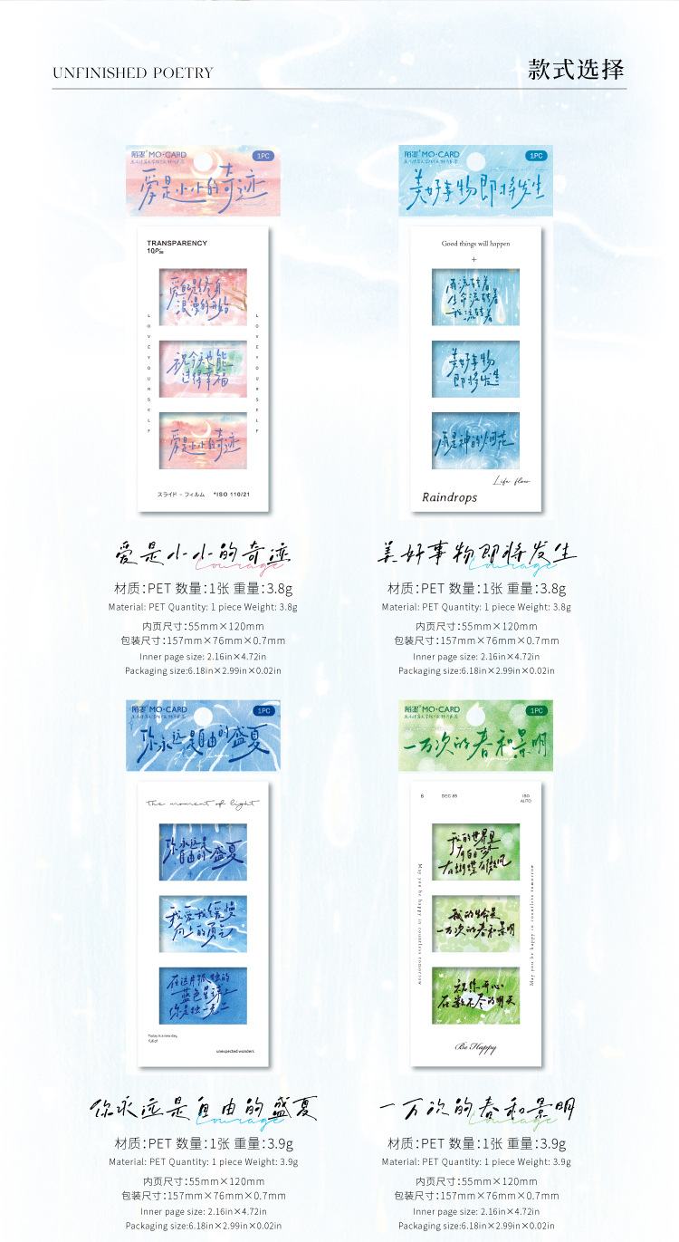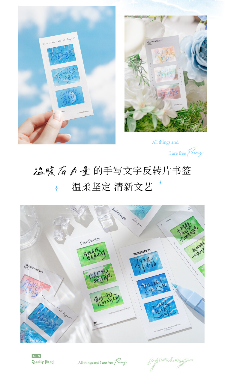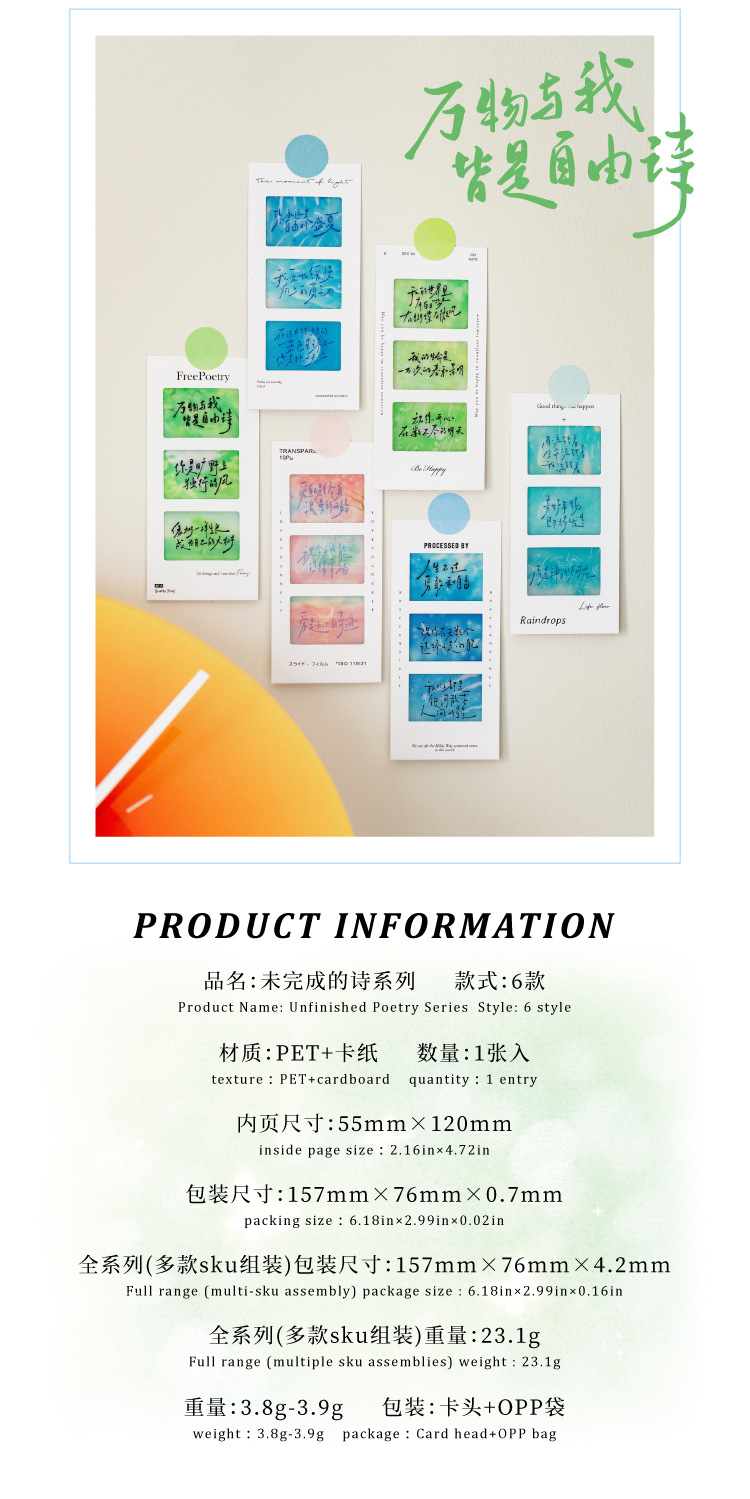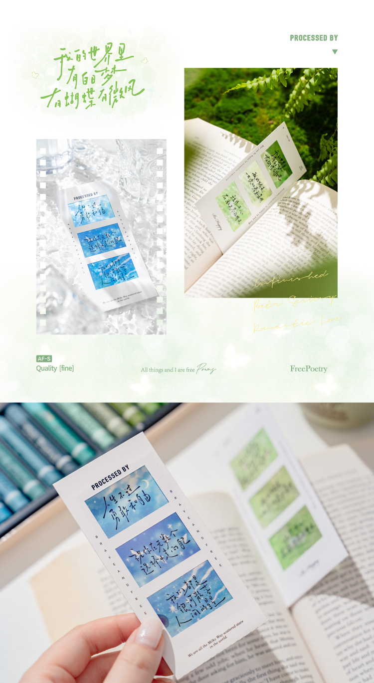 Marcadores de película de inversión de Mo Mo PET, texto de poesía sin terminar, estudiantes de alto valor leen marcadores, colgantes de mochilas escolares