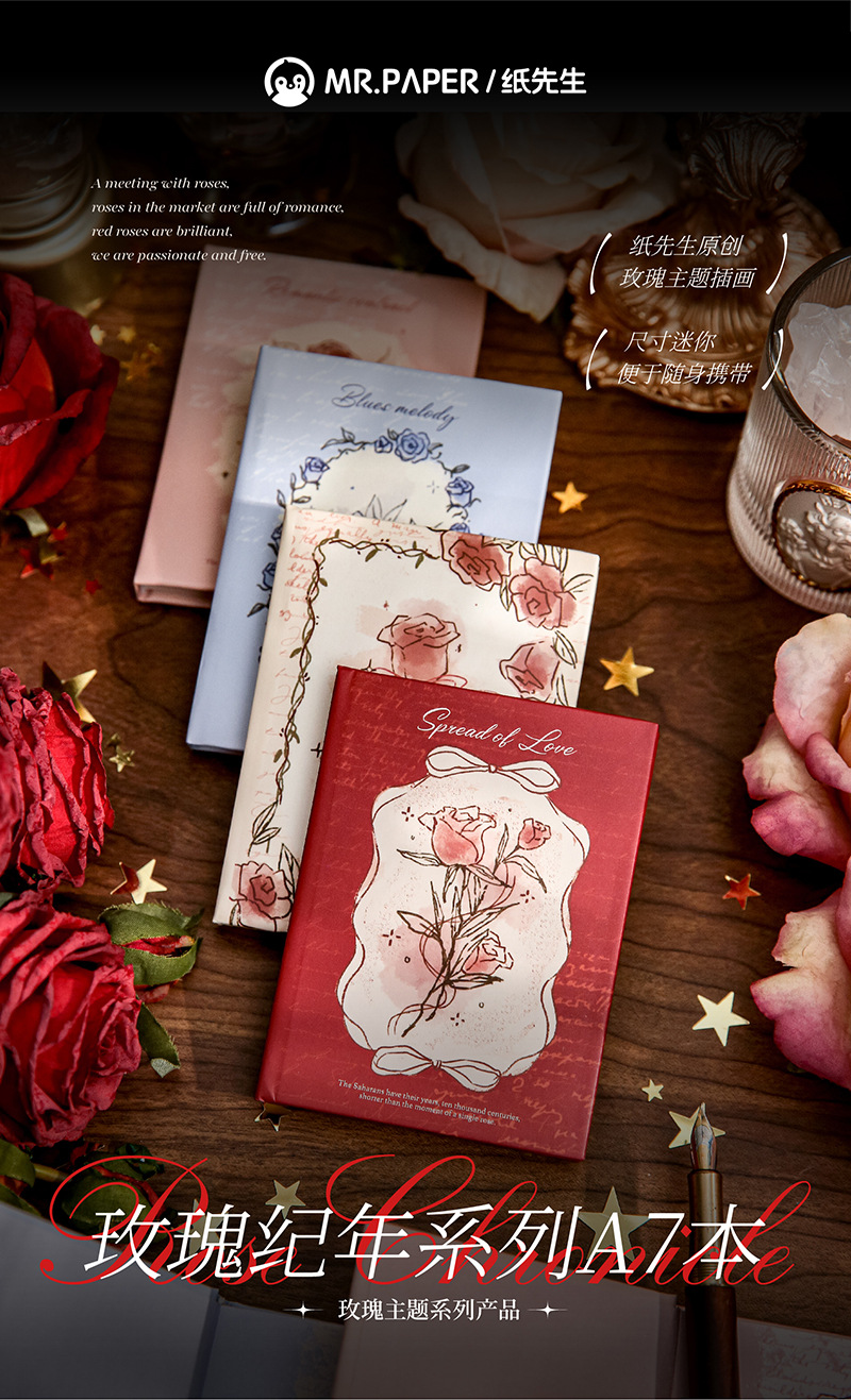 Mr. Paper A7 Rose Chronicle Series Ilustración original Libro de cuentas de mano Mensaje de estudiante Cuaderno de notas