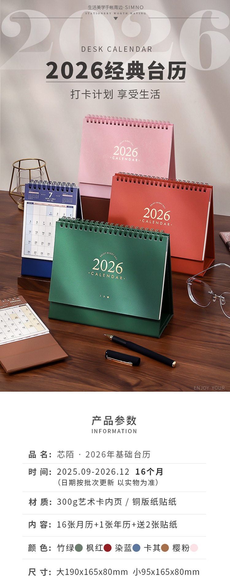 Calendario de escritorio básico Xinmo 2026 Retro plan de registro simple oficina escritorio mensaje memo calendario decoración