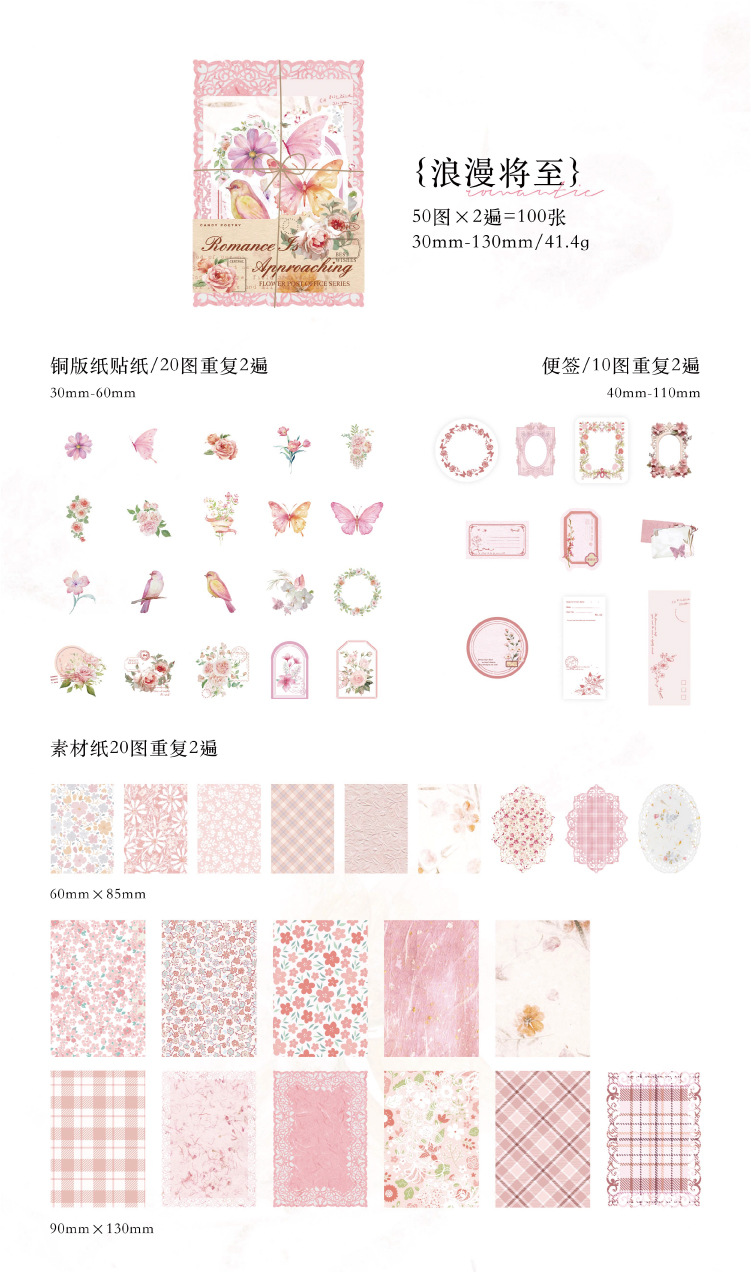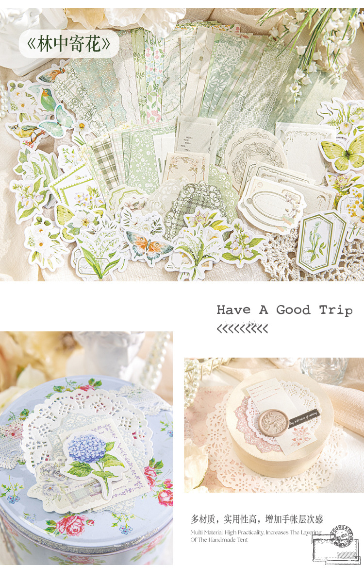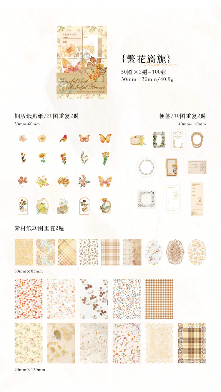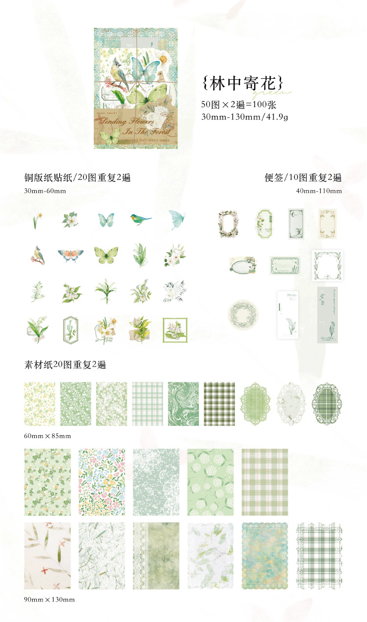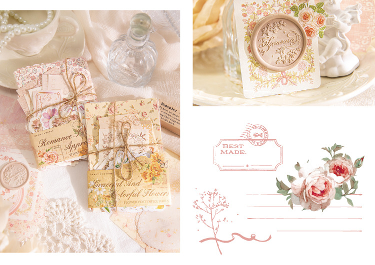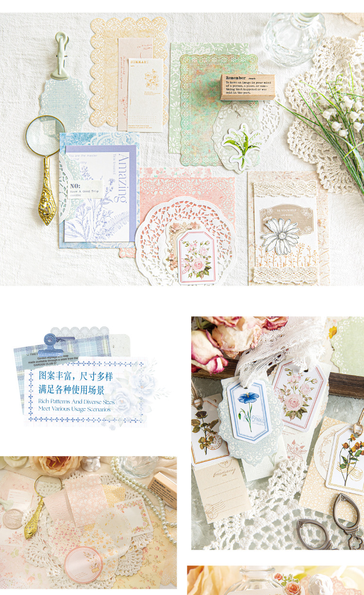Sugar Poetry Material mixto Material Material Paquete Huahua Post Office Series Encaje hueco Libro de mano Marco Papel de material de base