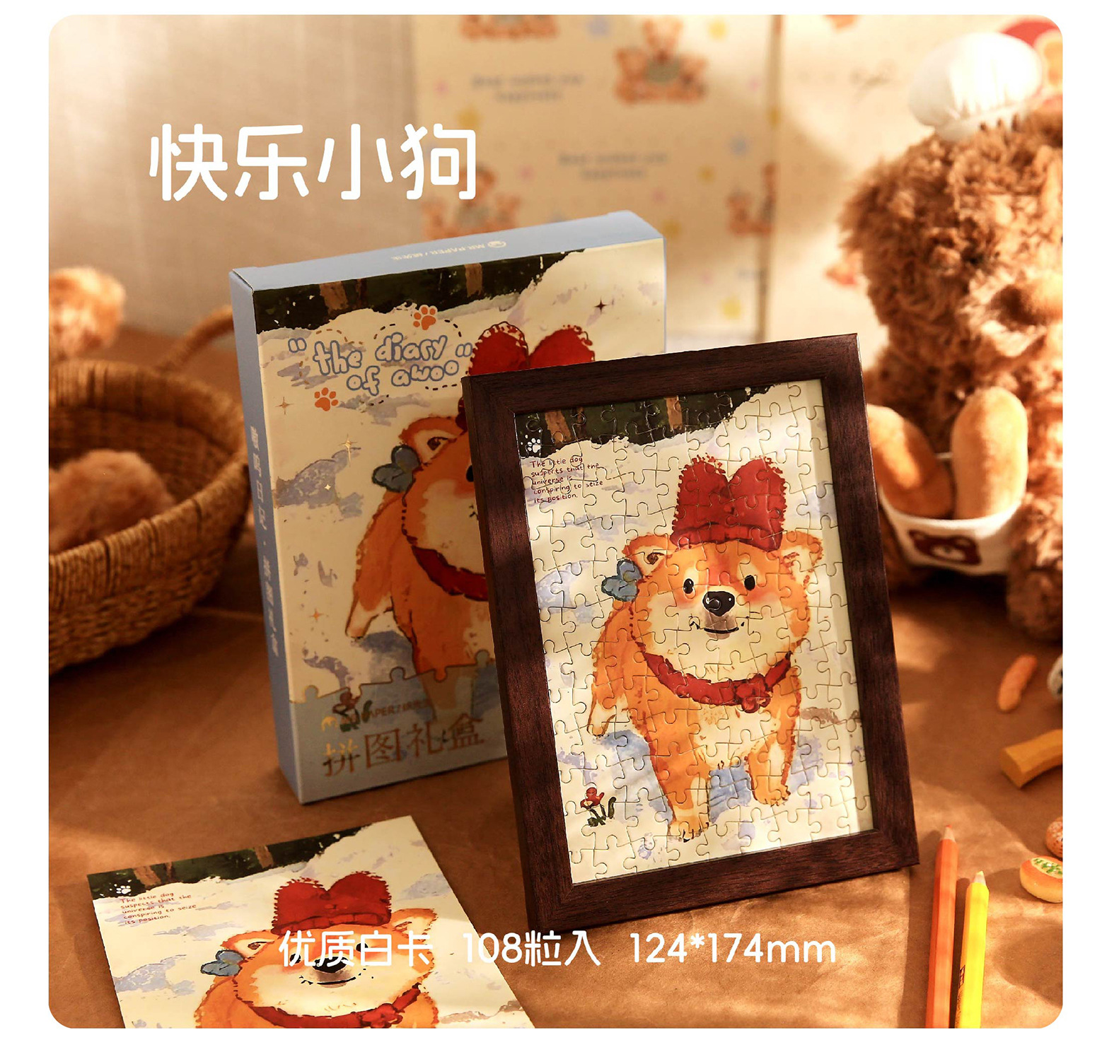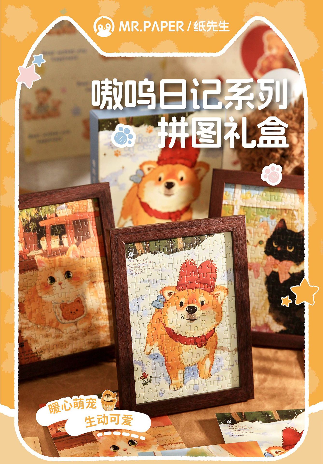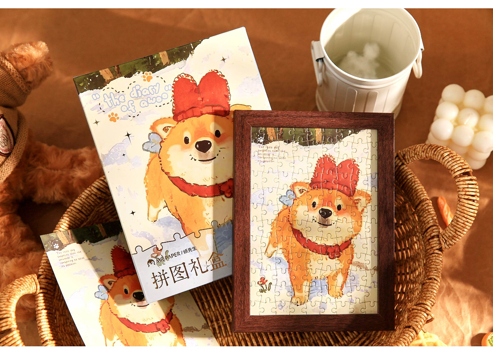 Mr. Paper Cute Cute Pet Puzzle Caja de regalo Ao Woo Diario Ilustración de dibujos animados original Marco de fotos Puzzle Decoración de escritorio