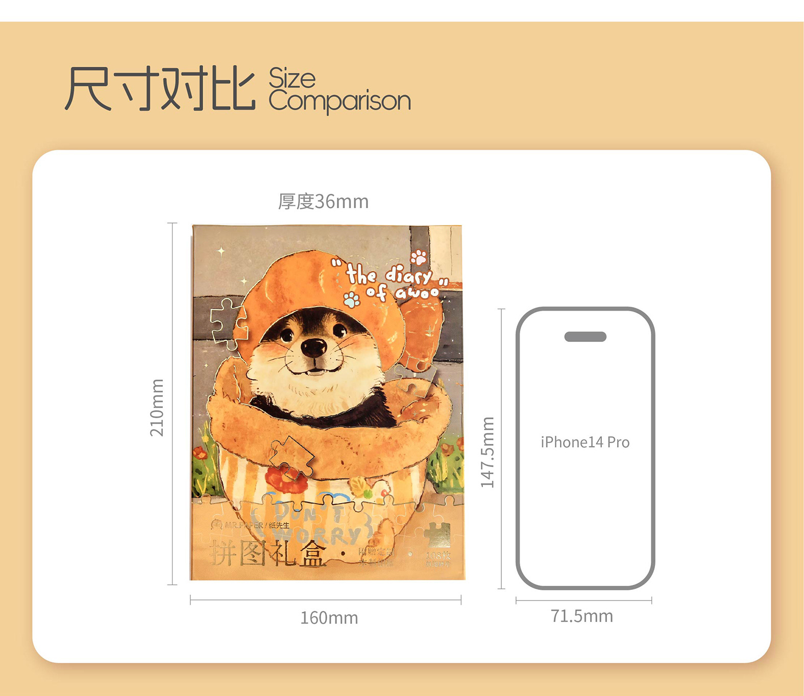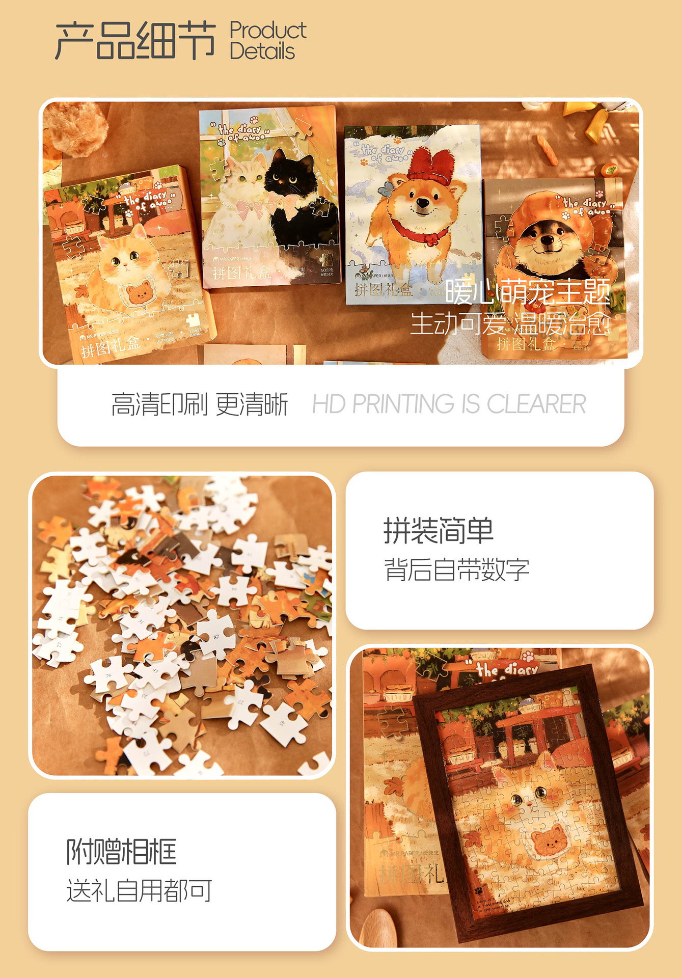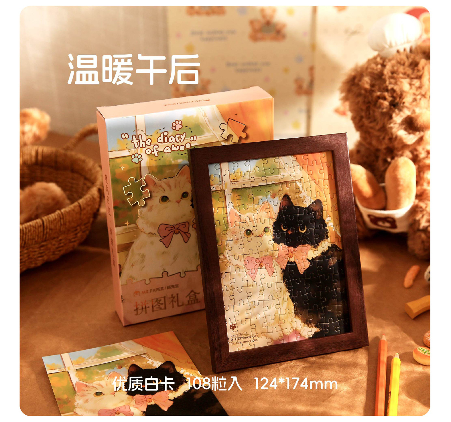 Mr. Paper Cute Cute Pet Puzzle Caja de regalo Ao Woo Diario Ilustración de dibujos animados original Marco de fotos Puzzle Decoración de escritorio