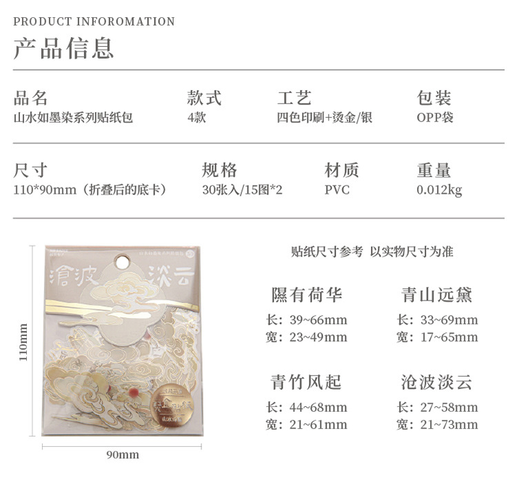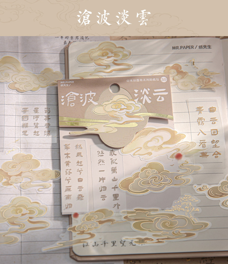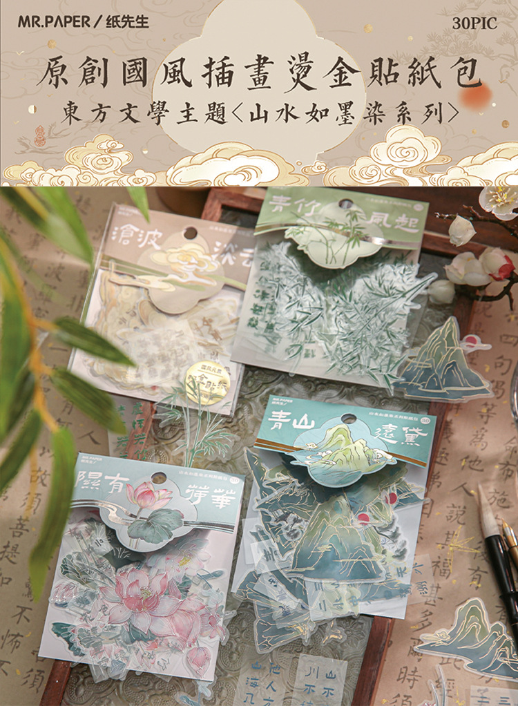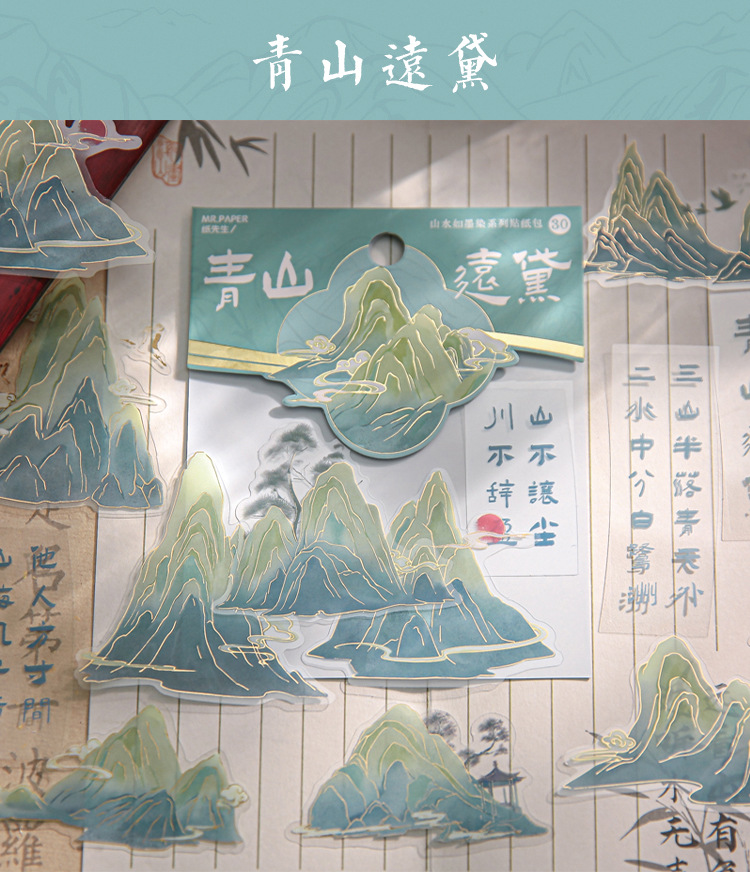 Mr. Paper gilding etiqueta paquete paisaje tinta teñido serie estilo nacional ilustración alto valor de color Diario material pegatinas 4
