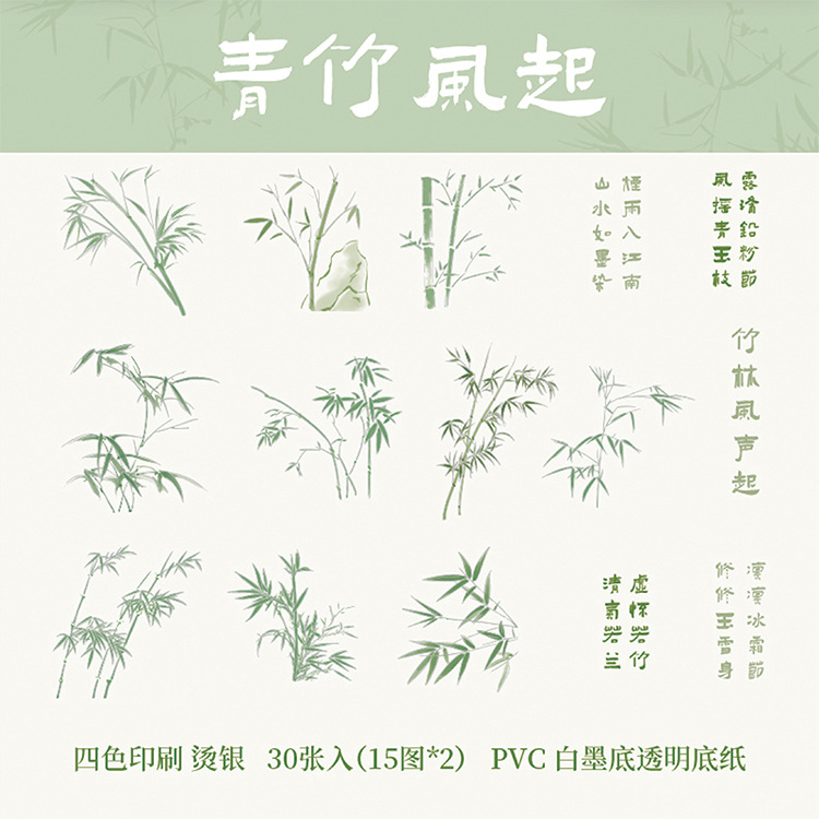 | Color | Viento de bambú verde,Yuandai Qingshan,Hay flores de loto,Nubes de luz |