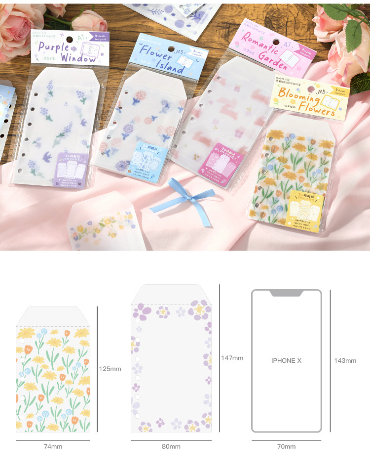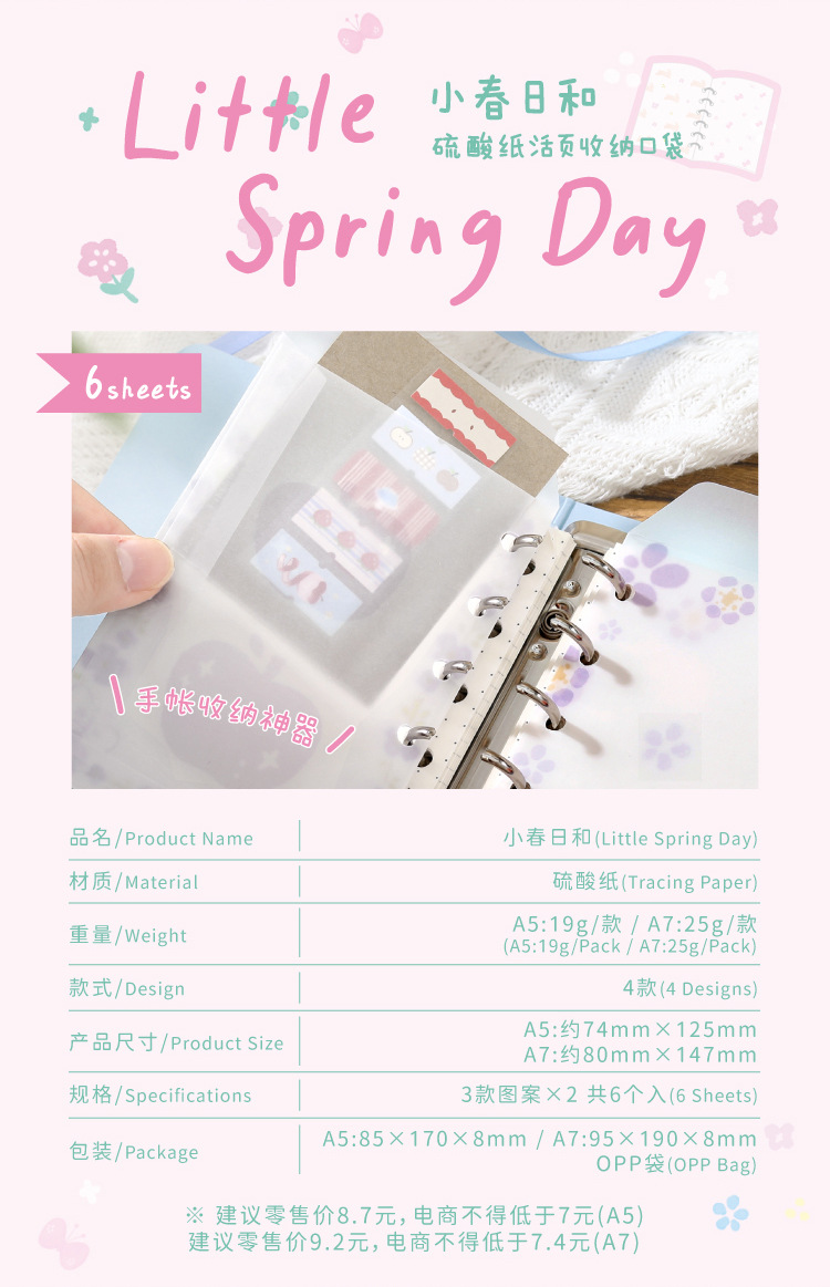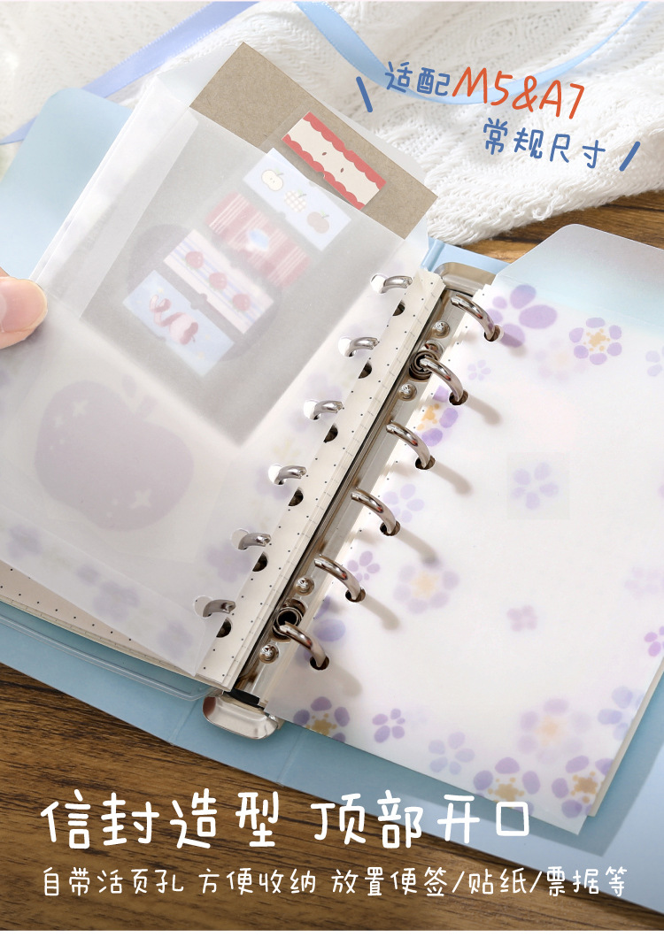 NOTE FOR Bolsillo de almacenamiento de hojas sueltas de papel de ácido sulfúrico Little Spring Day Series M5/A7 Bolsa de almacenamiento de sobres transparentes