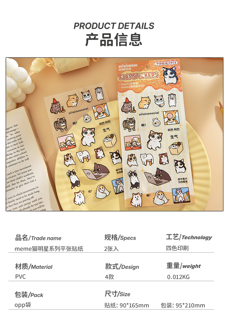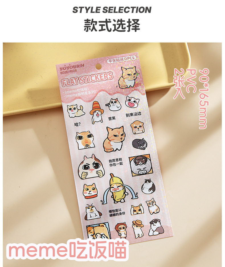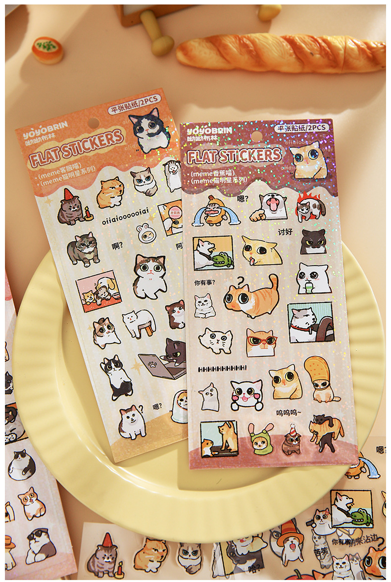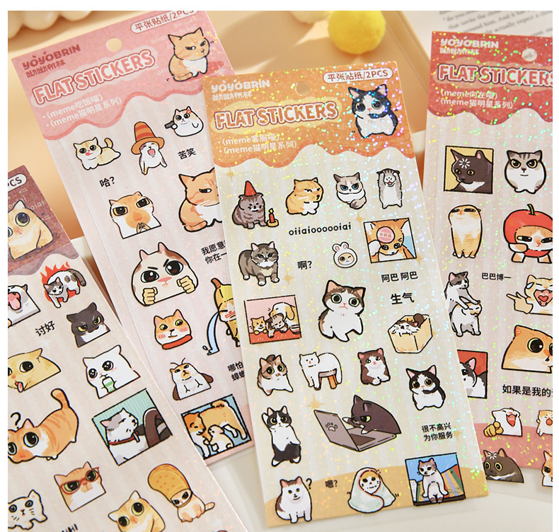 Youyou Brin Pegatinas planas meme Cat Star Fun Pegatinas creativas Paquete de emoji Pegatinas de decoración de gatitos