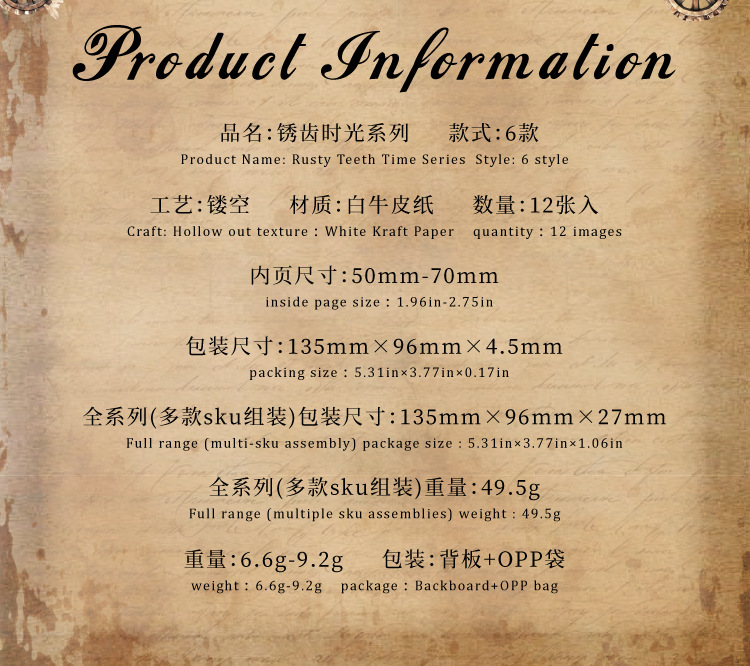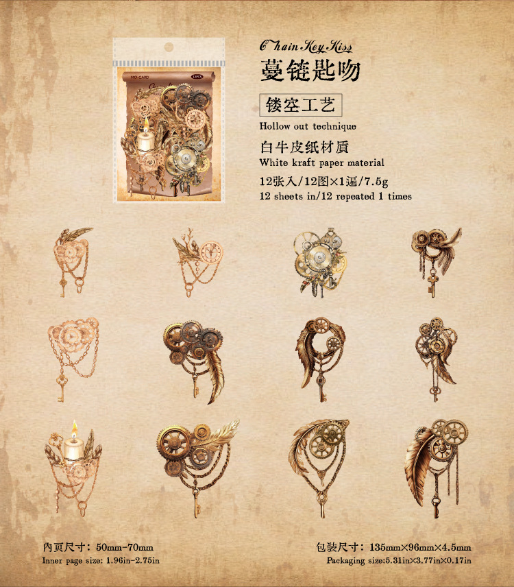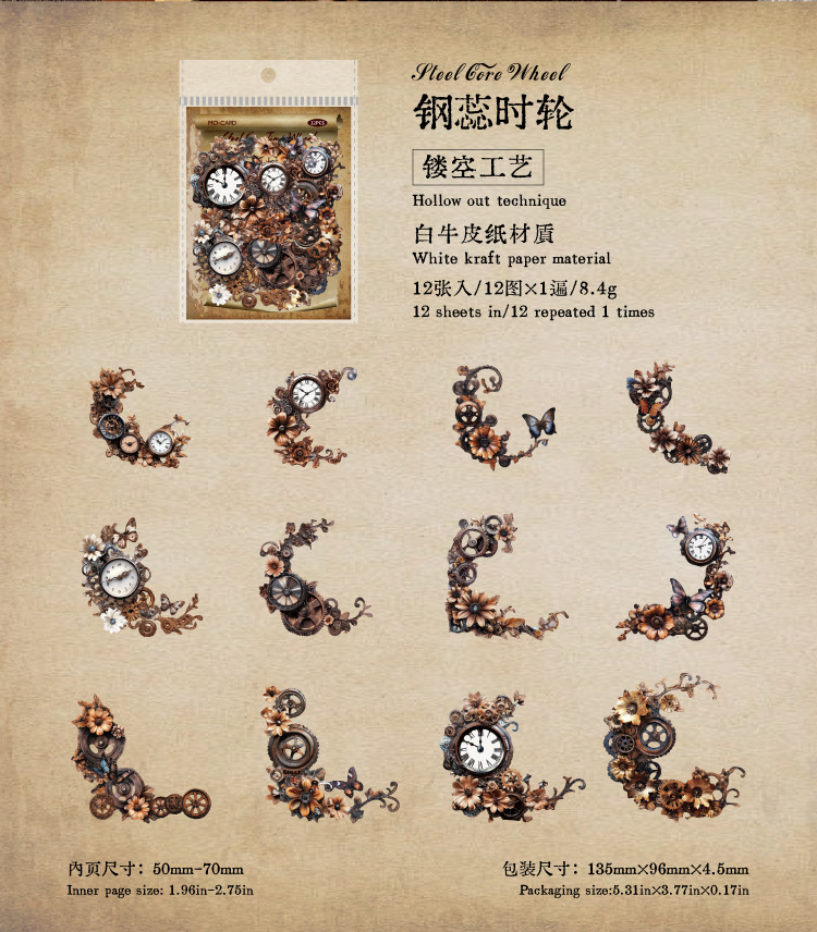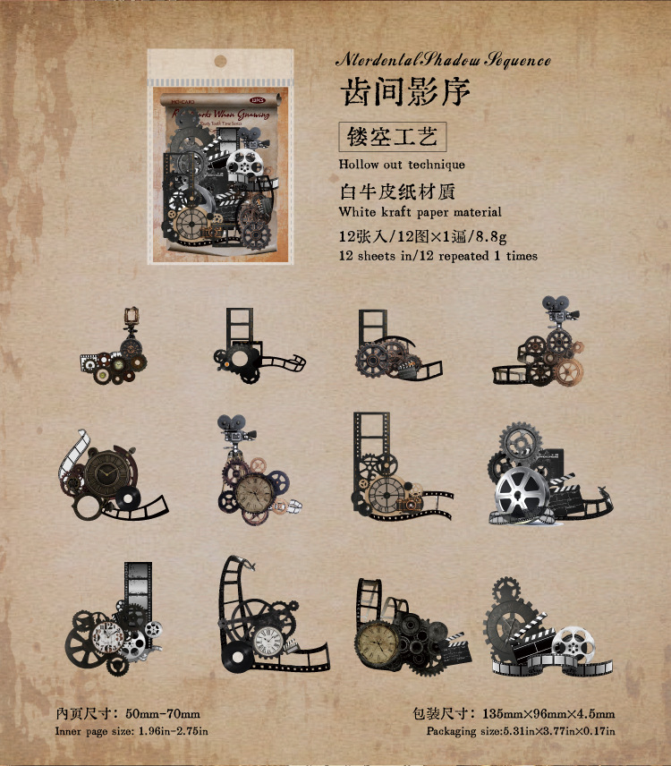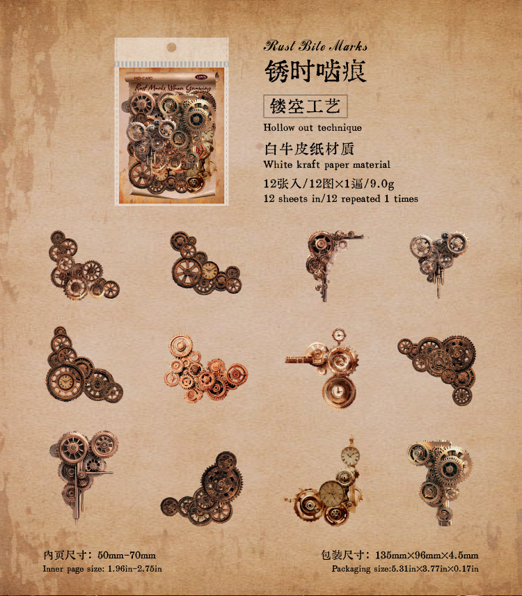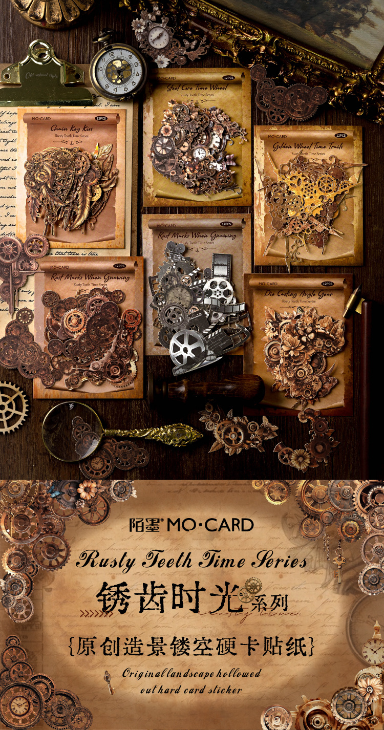 Mosmo paisajismo hueco tarjeta dura pegatina diente de óxido tiempo material retro transfronterizo cuenta manual decoración de bricolaje collage