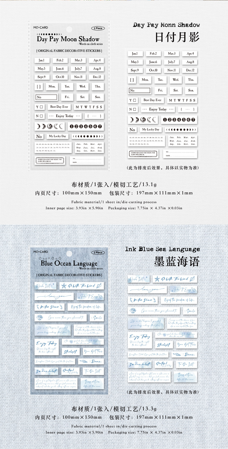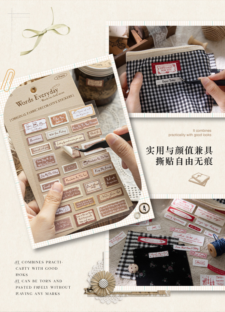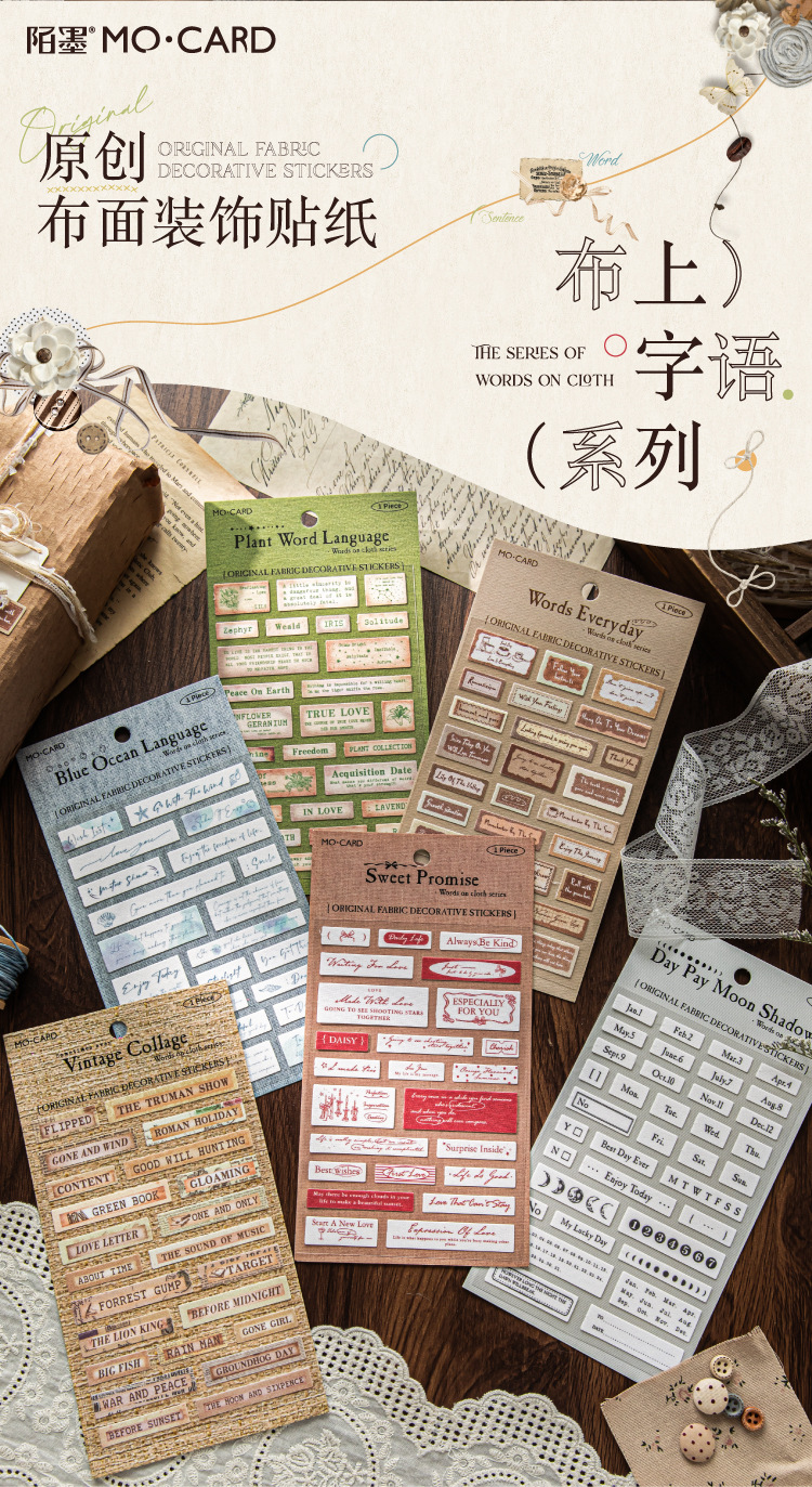 Pegatinas planas de tela Mo Mo Serie de palabras superior Pegatinas decorativas de estilo ins Pegatinas de material de cuenta manual Pegatinas planas