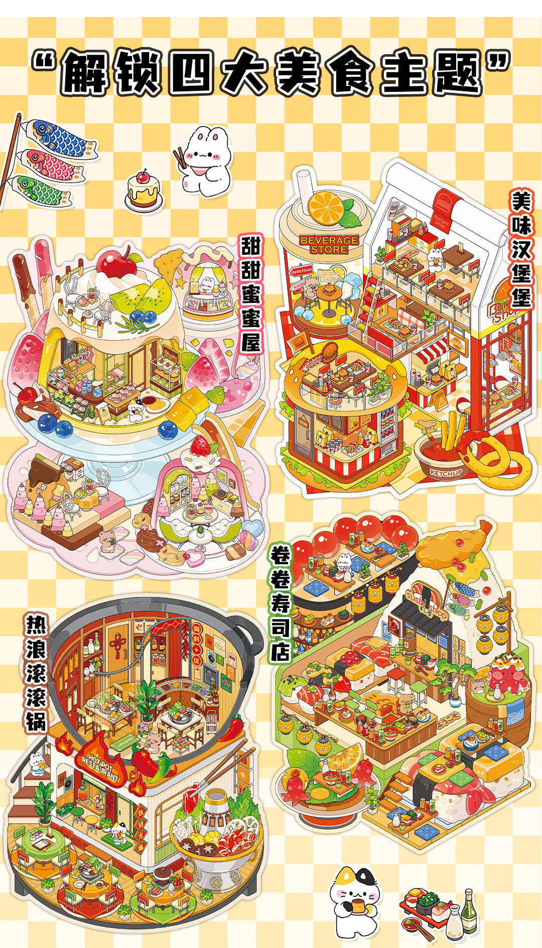 | Colores | Olla ondulante de ola de calor,Casa dulce,Deliciosa hamburguesa,Rollo de sushi |
