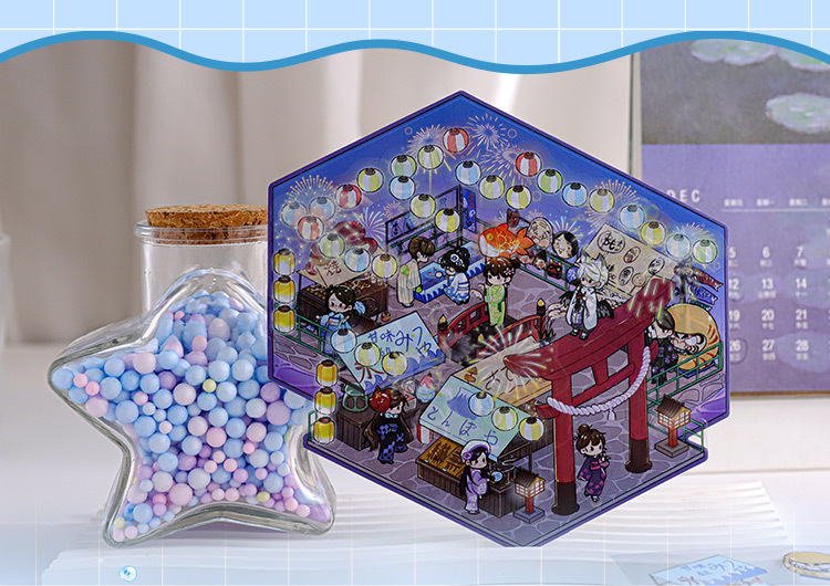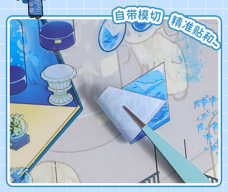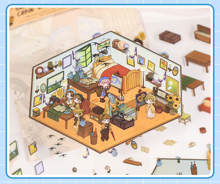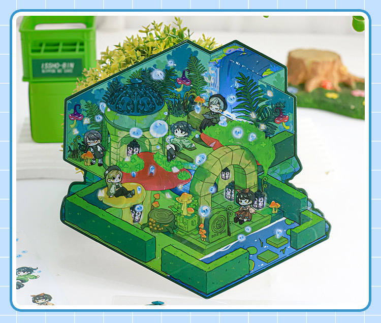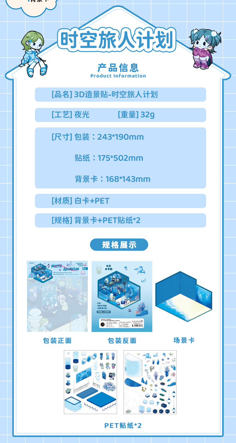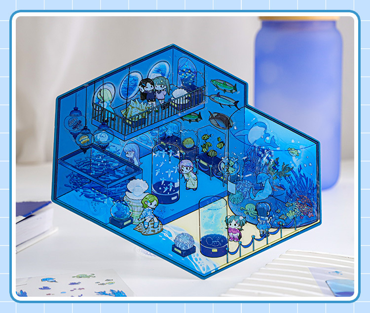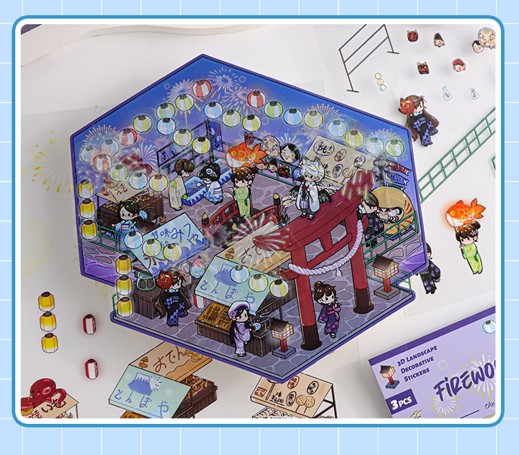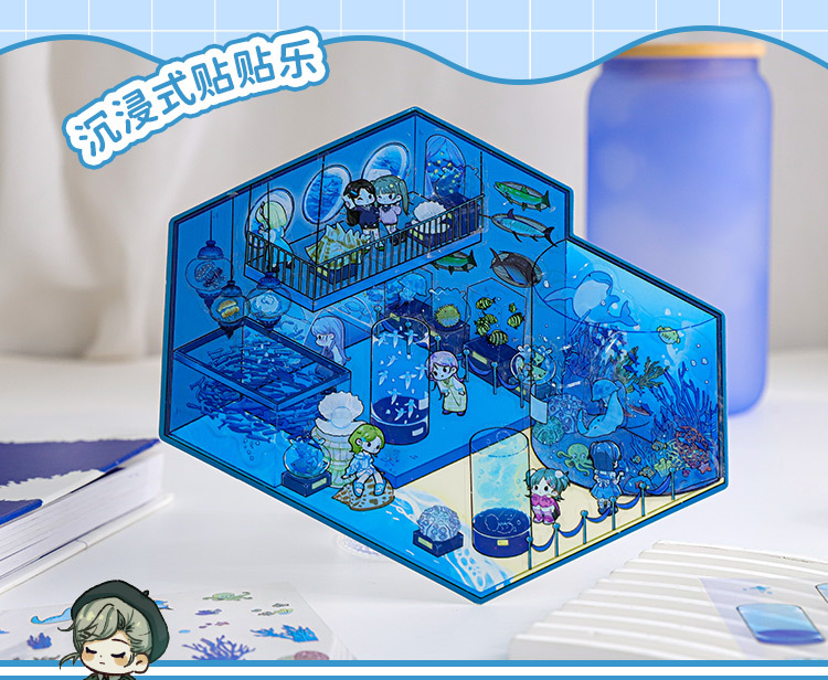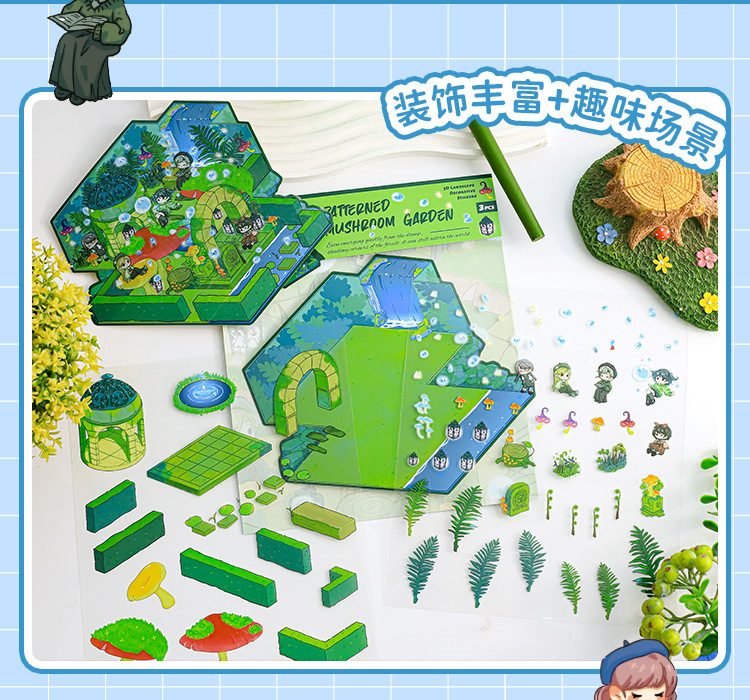 Pegatinas de paisajismo en 3D de Mu Ran: serie de viajeros de tiempo y espacio luminosos, pegatinas de escena en miniatura de cabina tridimensional divertida para estudiantes