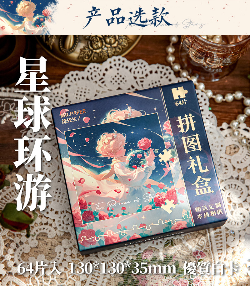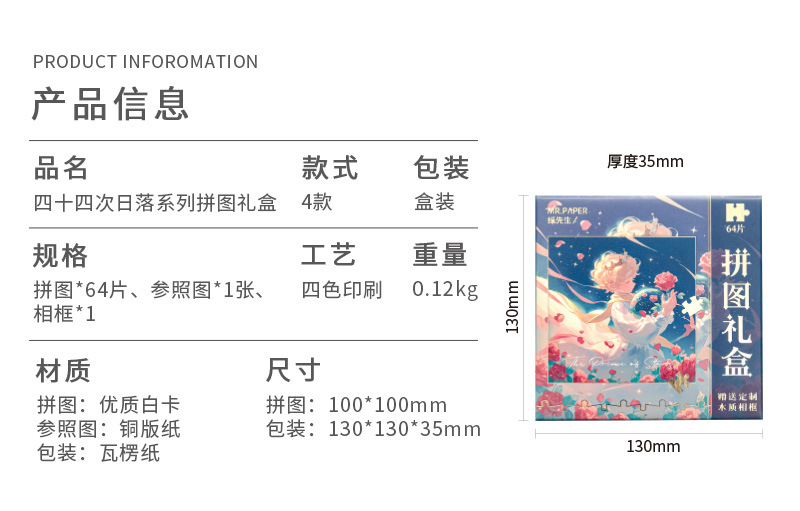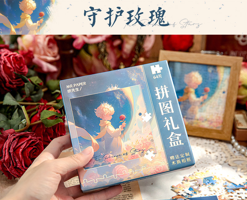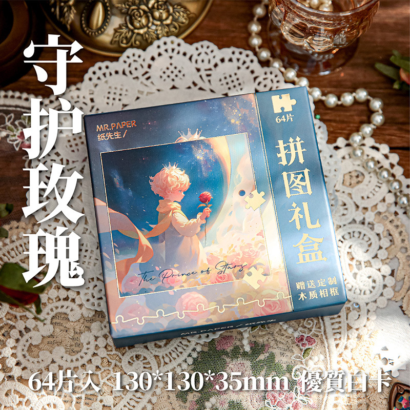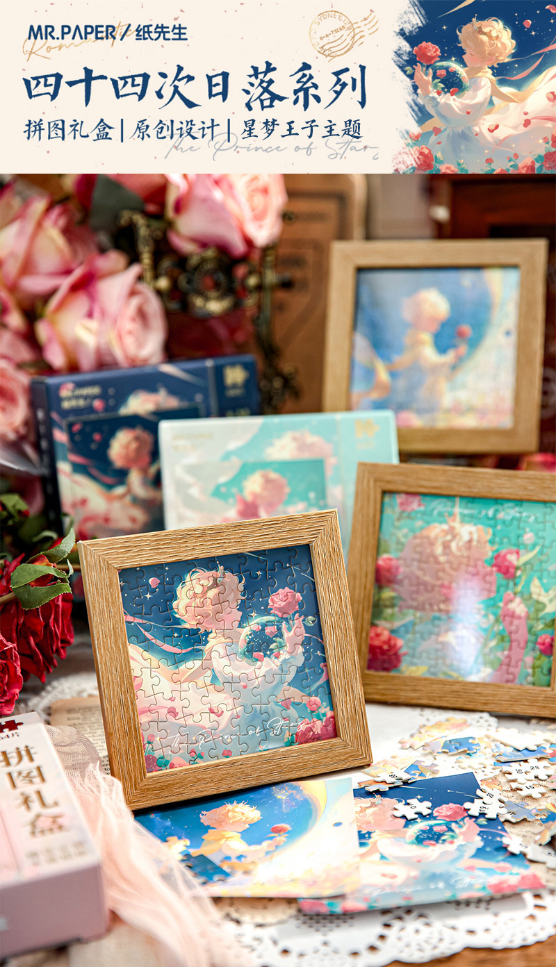 Mr. Paper romántico de cinco pulgadas caja de regalo de rompecabezas cuarenta y cuatro series de puesta de sol princes rosas decoraciones rompecabezas de mesa