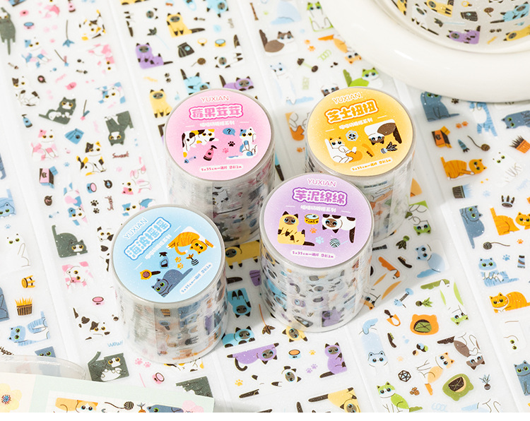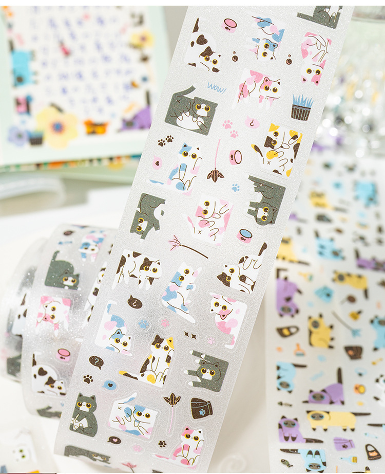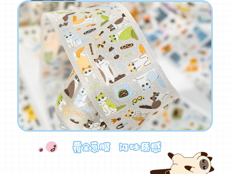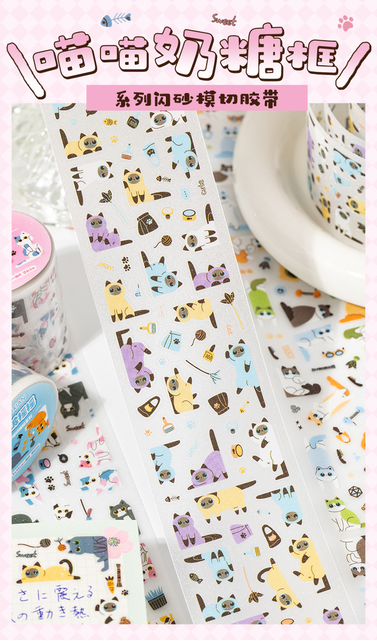 Cinta de troquelado de arena intermitente para pet pet pet miau marco de caramelo lindo patrón de estilo bolso de mano decoración de bricolaje collage de cartas