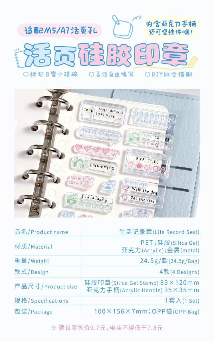 NOTE FOR Sello de silicona de hojas sueltas Capítulo de registro de vida Nuevo estudiante Material de cuenta creativa Sello básico