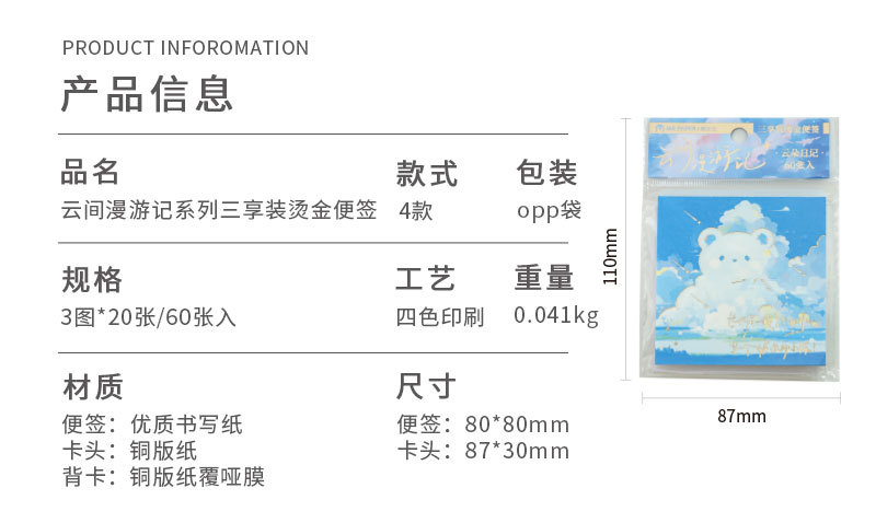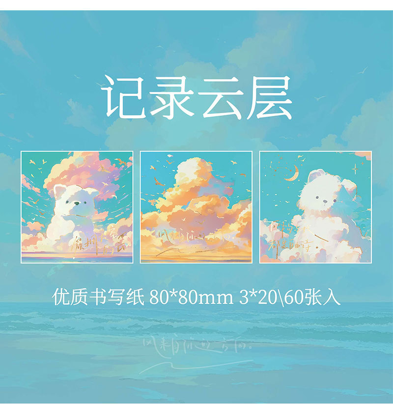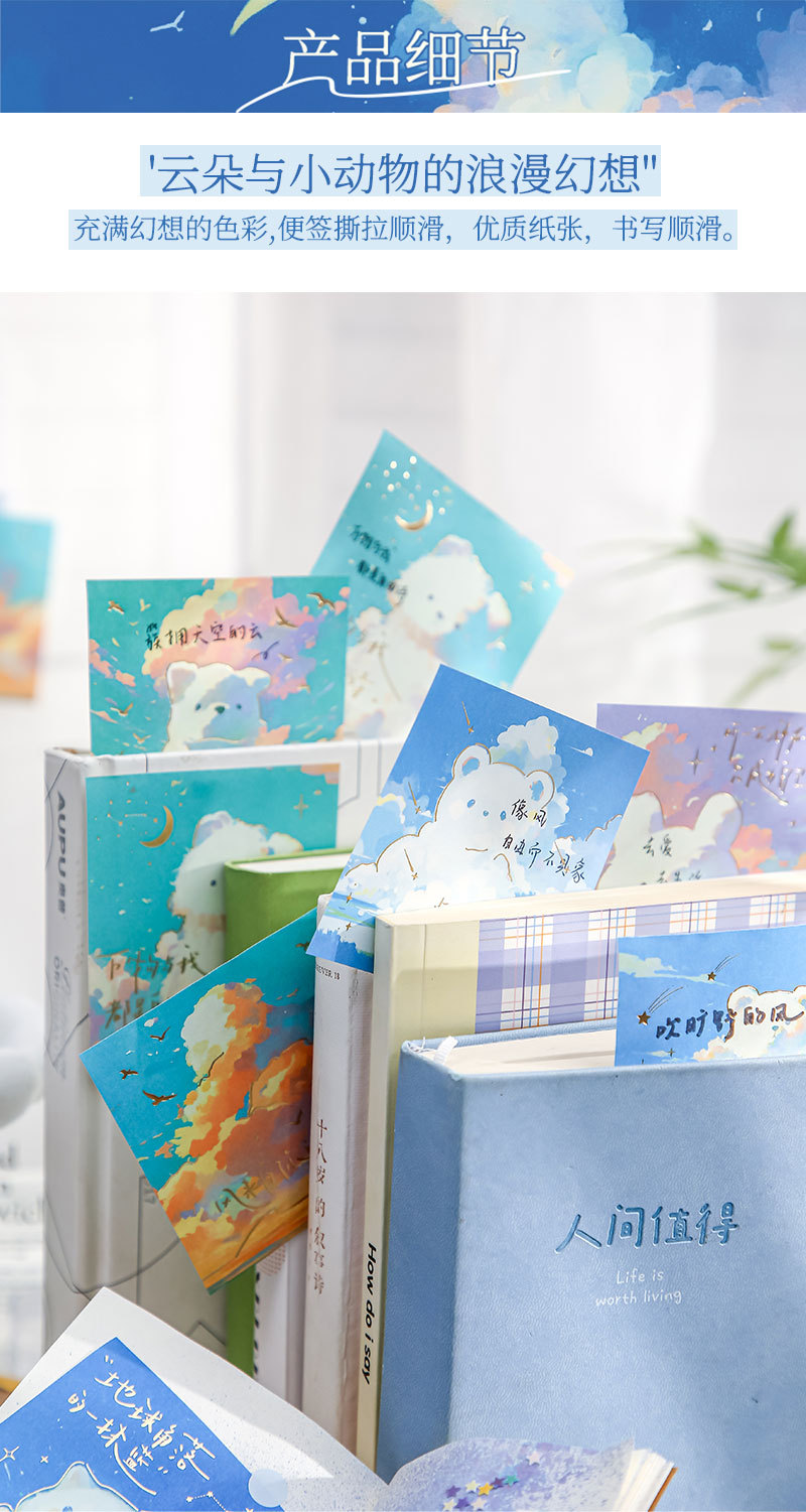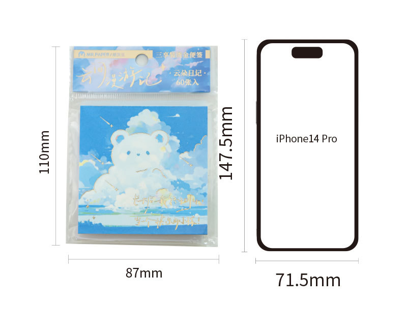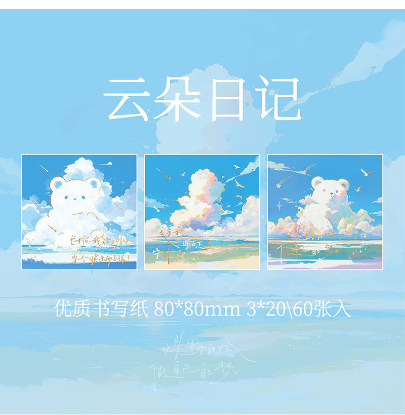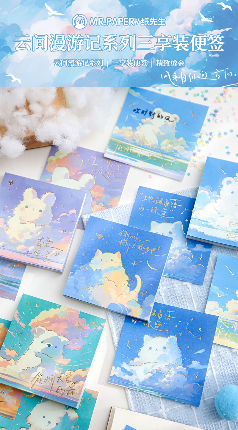Papel Sr. Tres paquetes de notas de estampado de oro completo de la serie de nubes de roaming blues mensaje tema de notas
