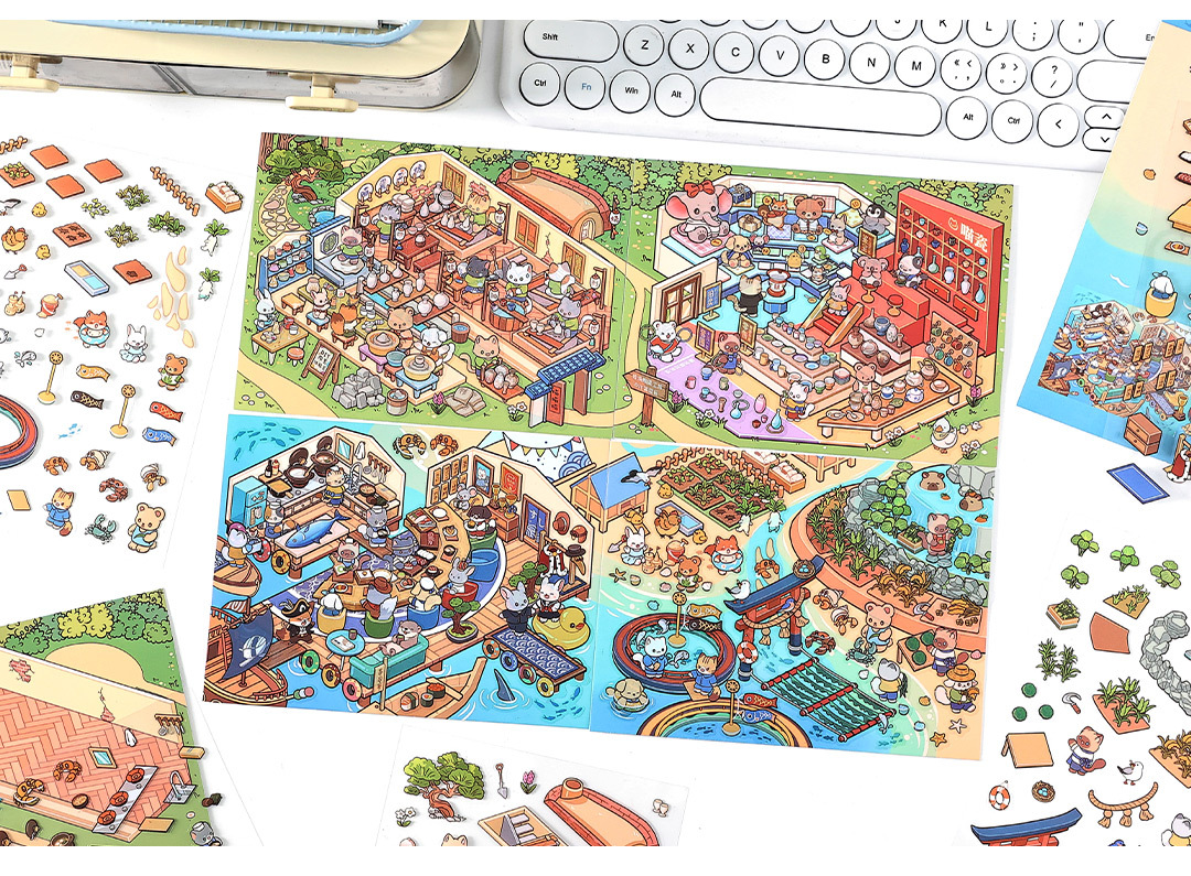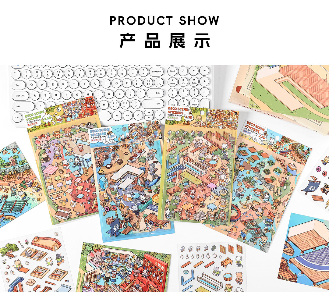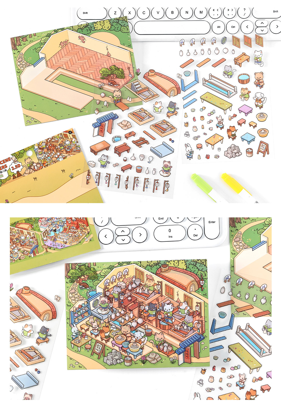 Mo Yan Infeel.Me pegatinas paisajísticas hoy en día en el octavo estereoscópico miniaturizado pegatinas interesantes para estudiantes