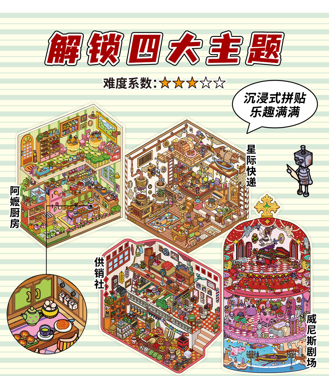 | Colores | Entrega interestelar,Cooperativa de suministro y comercialización,Teatro de Venecia,Cocina de la abuela |