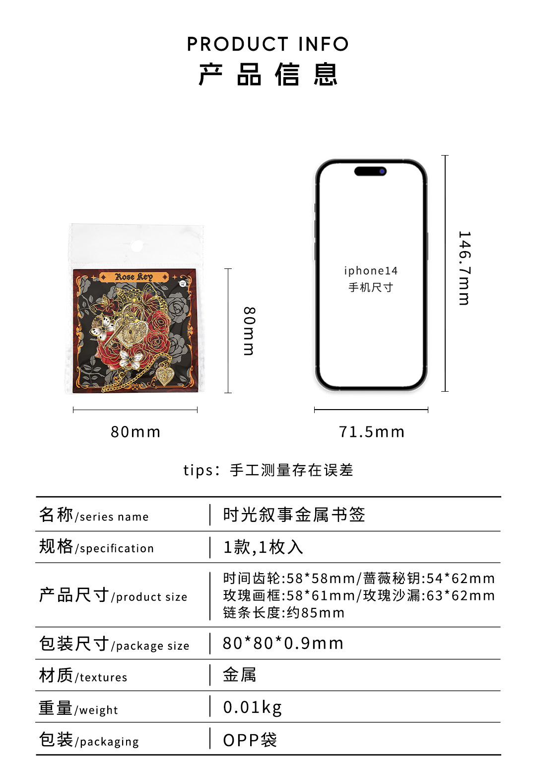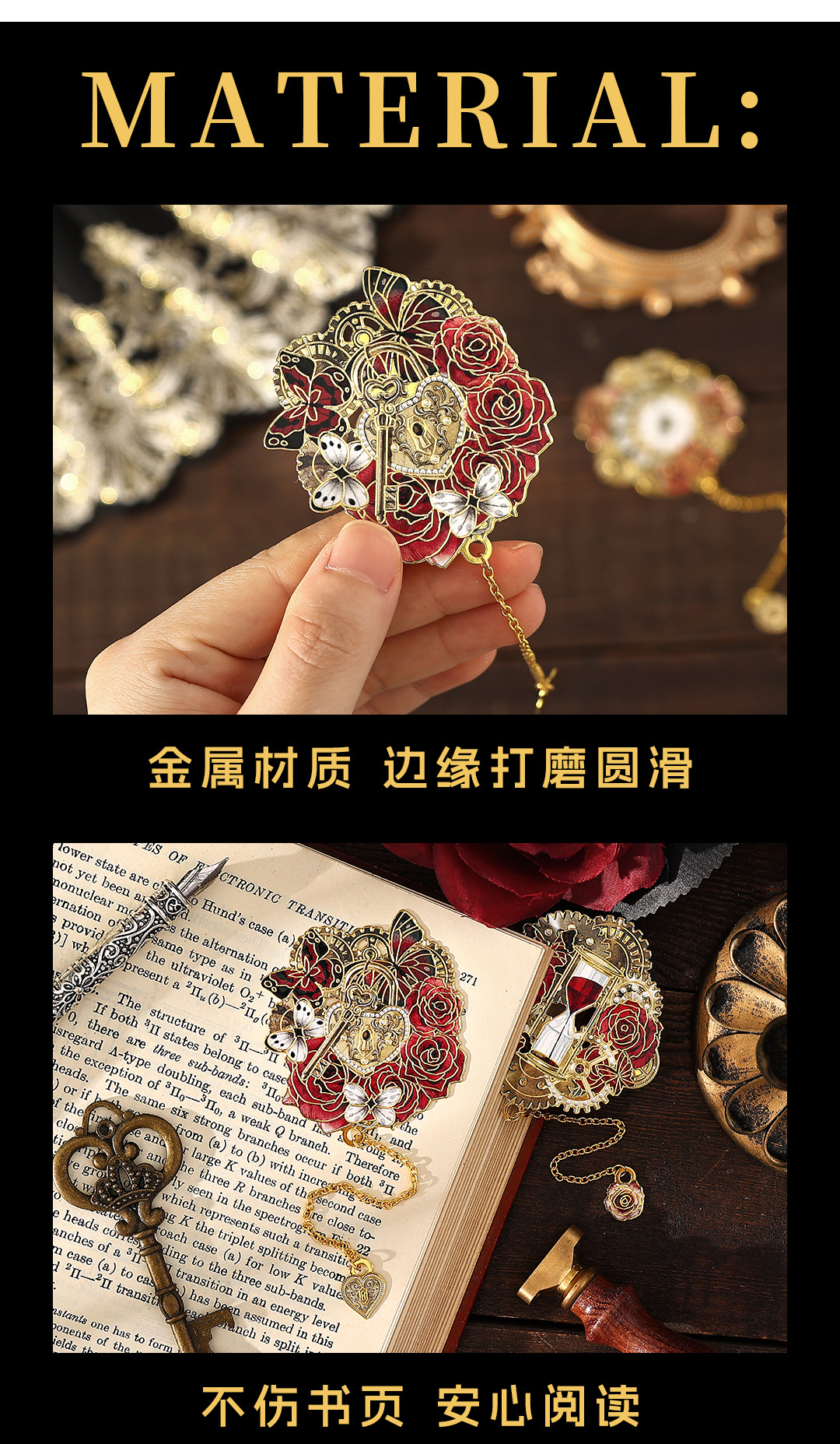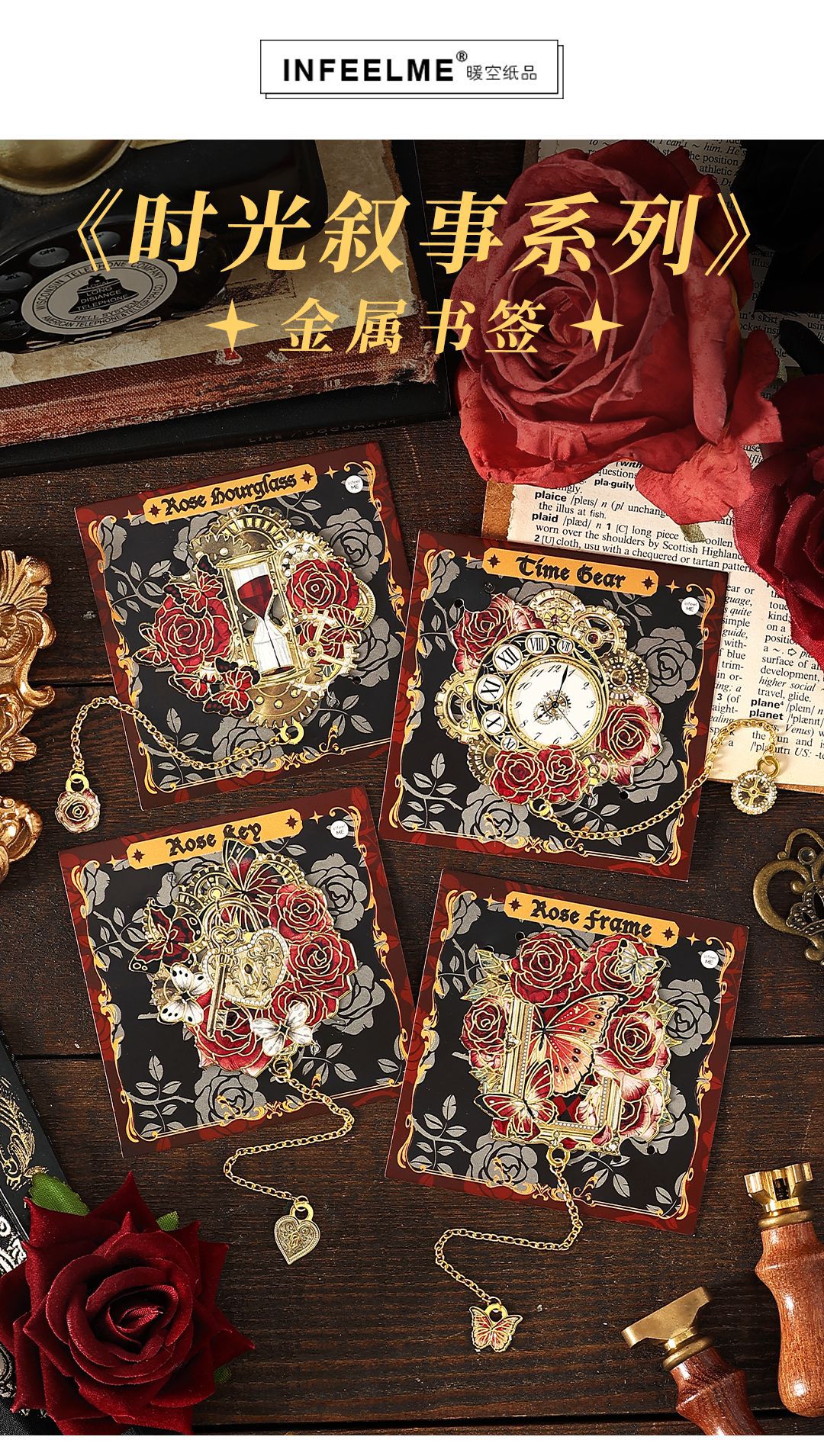 Infeel.me marcador de metal, narración de tiempo, reloj original, marcador de tema de rosa, marcador de lectura de estudiante