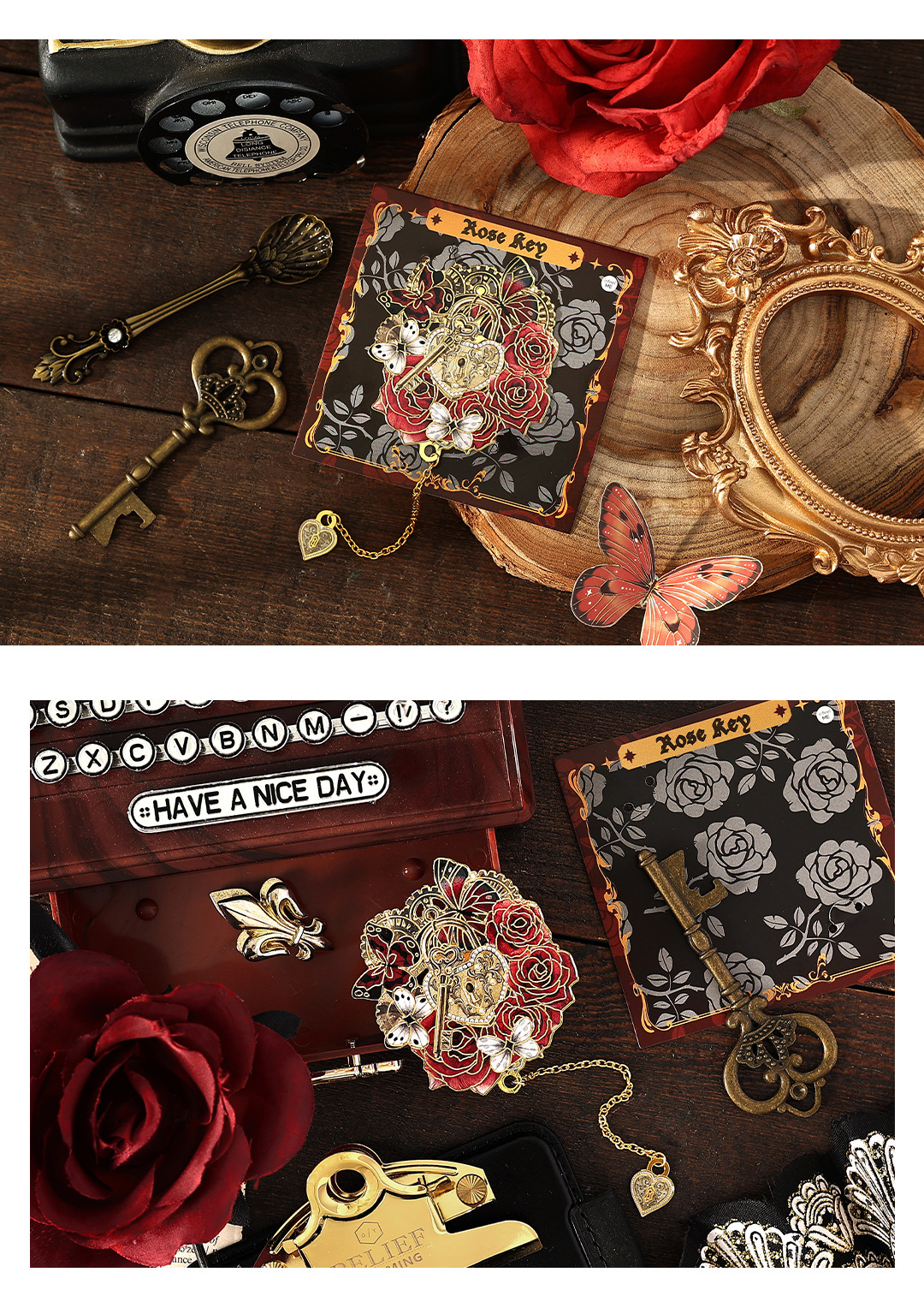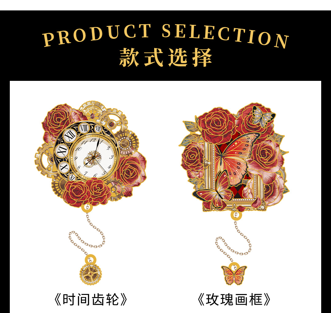 | Colores | Llave de rosa,Engranaje de tiempo,Reloj de arena rosa,Marco de rosa |