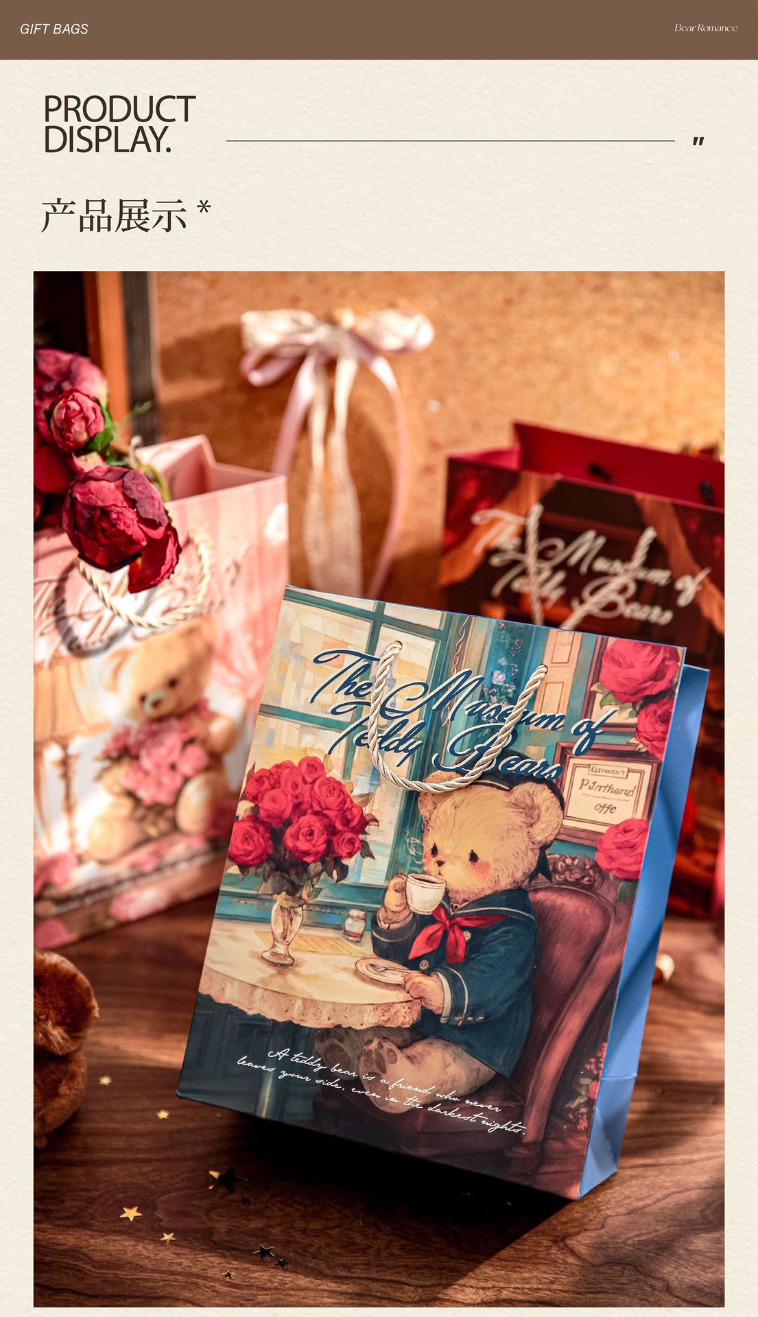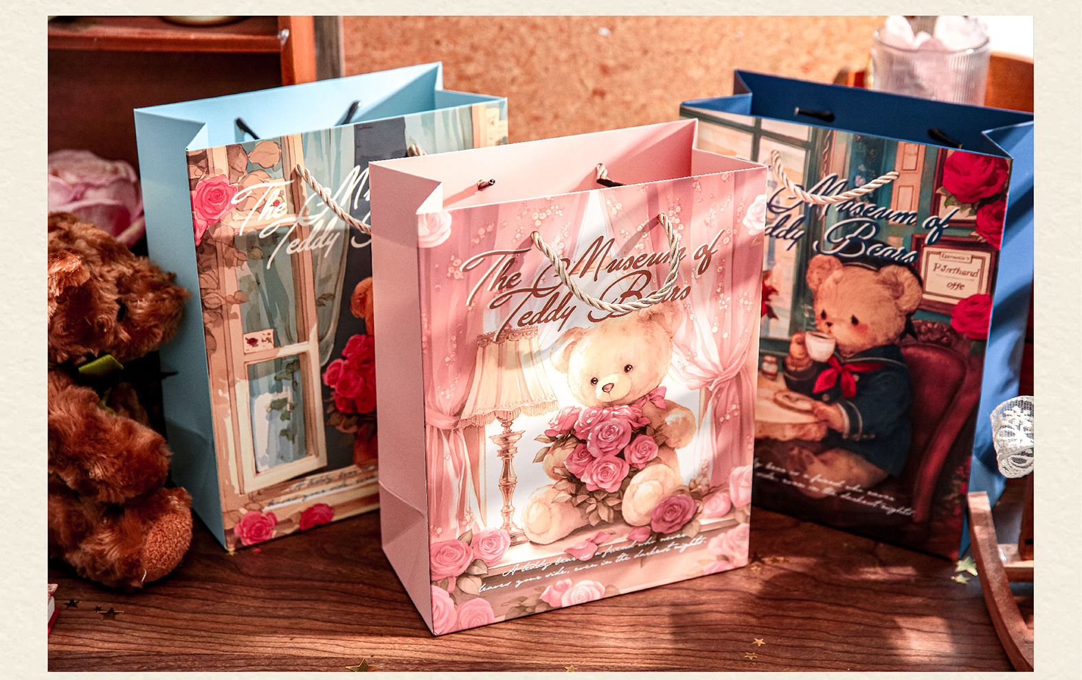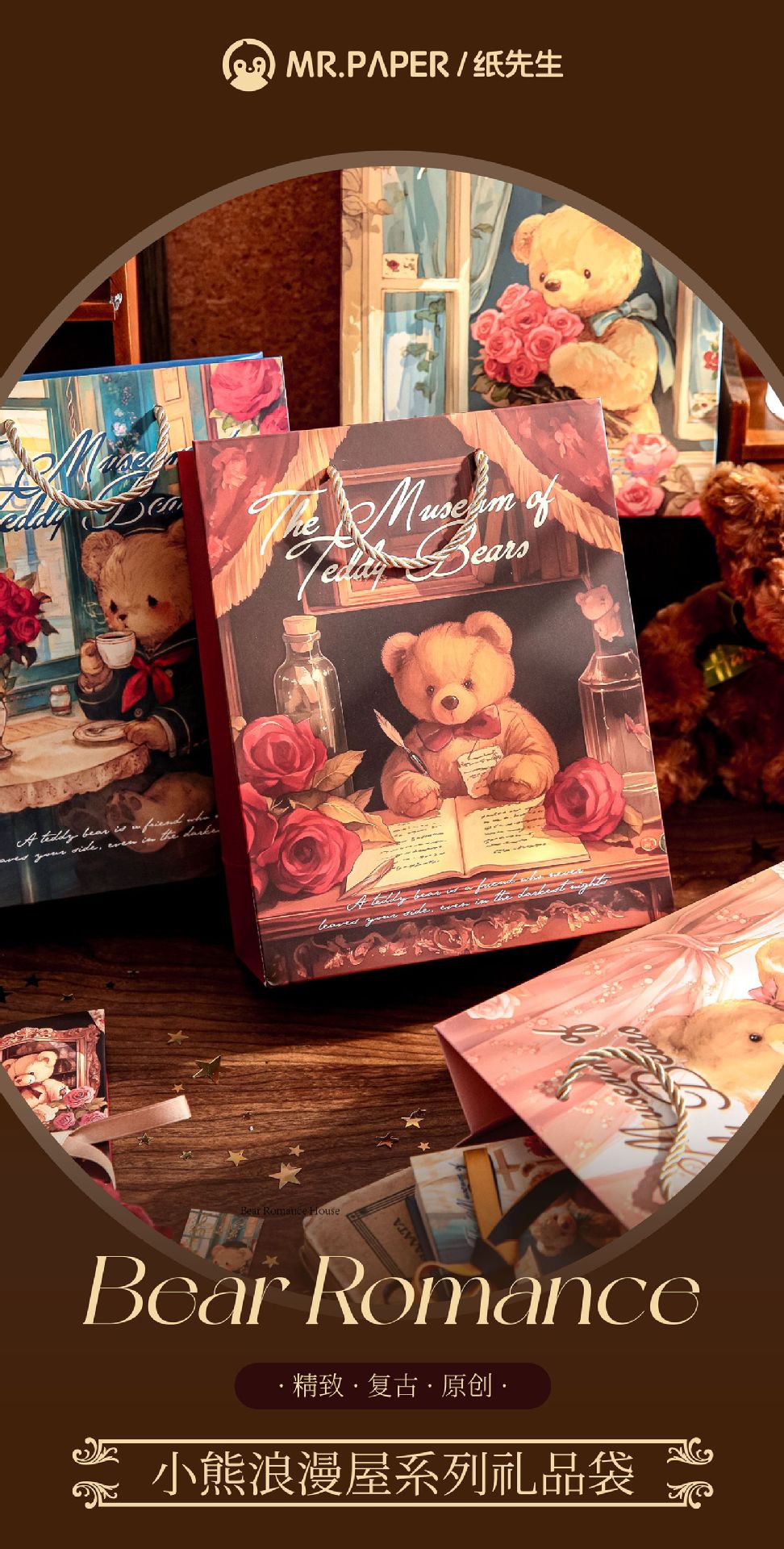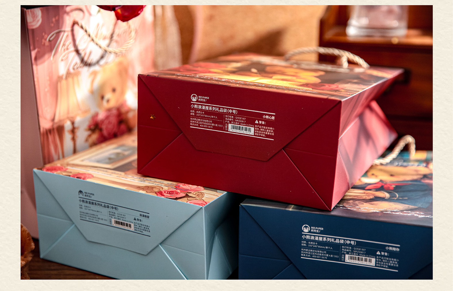 Mr. Paper Gift Bag Bear Romantic House Series Nuevo bolso de almacenamiento de embalaje de regalo de tema romántico