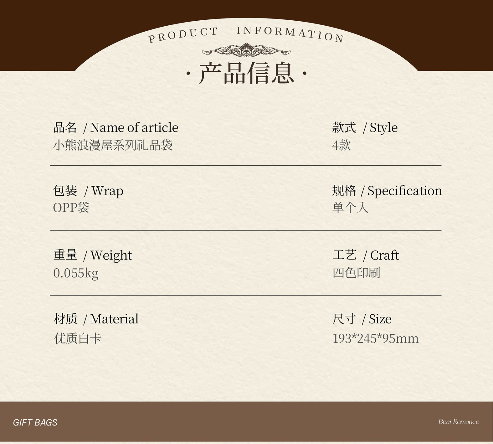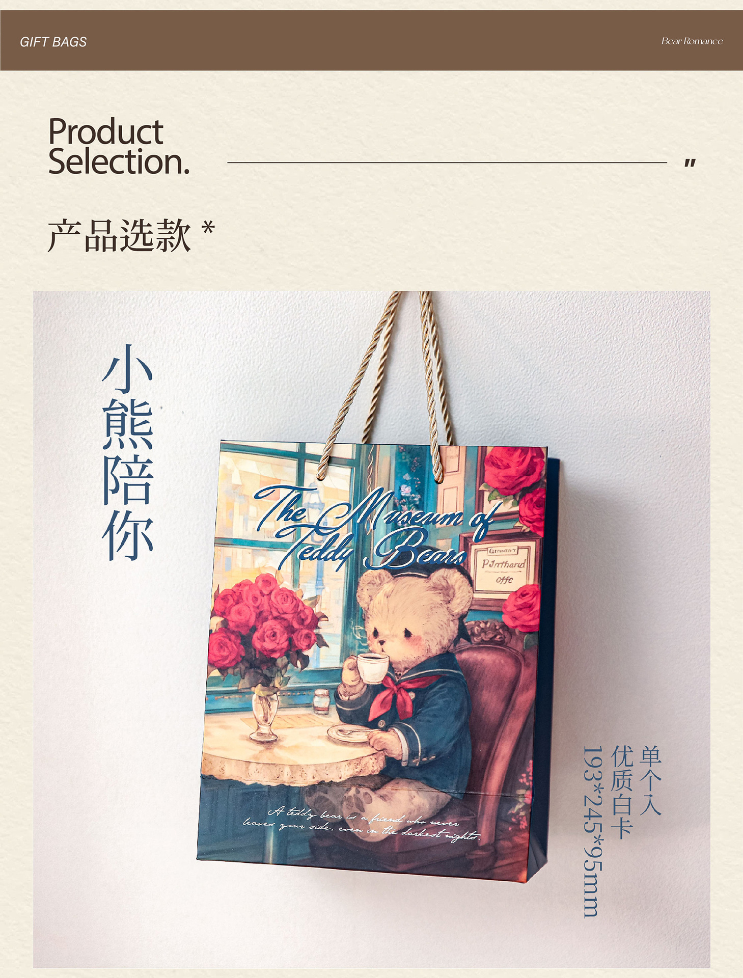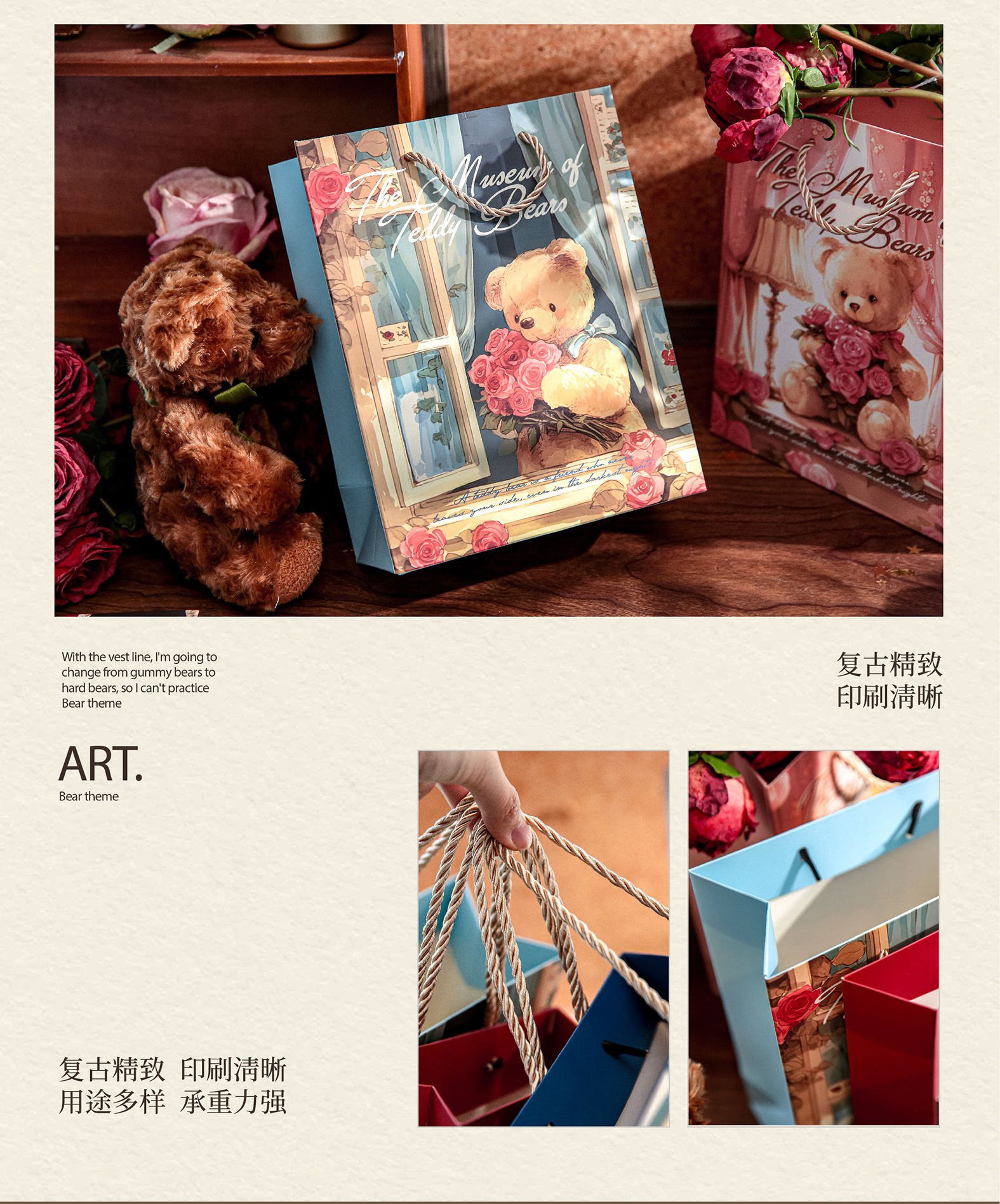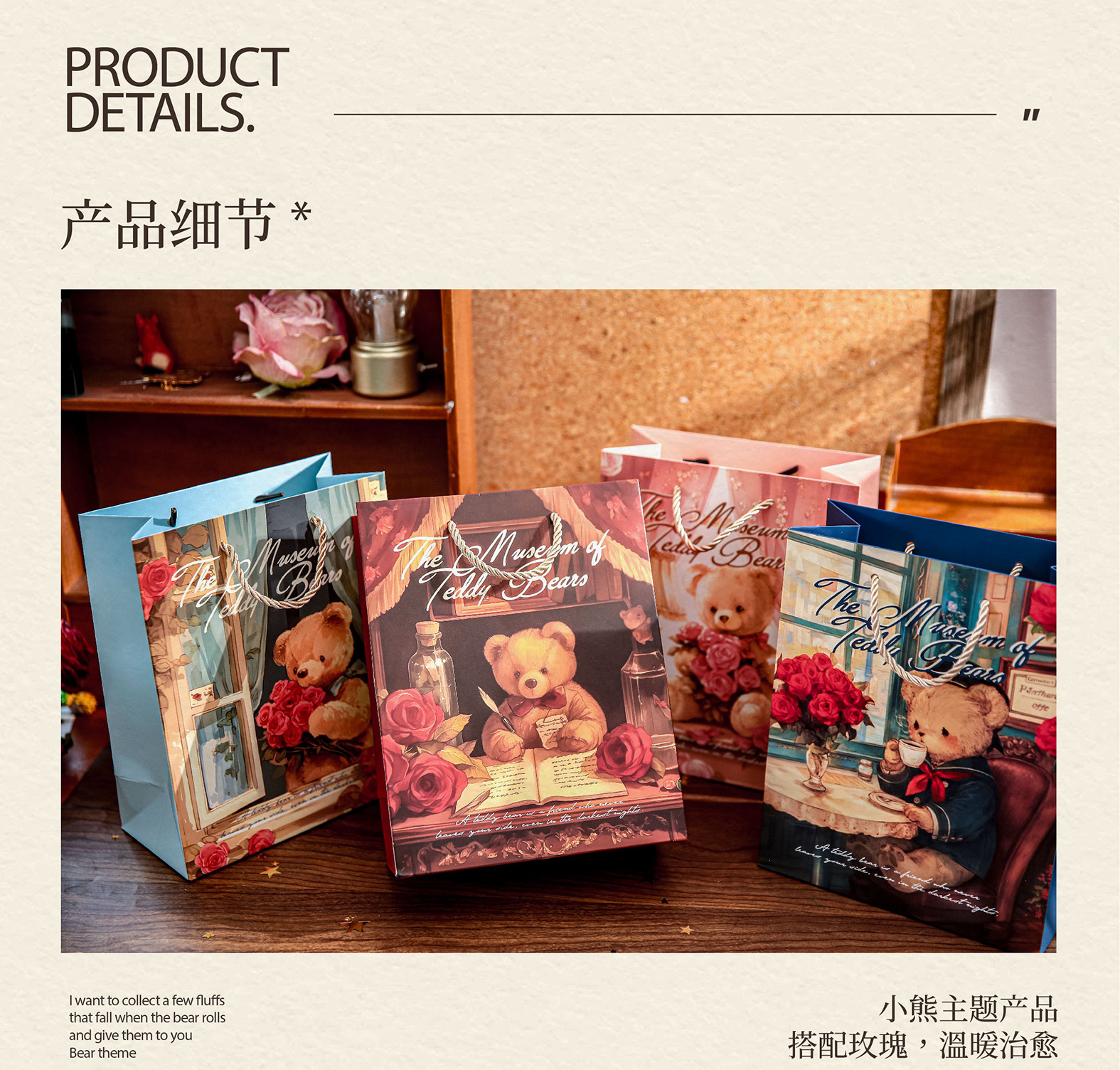 Mr. Paper Gift Bag Bear Romantic House Series Nuevo bolso de almacenamiento de embalaje de regalo de tema romántico