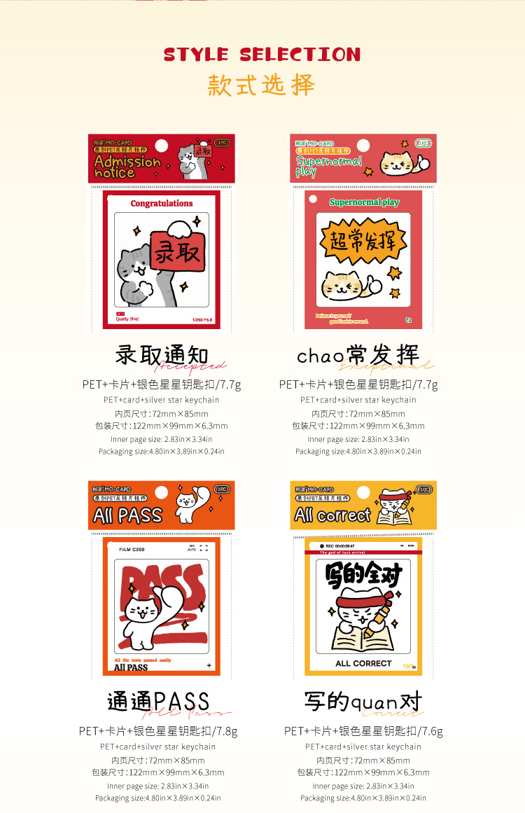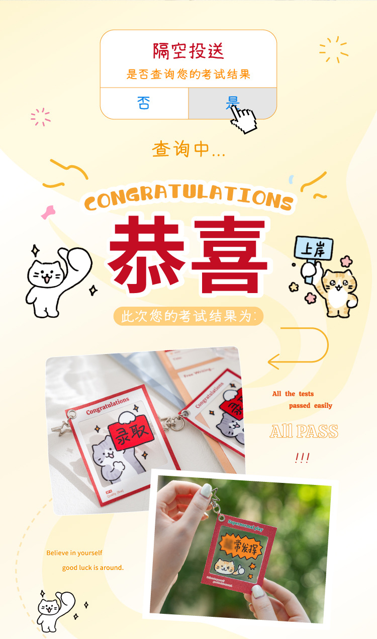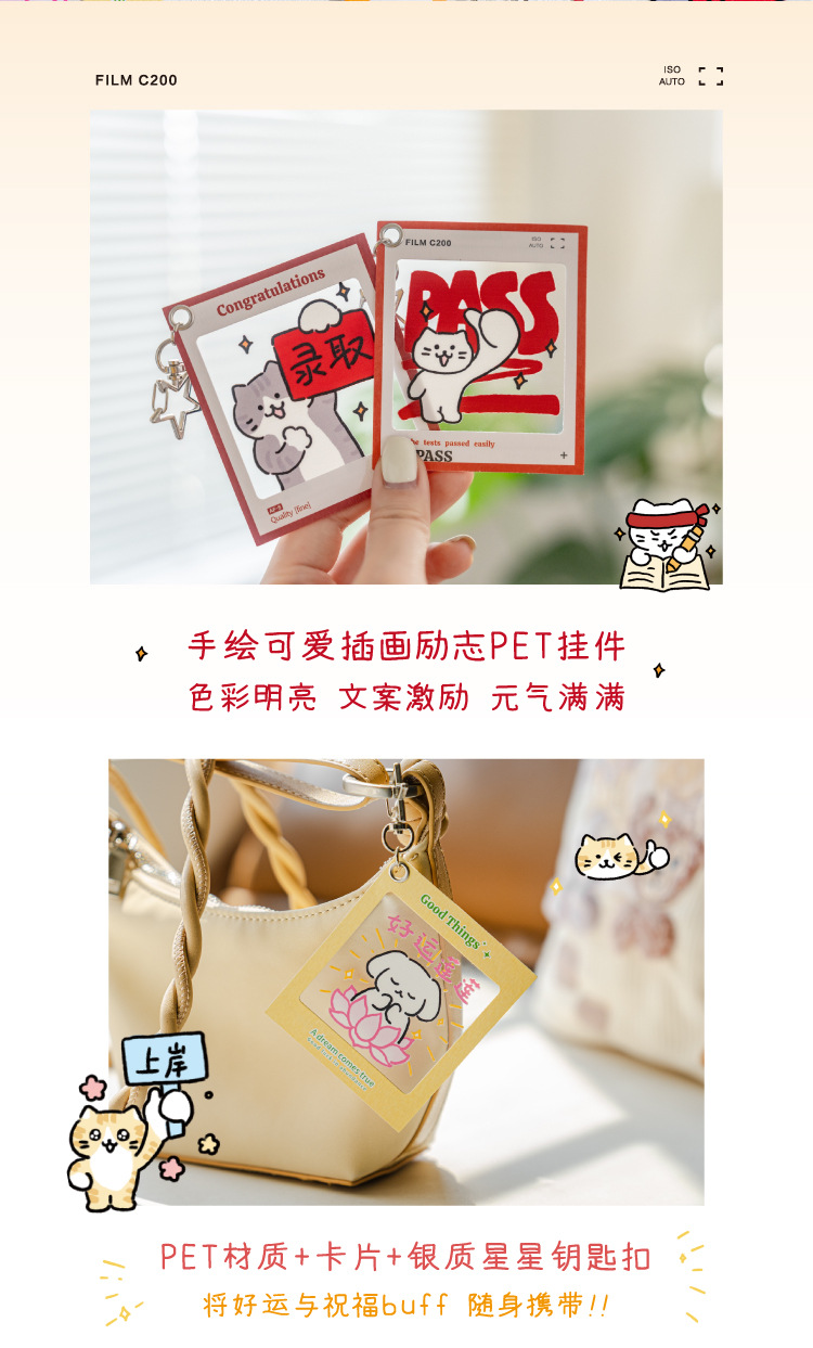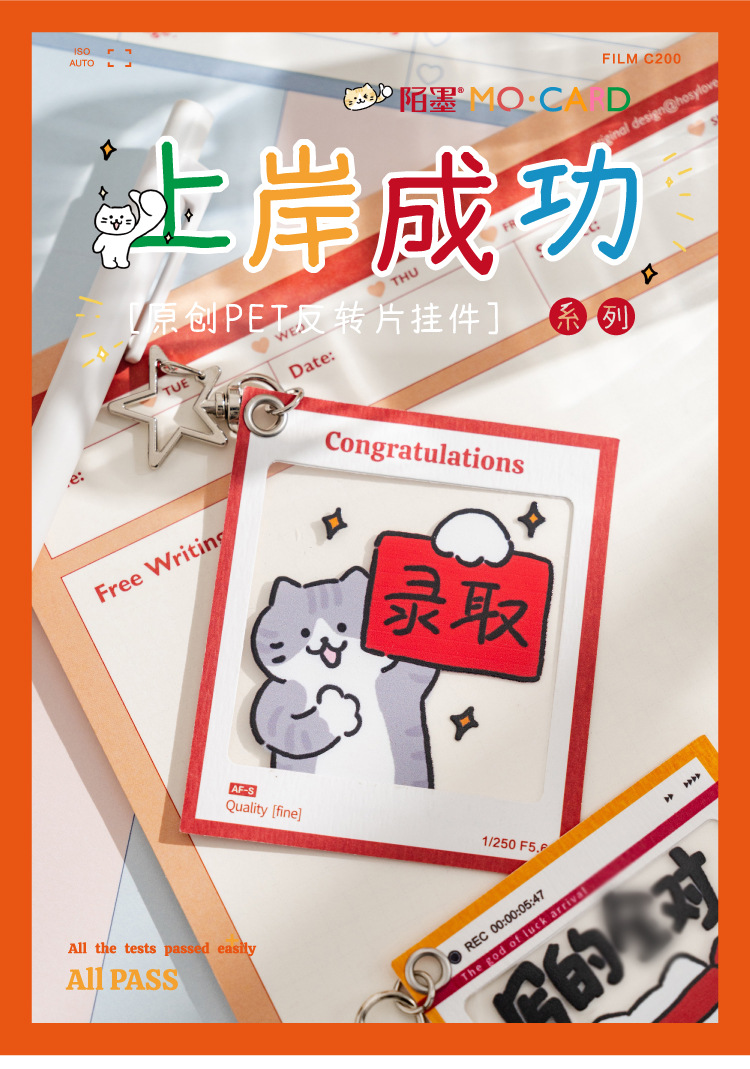 El colgante de película de inversión de Mo Mo PET aterrizó con éxito, el texto de estilo nacional, el examen de ingreso a la universidad para estudiantes, el colgante de decoración de mochila inspiradora