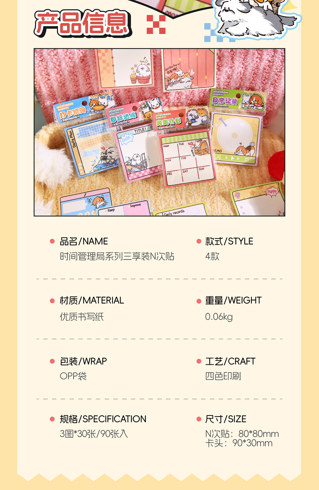 Yoyo Brin Three Enjoy N Tie Bureau Oficina de tiempo Dibujos animados Animal Estudiante Post-it Notas de oficina