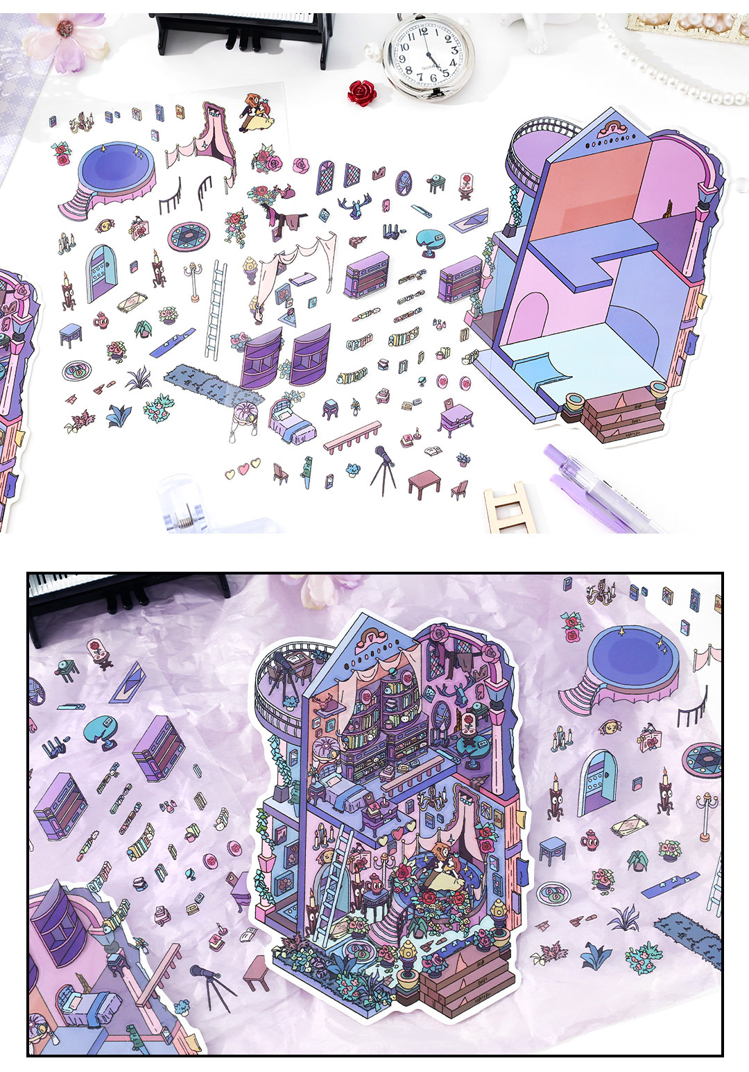 Pegatinas de paisajismo Infeel.Me2.5D Mi cabaña noveno paquete de pegatinas de decoración de escena de bricolaje