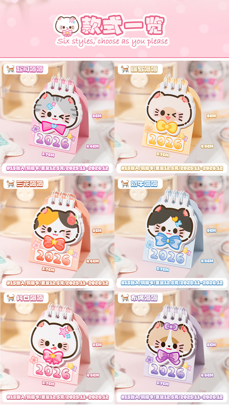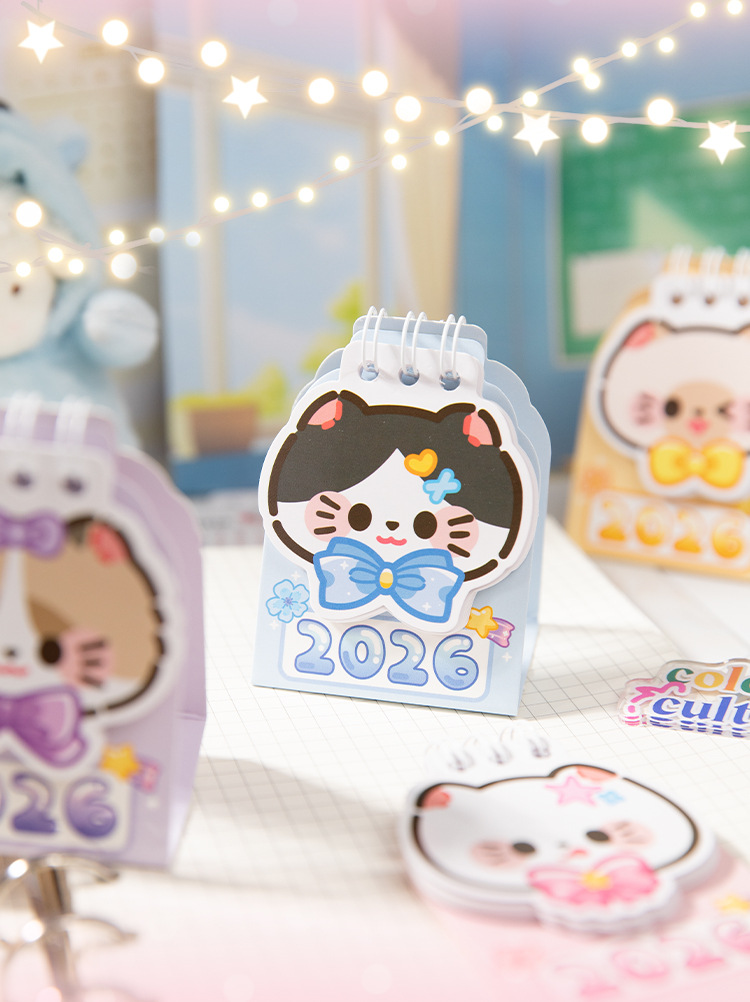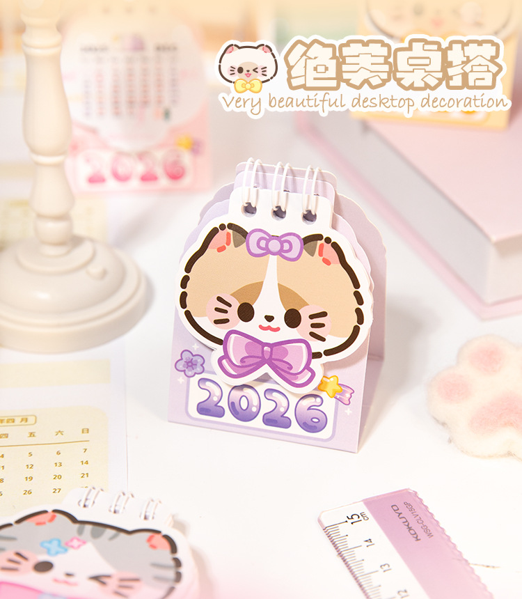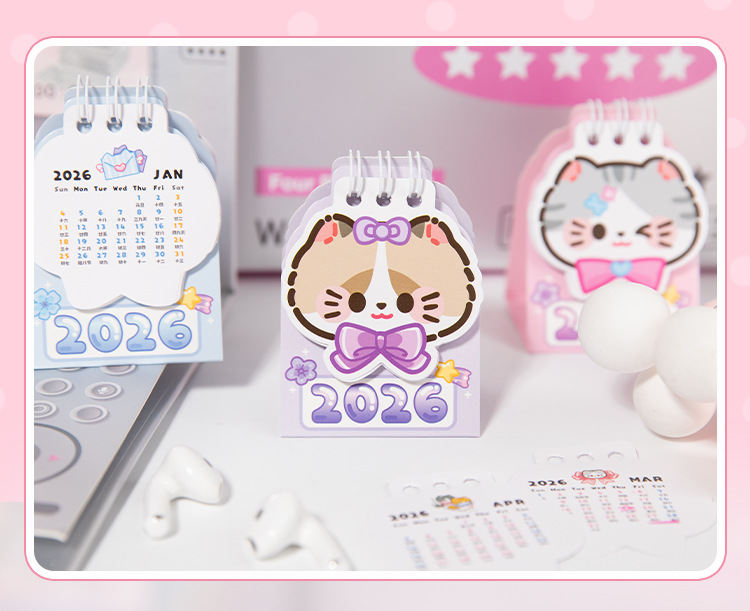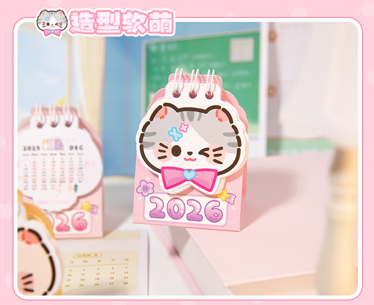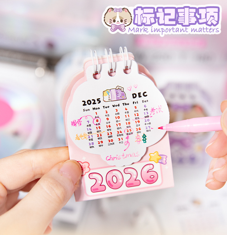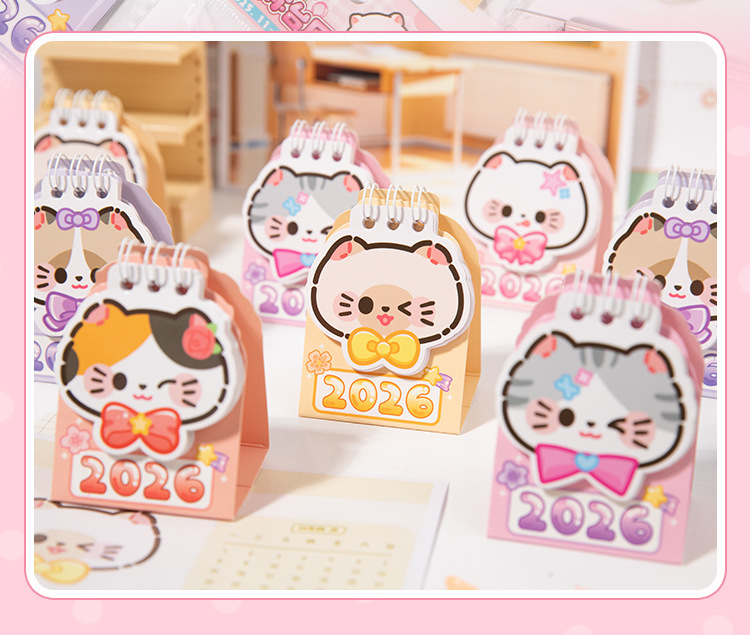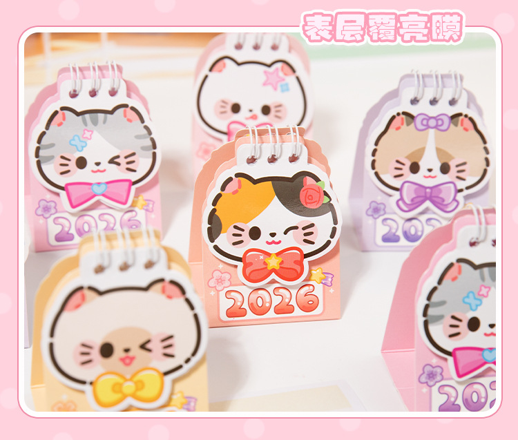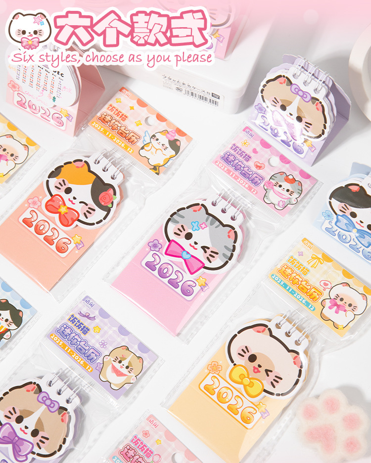 Yu Xian 2026 mini calendario de escritorio arroz gato pequeño pequeño portátil creativo decoración de escritorio marcado notas calendario pequeño