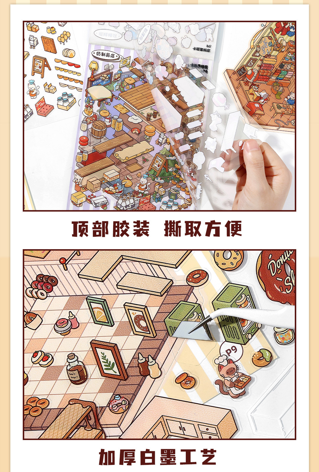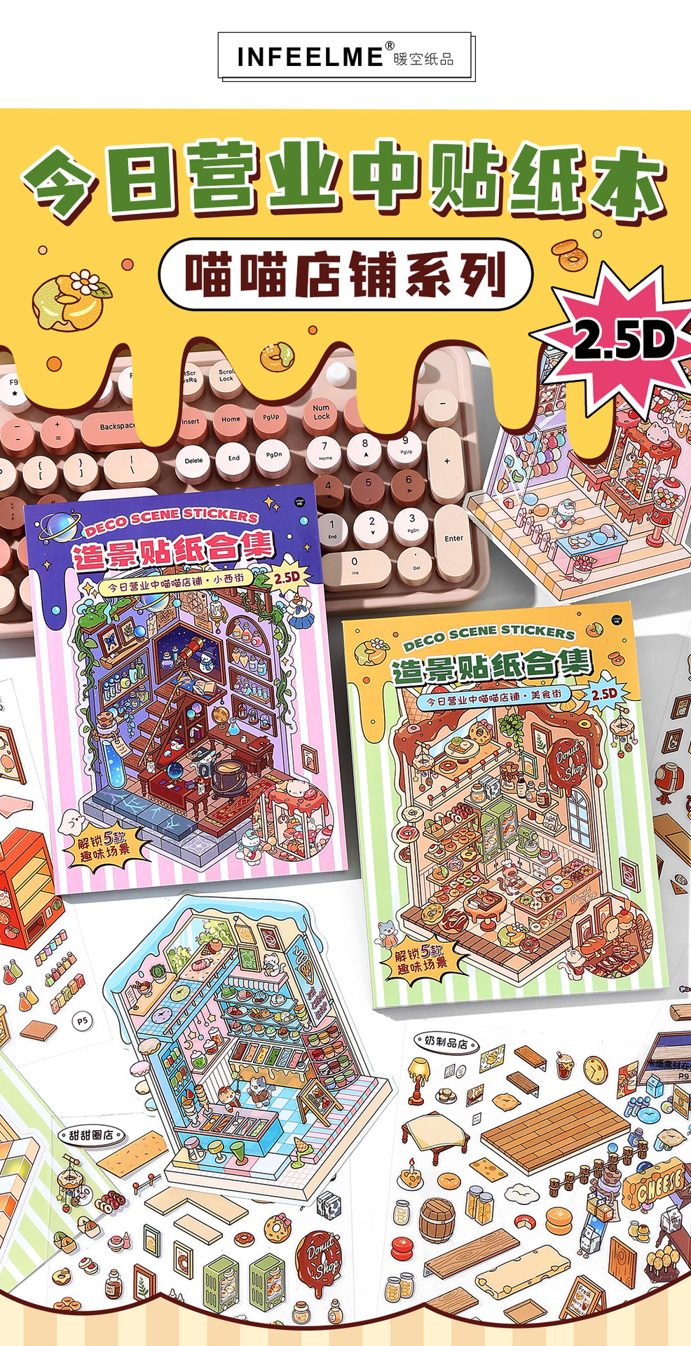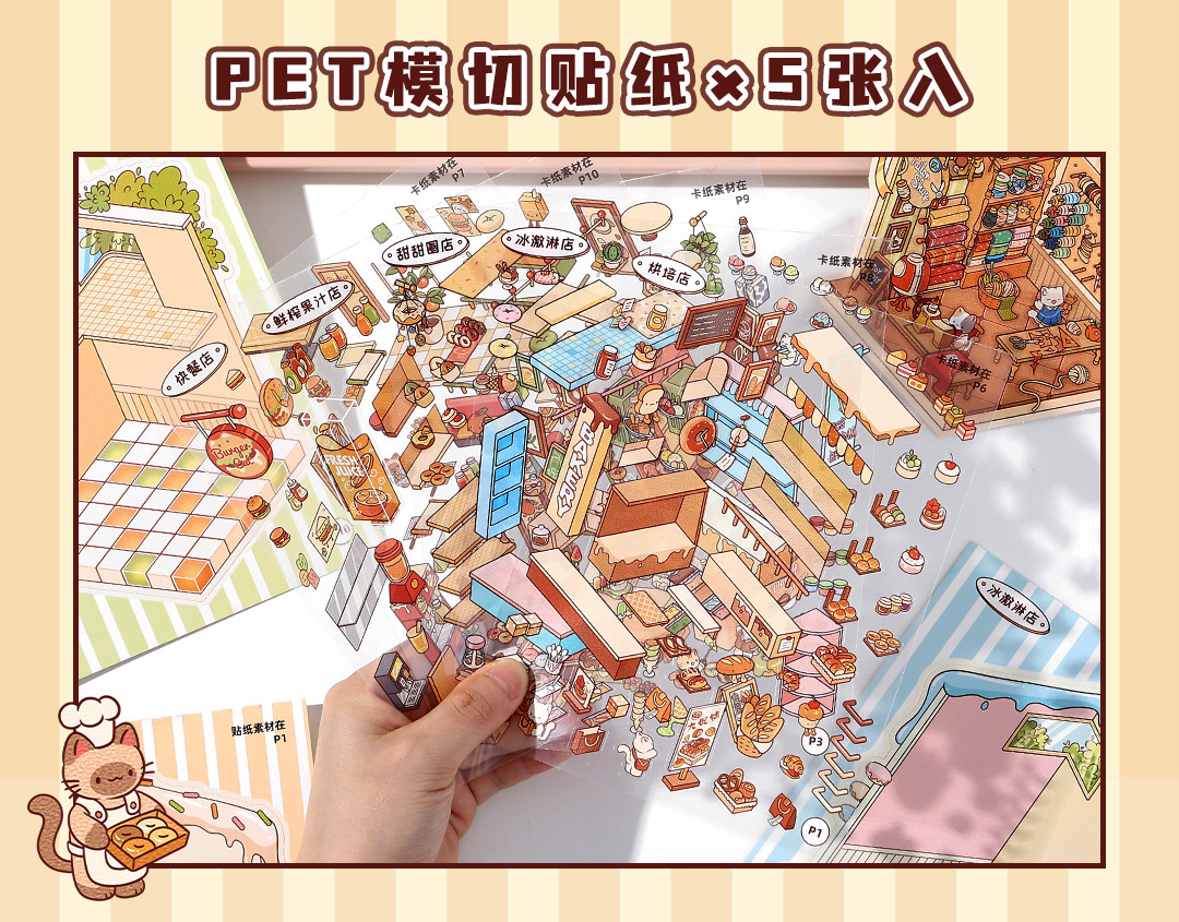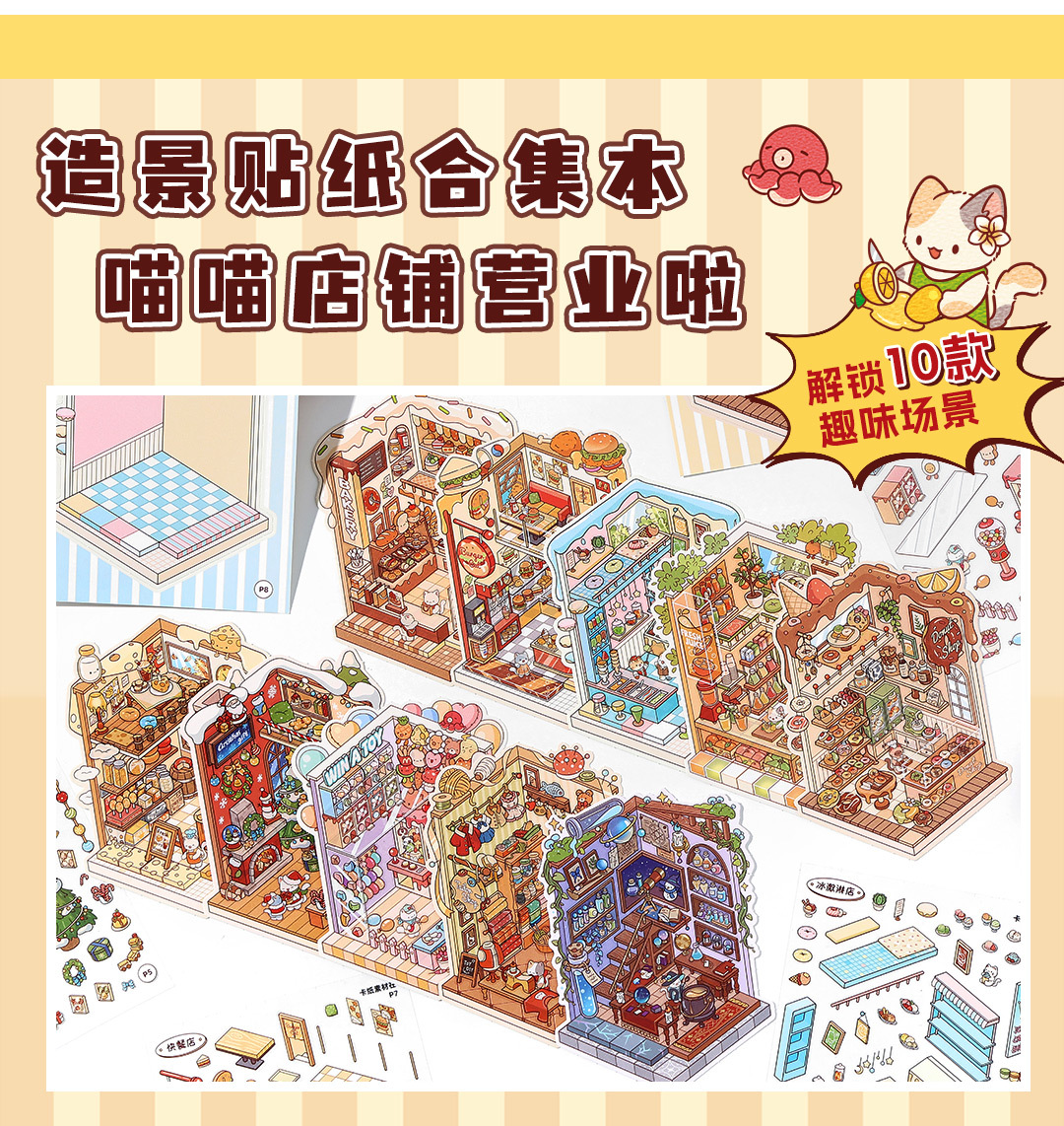 Infeel.Me El libro de pegatinas de paisajismo de tarjeta blanca está abierto hoy en la tienda Meow Meow, decoración creativa e interesante de cuentas a mano