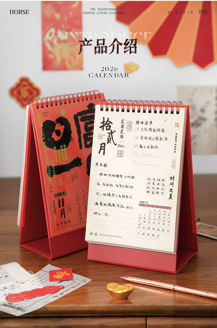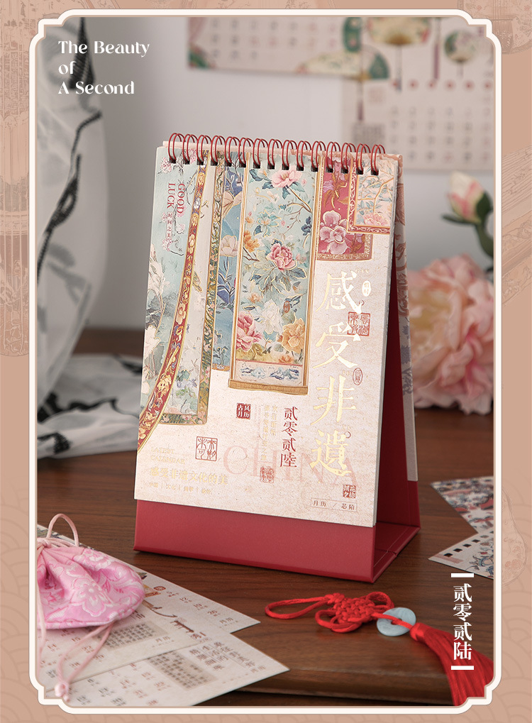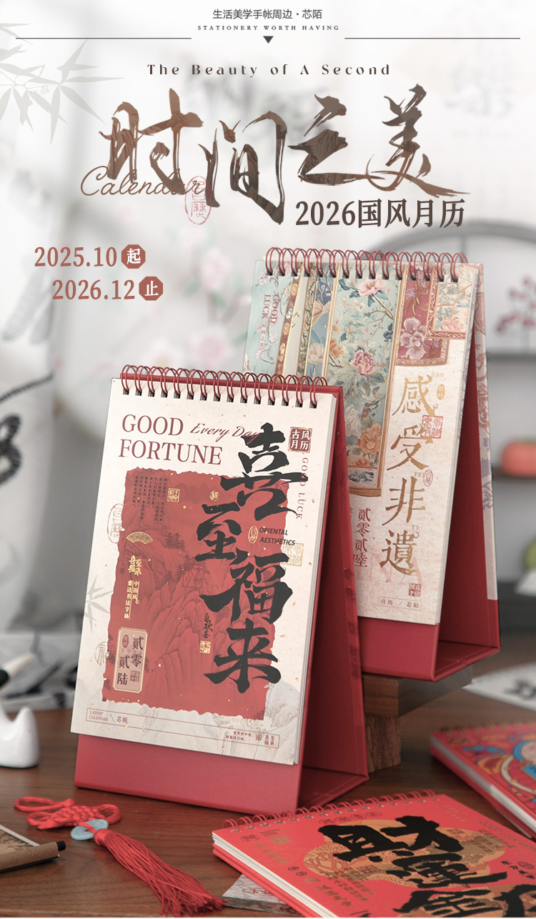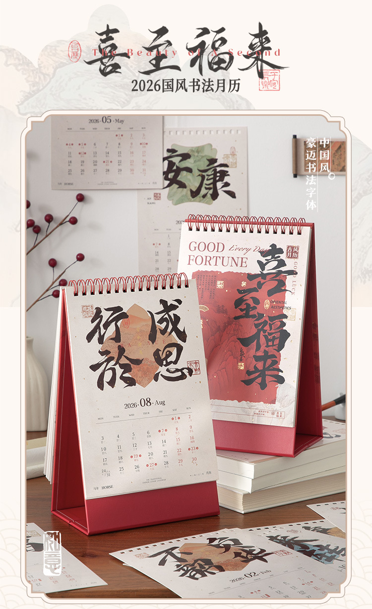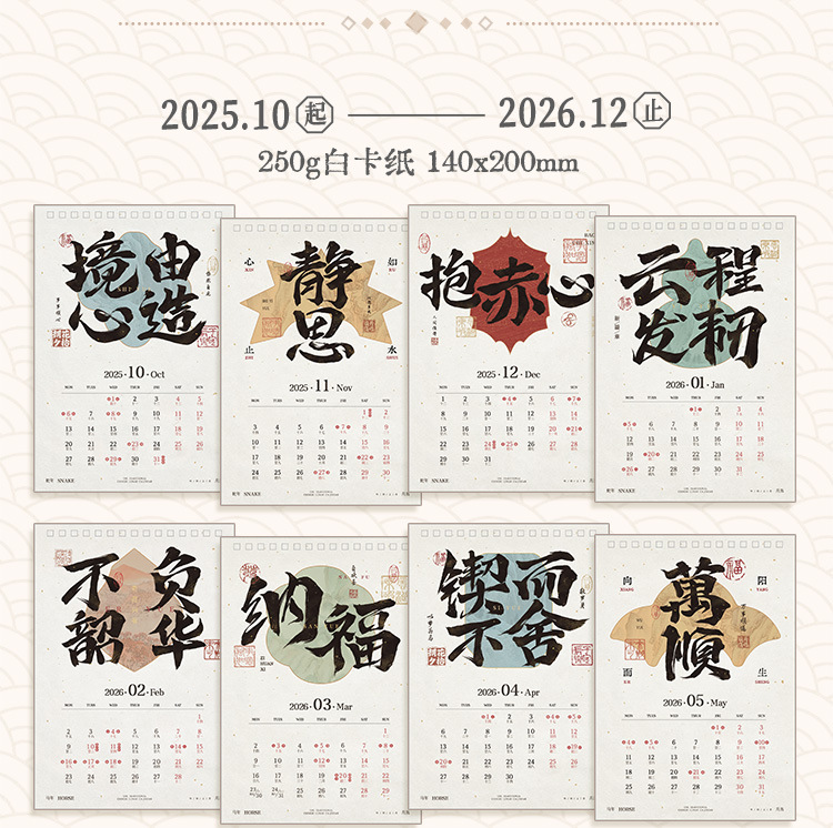 Xinmo 2026 calendario mensual, la belleza del tiempo, adornos de escritorio, calendario de oración, calendario de bendición, calendario de estilo simple